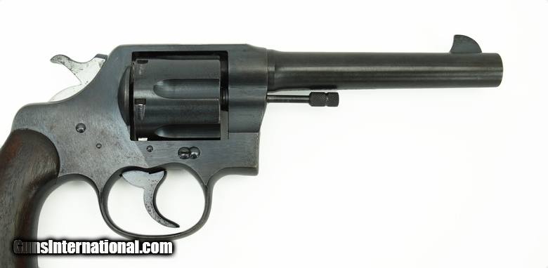 Colt 1917 .45 ACP caliber revolver. WWI U.S. service revolver. Has about 80% blue finish with the balance turned to patina. Bore is excellent, action locks up tight. Overall very good condition.