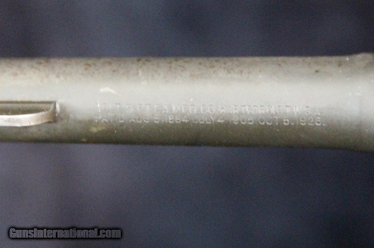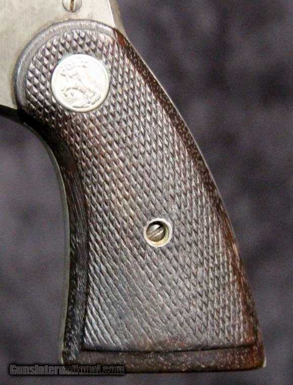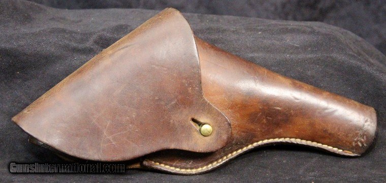 Description: .38sp, #1525, 4 inch barrel, parkerized finish, 2 piece checkered walnut grips, "DPC E 08" scratched on bottom of butt, with correct holster forbelt, 1942. Condition: excellent bright bore, 95% finish with holster wear at muzzle and cylinder, excellent grips, excellent mechanically, excellent marks, holster is very good with no markings. SOLD Curio/Relic: Yes |