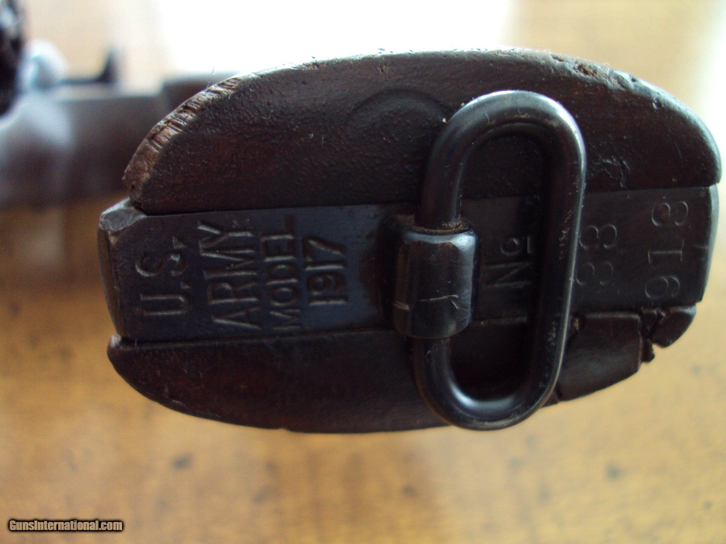 Description: Colt US Army Model 1917 with United States Property marked 5.5 inch barrel. Uses 45acp ammo with moon clips. 3 moon clips are included. Crane and receiver serial numbers match. Right grip panel has a crack and the left grip panel has a couple of chips. Lock up and timing is very good. See pics for condition. USPS Money order or Certified Bank Check accepted for payment. This revolver must ship to an FFL. C&R is OK. Shipping cost is $25.00. SOLD Curio/Relic: Yes Handgun Caliber: .45 ACP (.45 Auto) Manufacturer: Colt Model: 1917 Serial Number: 186212 Barrel Length: 5.5 Condition: Very Good Metal Condition: Good Bore Condition: Bright Action: DA/SA |