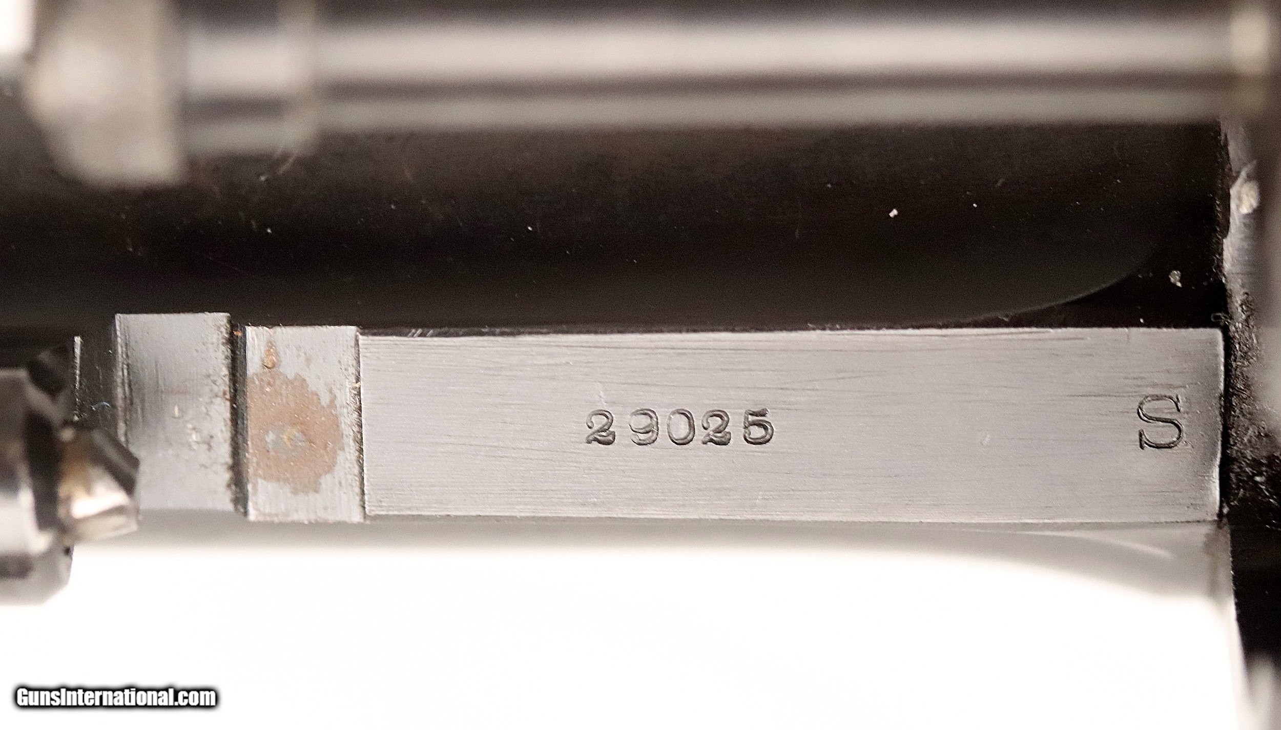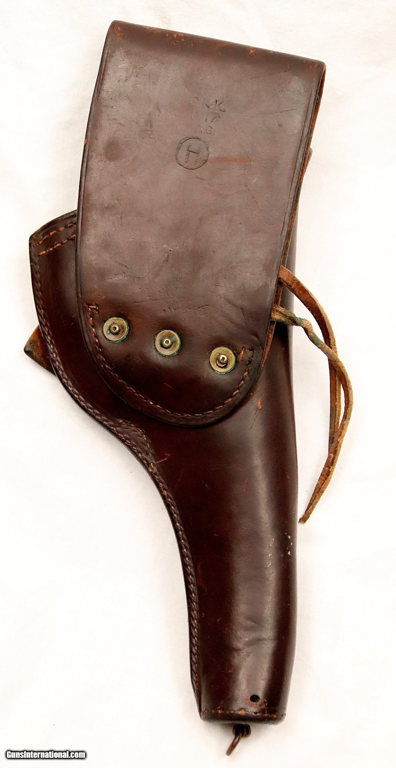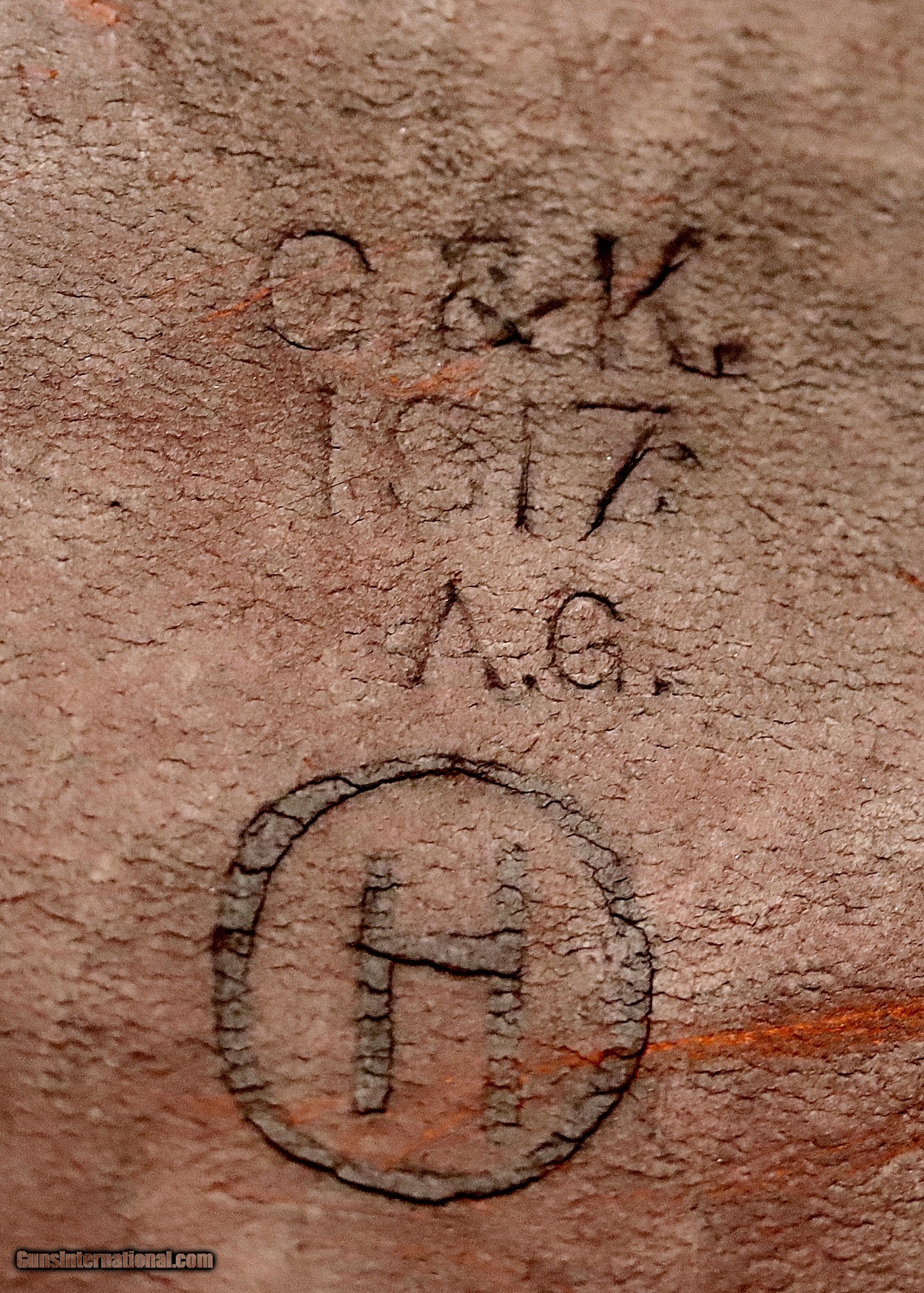 Description: This is the standard military sidearm of WWI that remained in service into WWII. This revolver is accompanied by an original holster. It has all original finish in excellent condition with only a few scattered handling marks overall. The end of the barrel shows more scratches and dings than are found elsewhere, perhaps from placing it in a rack. The grips are excellent, in fact so good I questioned their originality. I removed them and found oxidation on the inside wood consistent with their age, I believe they are original. The case-hardened trigger and hammer retain beautiful color. The flaming bomb acceptance mark shown on the top left of the frame shows it was made before April 1918. The bore and chambers are excellent and bright. The action is smooth and locks up tight, it appears to have been used very little. I guess stolen early in its’ service life. The holster is correct for this revolver and is in remarkable condition, it is not a recently made reproduction. The brass loop on the bottom of the holster is intact, a rarity in my observations. The Holster is clearly marked G&K, (Groton & Knight) 1917. This is an excellent example for a S&W or Military collection. .45 ACP with a 5 ½” barrel, Serial Number: 29025, FFL or C&R Required Beaver Creek Arms TERMS & CONDITIONS Objective: As a collector of 35 years and Licensed Firearms Dealer since 1989 I have a clear definition of a satisfactory transaction. I will be paid as we agreed to, and you will be satisfied with your purchase. My goal is to establish a client list of satisfied repeat customers who will recommend me to other collectors. It’s just that simple. Exiled Saudi princes with secret funds needing change from an over paid purchase need not apply. Notice: ALL Federal, State, & Local firearms laws will be followed. I will take NO shortcuts in the process of a legal sale or transfer, so please don’t ask. SHIPPING: Normally shipments are made via U.S.P.S. Priority Mail, Insured, with a return receipt. Typical Packing, Shipping and Insurance cost for this handgun is $30.00. Please make Checks payable to: Steve Clark Address: 380 Beaver Creek Road, Dillsburg, PA 17019 FIREARMS: Modern firearms, post 1898, can only be shipped to a Type 01 Federal Firearms License address. Curio-Relic firearms, as defined by the BATF list, can usually be shipped to a Type 03 Collectors License address. Some states have additional restrictions such as CA, CT, DC, IL, MD, NJ and NY. A signed valid FFL license copy either mailed or emailed will be required for shipment to only the license address. Antique firearms, pre 1898 do not require a Federal License. For purchase, a copy of a Government Issued Identification (Drivers License, Etc), showing date of birth and current address will be required. GUARANTEE: Your complete satisfaction is assured, see objective above. If you are not satisfied, please contact me within 3 days of receipt. Please don’t fire the weapon, safety, function and accuracy are NOT Guaranteed. Any weapon offered by Beaver Creek Arms is never test fired nor is there any representation the gun is functional and safe to fire. These guns are sold for collectors and only represented as used firearms that must be checked by a competent person, observe all the necessary safety precautions prior to attempting to load and fire one of these weapons RETURNS: Returns must be made within 3 days of receipt. They must be received in exactly the same condition with no parts exchanged. If it has been altered, damaged, or fired, a refund will not be made. Packing, shipping and insurance cost will not be refunded. All layaway purchases are returnable for merchandise credit only. PAYMENT: Bank check, Personal check, and Money Orders are preferred. Visa and MasterCard are accepted with a 3% processing fee. For Visa and MasterCard orders please provide the account number, code number, expiration date, name on card, phone number and card billing address. This information can be phoned in, or E-Mailed. All orders must be paid in advance, C.O.D. orders are not accepted. Checks, both Bank and Personal must clear before the order will be shipped, usually a 2 week delay. LAYAWAYS: A 20% deposit is required. Balance is due in 30 days. Deposits are non-refundable and are forfeited after 30 days. Layaway sales are returnable for merchandise credit only. SALES TAX: Pennsylvania state sales tax is 6% for in state purchases. The payment of other states sales tax, if applicable, for shipped items is the buyers responsibility. DISCREET: Client information will remain Confidential. Your privacy is protected. SOLD Curio/Relic: Yes |