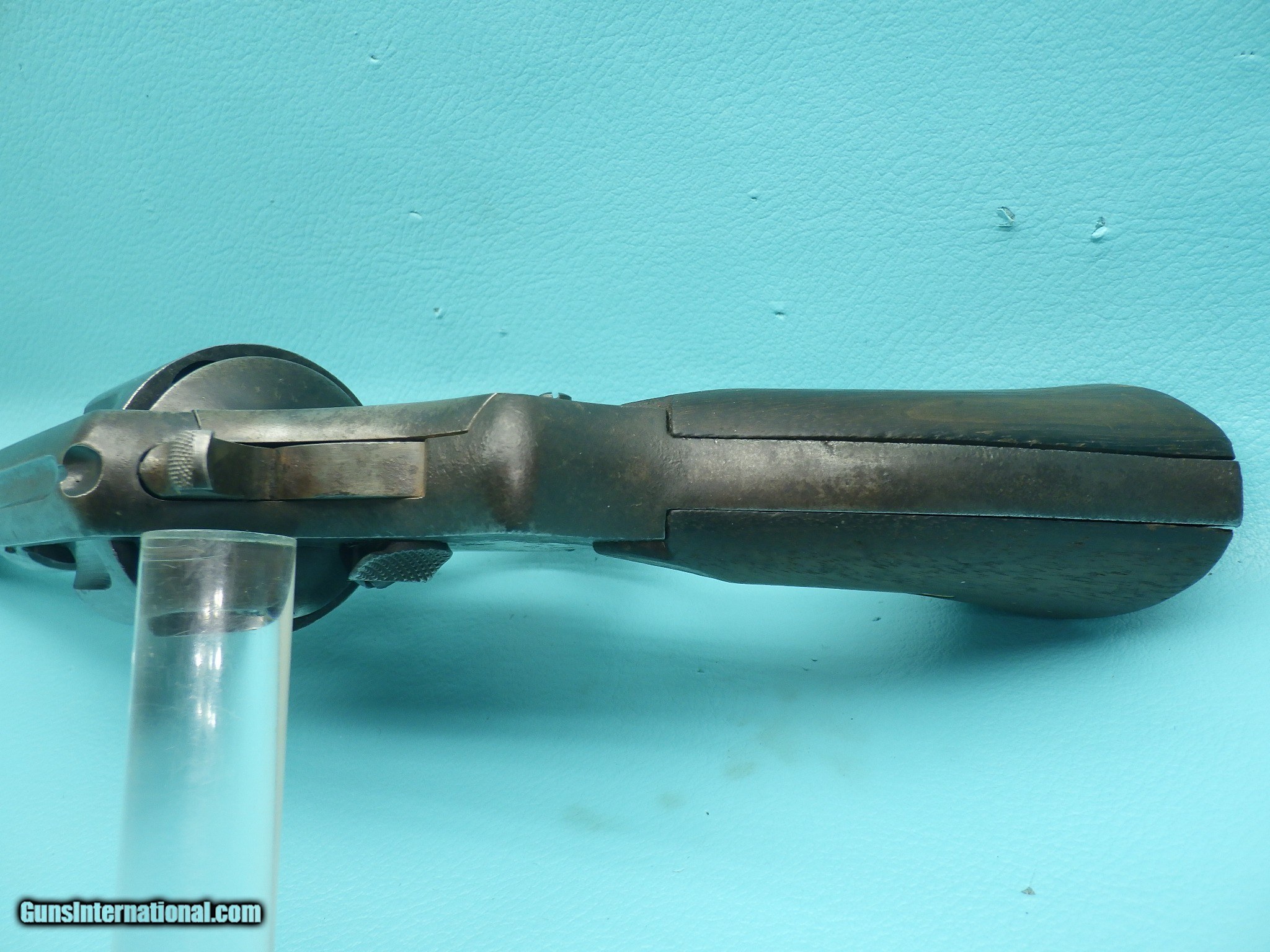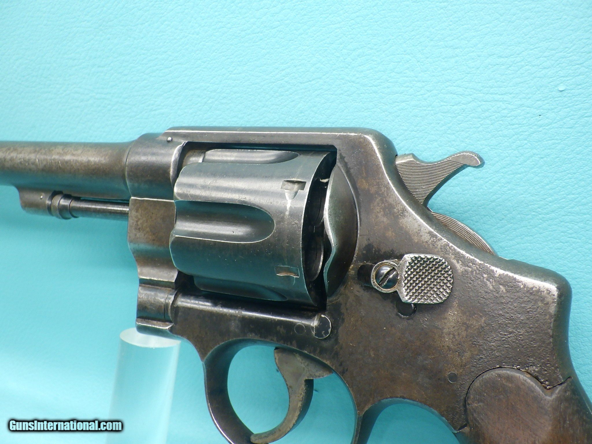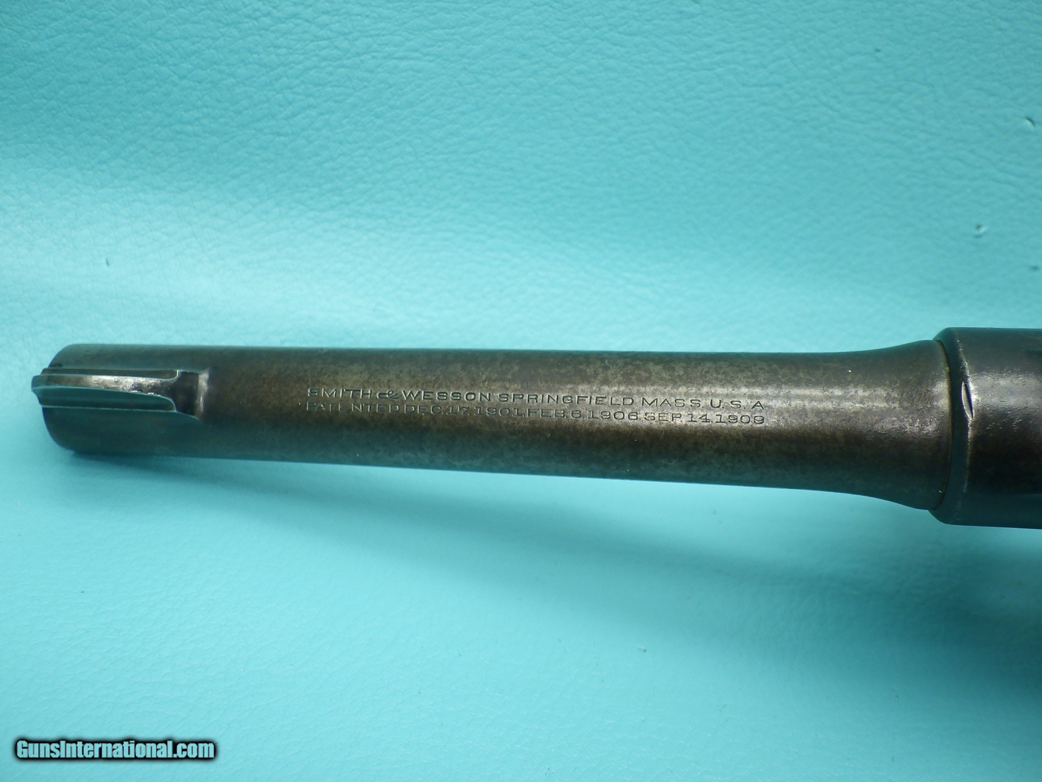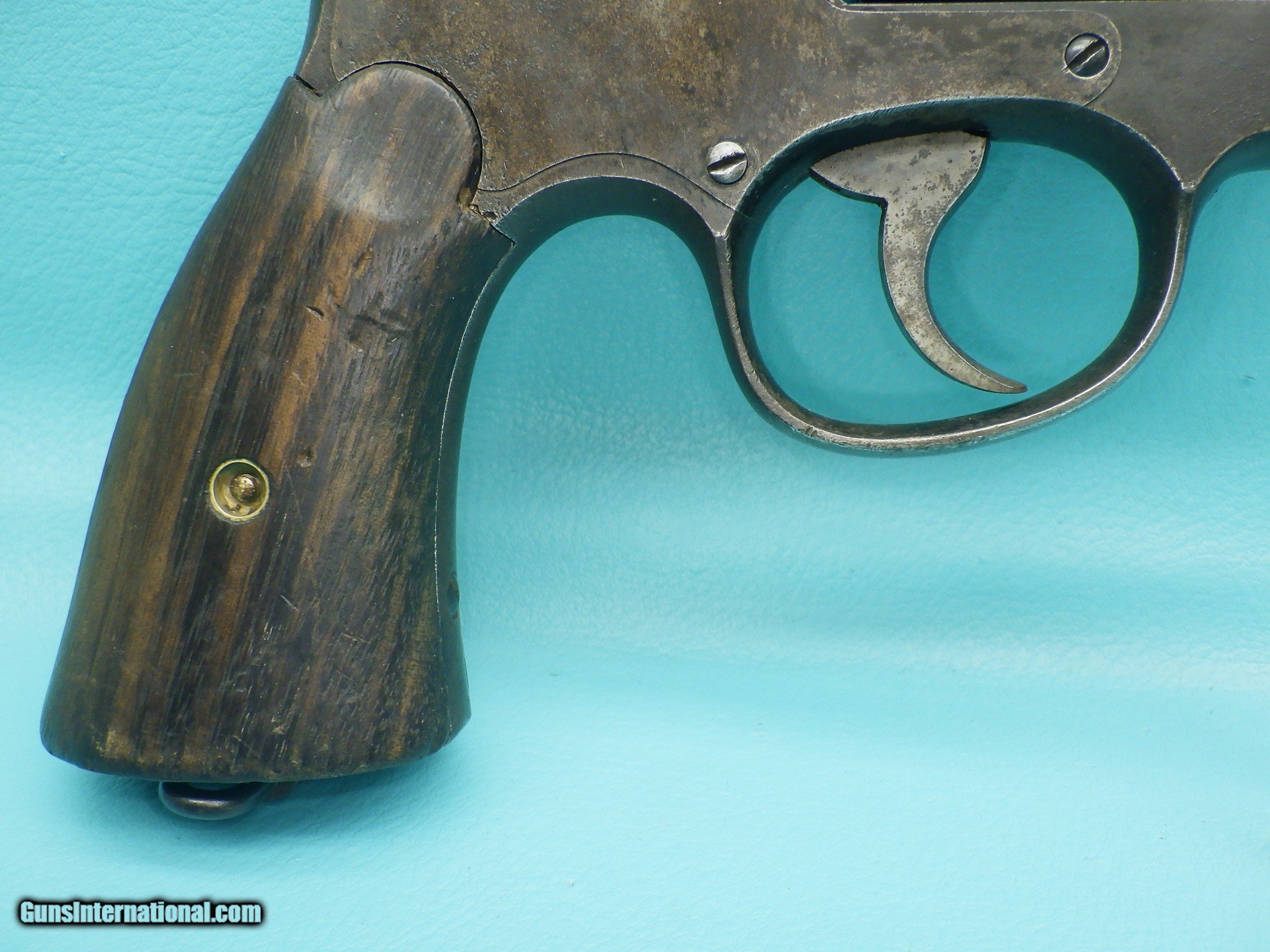 Description: **SOLD** Make: Smith and Wesson Model: US Army 1917 Finish: Blued Caliber: .45acp & 45 Autorim Action: Double Barrel length: 5 1/2 inch Bore: Shiny with very minor fouling and sharp rifling Stocks: Plain Walnut Sights: Round blade front with rear notch MFG Date: 1918 Features: Concentric grooved hammer (which only came on early models) ,US Property marking, heat treated & fluted 6 shot cylinder, lanyard ring, S stamp on the barrel flat & on the frame, square butt N frame, and a faint GHS ( Major Gilbert H. Stewart) marking. Extras: None (Does not include half moon clip) Condition: The finish shows signs of age related loss as well as oxidation which is heavier on the left side of the frame. Shipping Cost: $35.00 The revolver functions as it should with proper timing and lockup. The cylinder chambers are smooth with one having a small amount of fouling. Please refer to the photos for the overall condition. FFL is required. No handgun sales in MA. **SOLD** SOLD Handgun Caliber: .45 ACP (.45 Auto), .45 Auto Rim Manufacturer: Smith & Wesson Model: US 1917 Serial Number: 14490 |