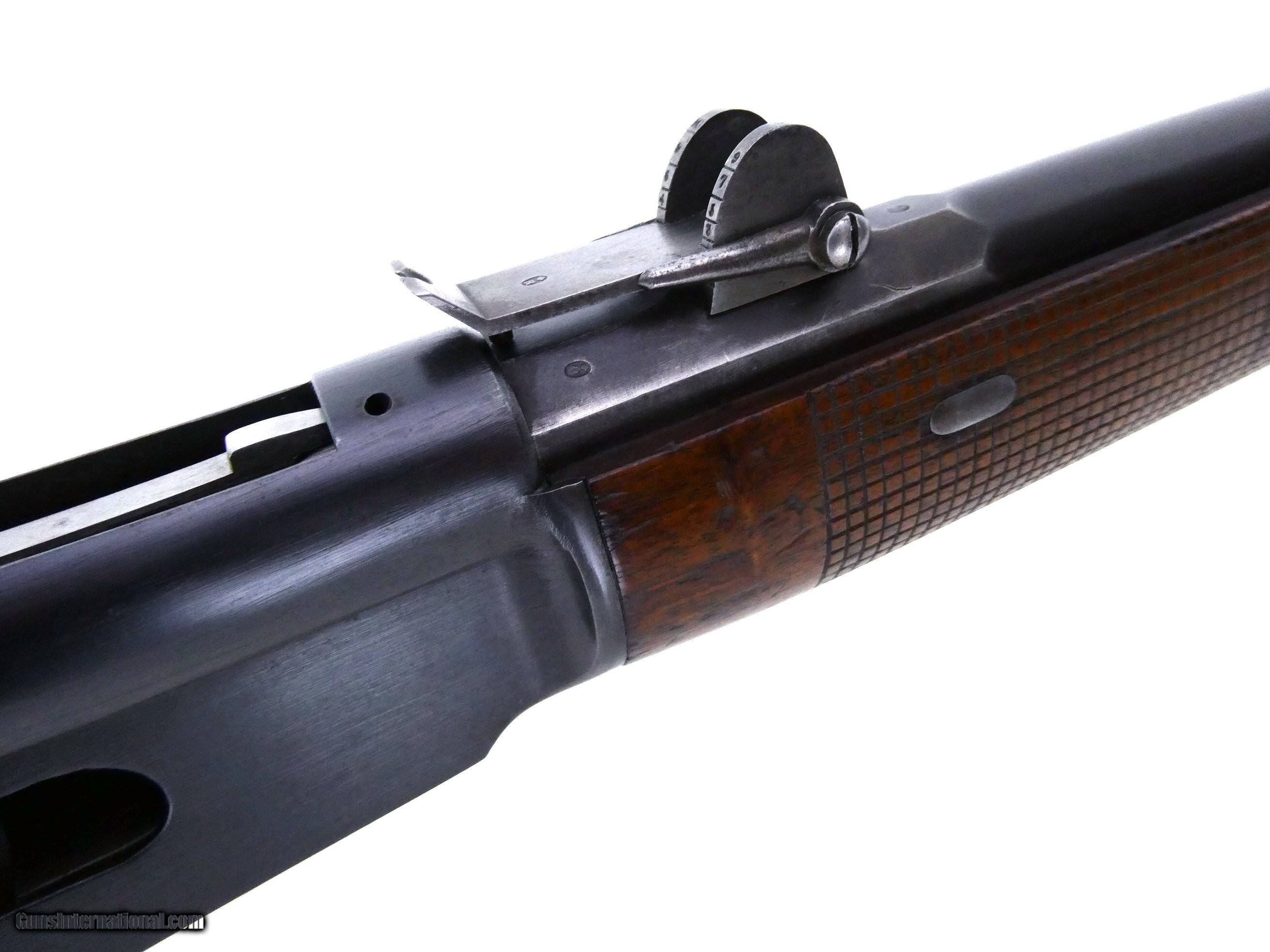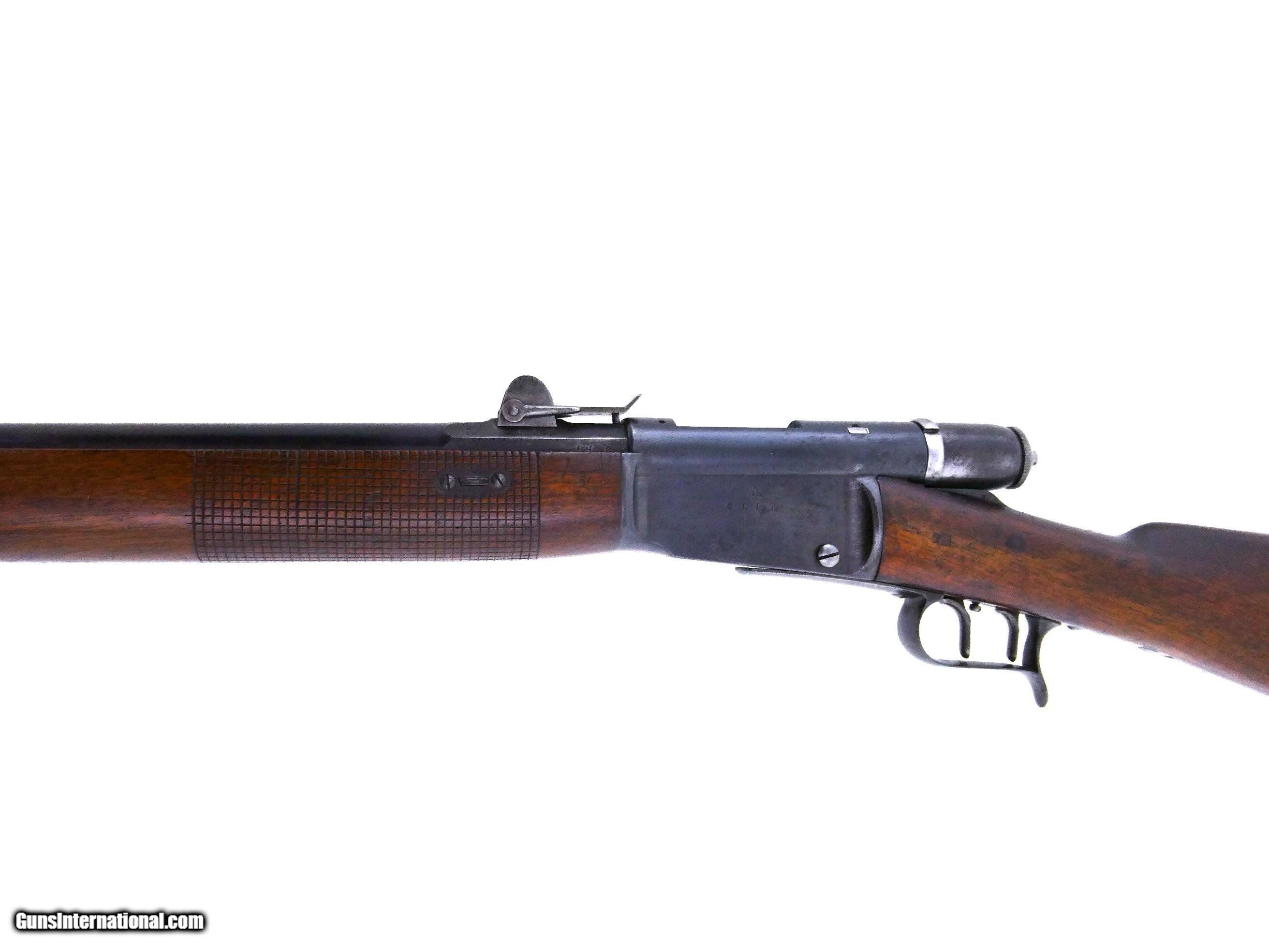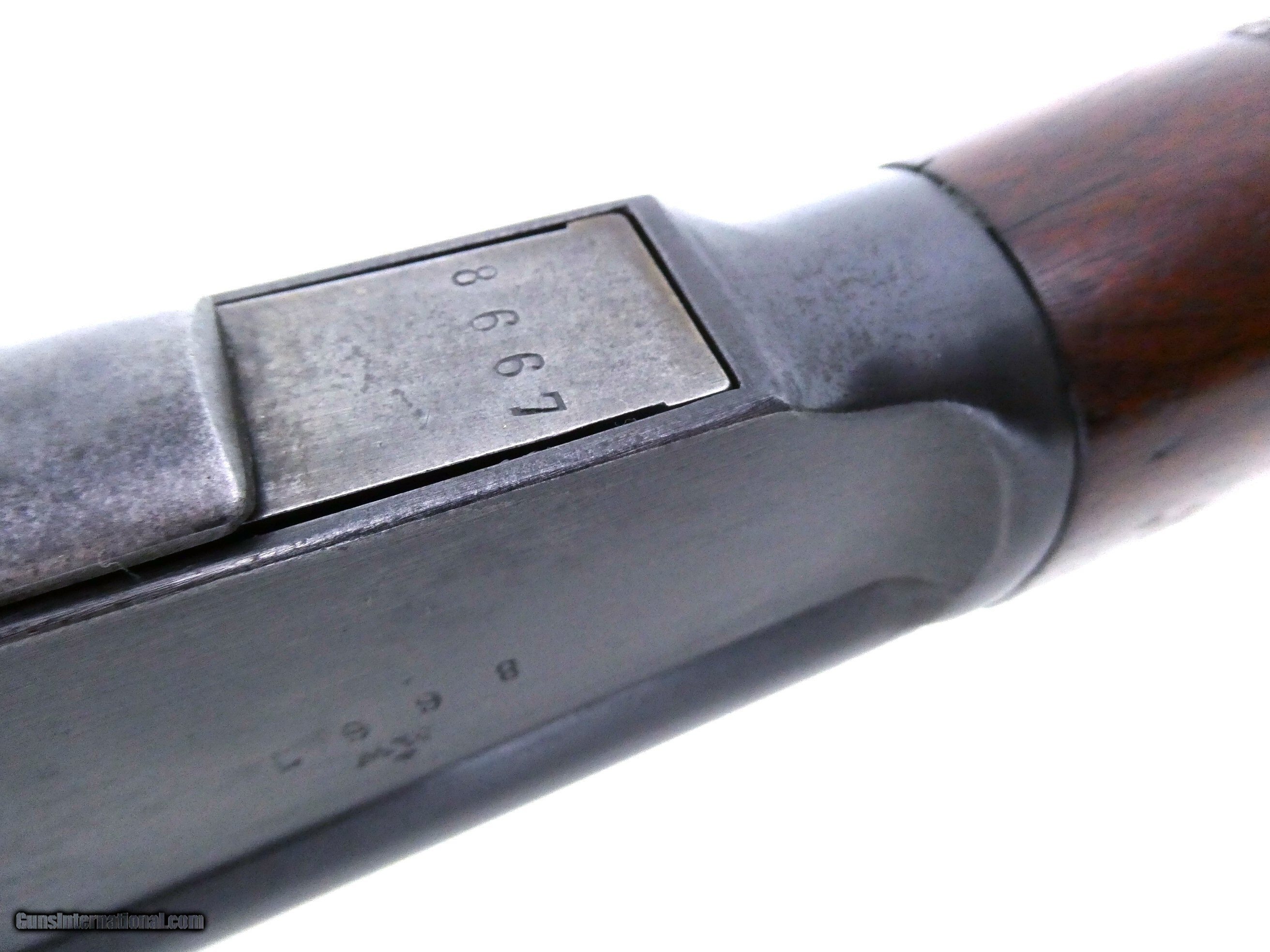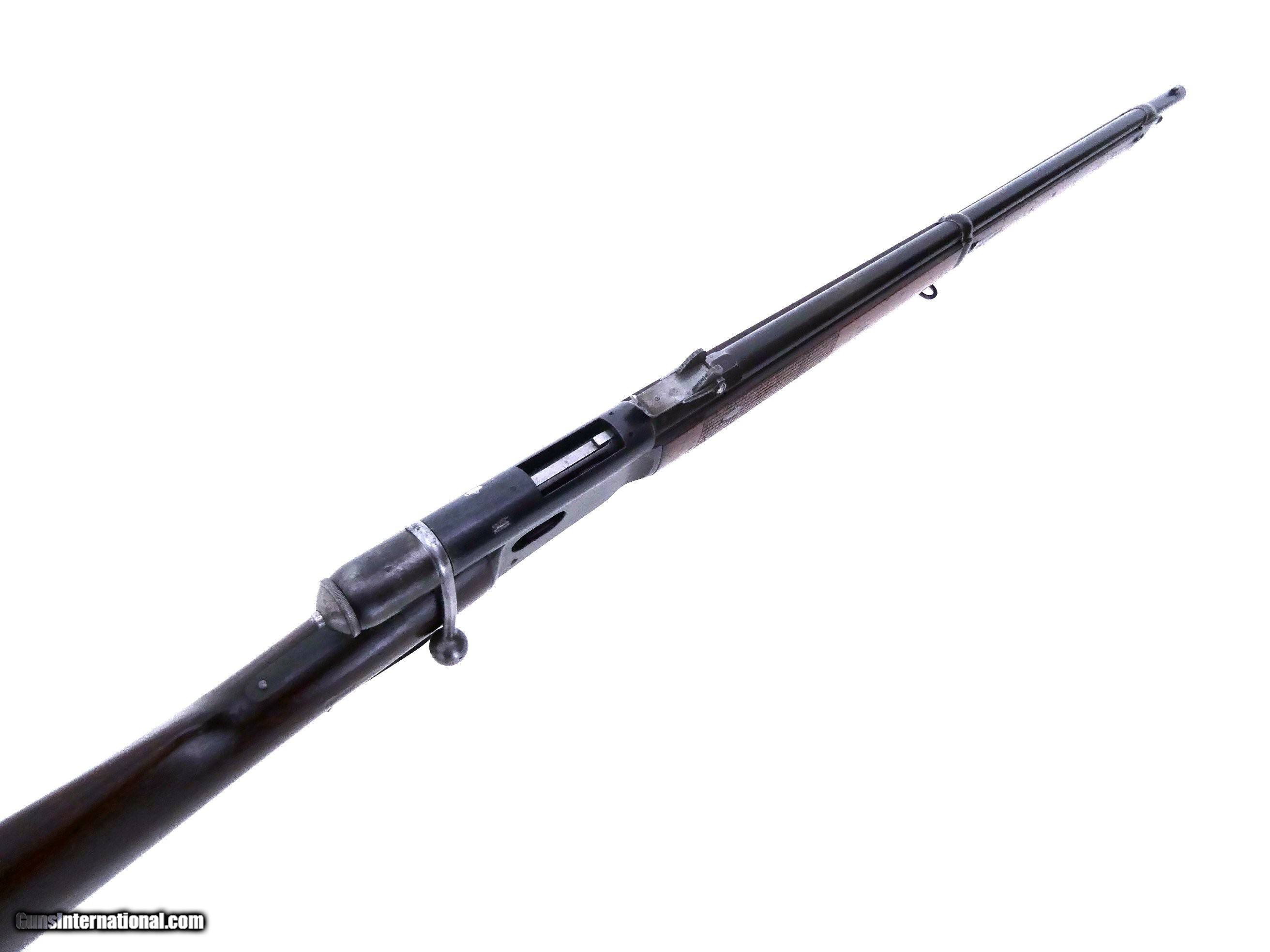 Description: Scarce Swiss Army Vetterli repeating rifle with 10 round tube magazine. Slightly shorter sharp shooter (Stutzer) version of the 1871 infantry rifle. Early production - pre 1873 as the receiver & barrel are stamped MW for Eidgenoessische Montierwekstatt Bern (Confederate assembly plant of Bern). Clear inspection marks on metal and wood, all matching serial numbers, double set trigger, Swiss butt, correct cleaning rod. OAL=50.4", LOP=12.4", barrel=30.1". Good action & trigger, excellent bore, originally chambered for the M63 10.4x38R rim fire cartridge, now converted to center fire by the Swiss master gunsmith Roger Rerat of Laufen. CF brass can be made from 8mm Lebel (8x50R). Good stock with some minor handling marks, good metal condition with some loss of blue finish and few spots of patina / light frosting. Add this early sniper rifle to your collection. Antique: Yes Rifle Caliber: 10.4x38mmR Swiss Price: $1,354.00 Shipping: $80.00 Contact Seller |