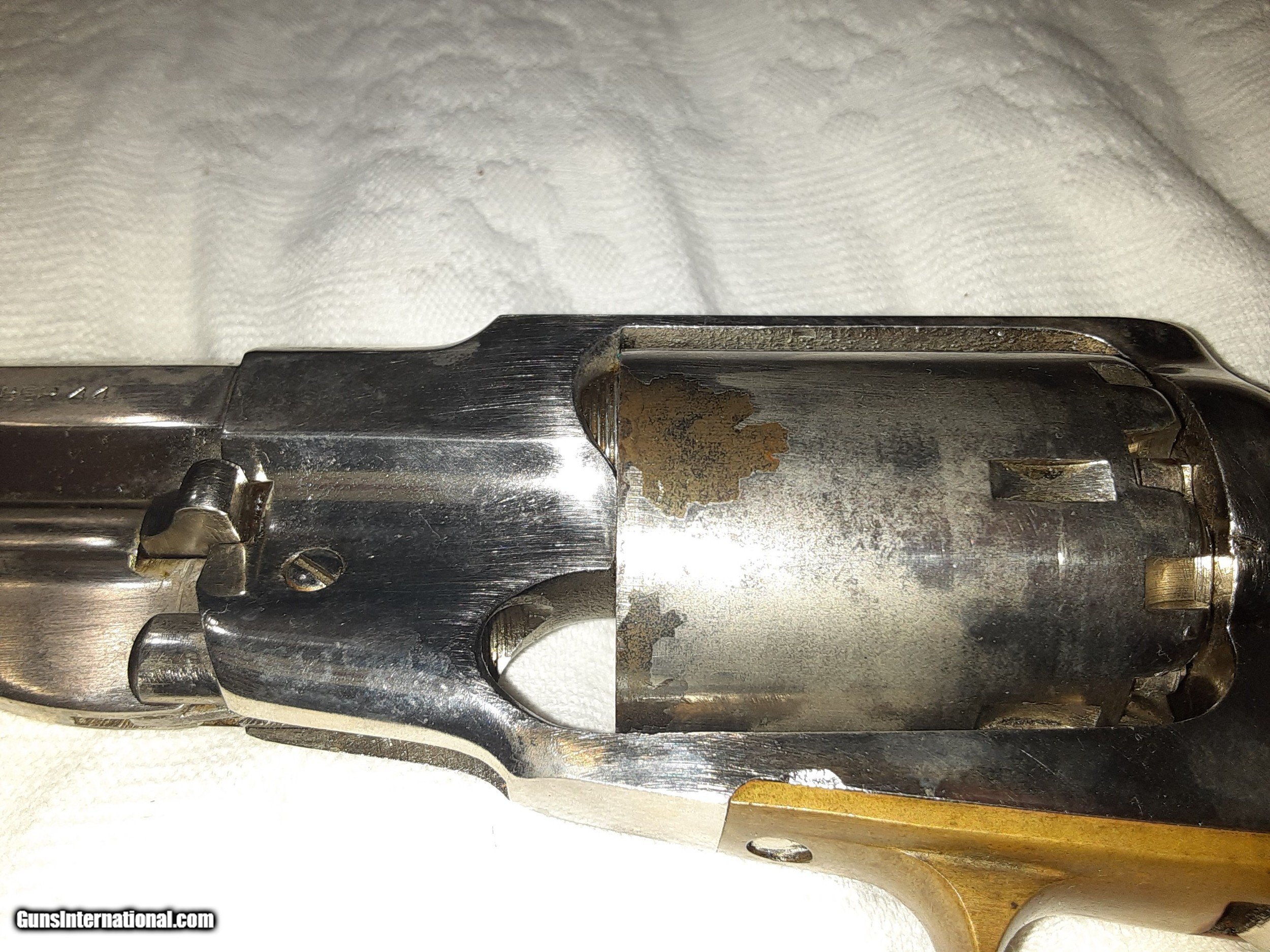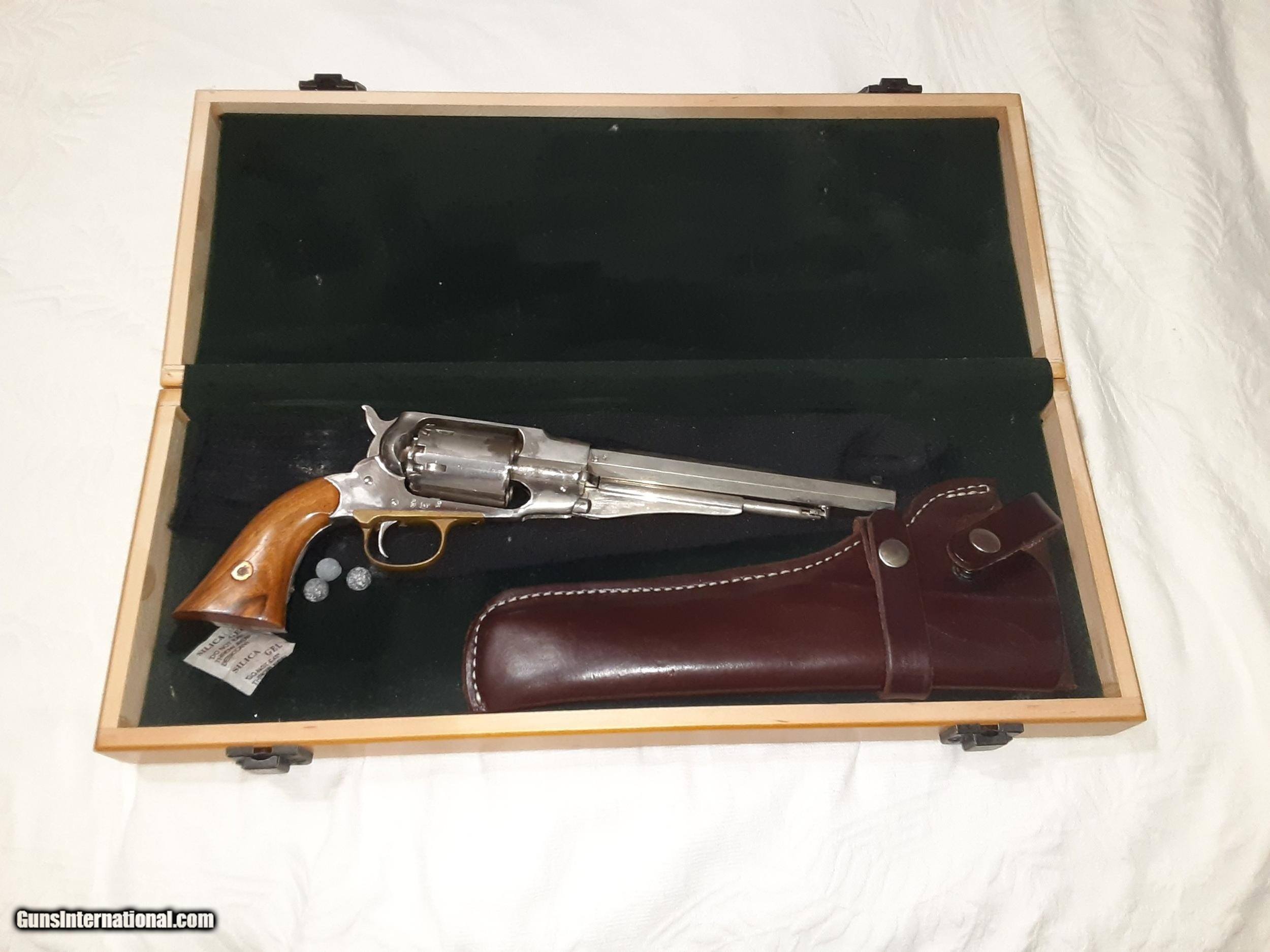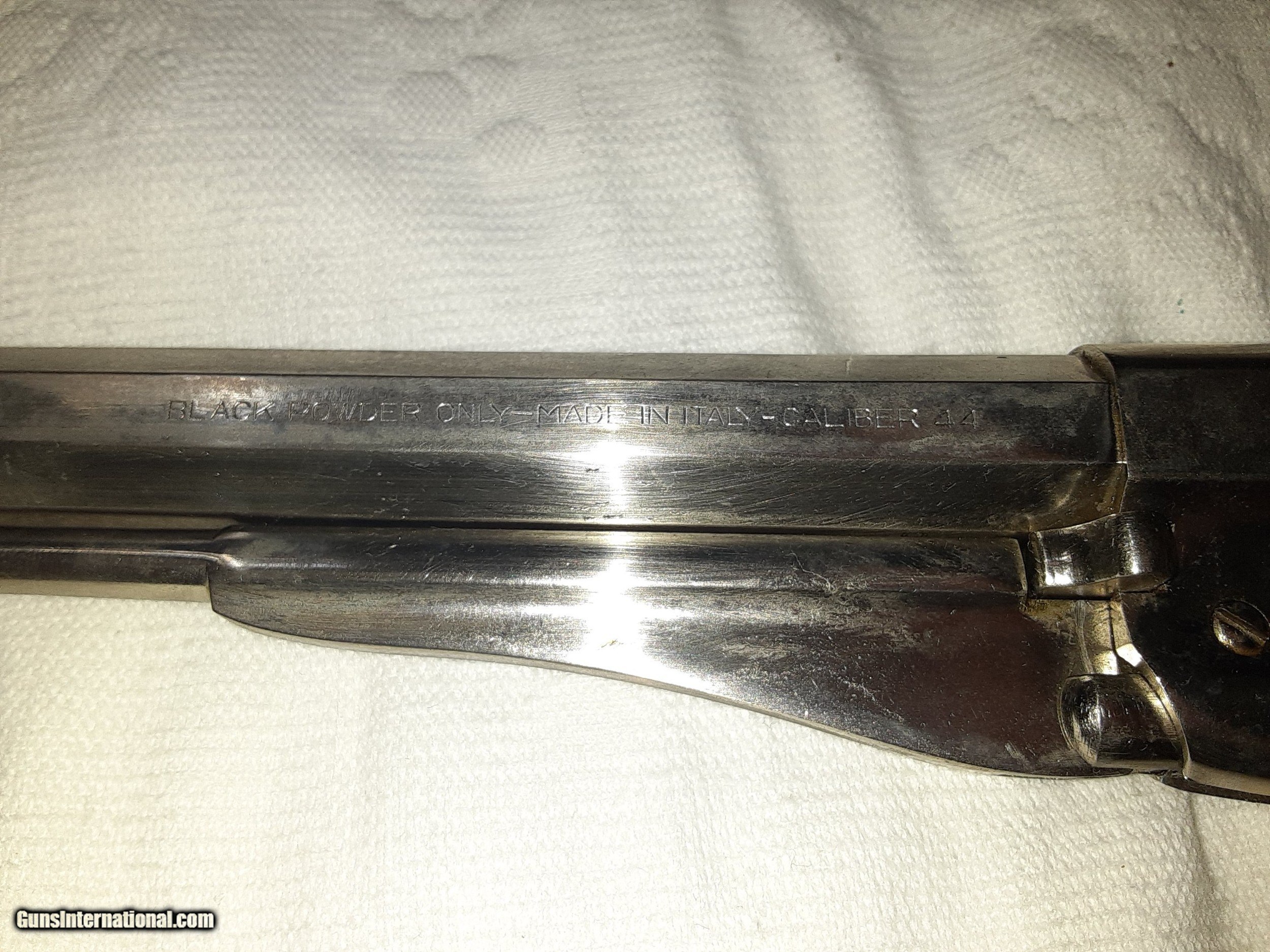 Description: BEAUTIFUL DISPLAY OR FOR USE, CHROMED NAVY ARMS CO. RIDGEFIELD, N.J.,,, MADE IN ITALY,, 44 CAL. BLACK POWDER REVOLVER FULL SIZE, 13 3/4" OVER ALL LENGTH, 8# BARREL LENGTH.. BRASS TRIGGER GUARD, *** NOTE... 1/2" BLEMISH ON CYLINDER... SEE PHOTOS *** VERY NICE BLOND WOOD DISPLAY BOX WITH CABELAS "1819" LEATHER HOLSTER FULLY FUNCTIONAL $550. INCLUDING SHIPPING UPS (EAST OF MISSISSIPPI RIVER) TO YOUR DOOR... NO FFL REGUIRED SOLD Handgun Caliber: .44 Manufacturer: NAVY ARMS CO.. ITALY Barrel Length: 8 Condition: 99.9% Metal Condition: 90 % + has blem Wood Condition: 100% Bore Condition: 100% Barrels: Steel Manufacture Date: 1980 1990's ?? Item Location: FLORIDA |