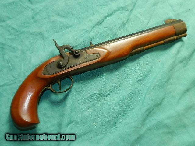 Description: Excellant percussion single shot pistol, Fired sparingly, with a clean bore, and action works good. Engraved lock plate, and hammer.Browned barrel is octagonal 10" with a front and rear sight, some freckling from storage. The brass furniture has a heavy age patina and is a mustard color. Overall length is 15 1/2". Comes with a wood ram-rod with a brass tip. Has been in storage a long time and needs a cleaning. Top of the barrel states: JUKAR, SPAIN.45 CAL. BLACK POWDER ONLY. We don’t have asite .I prefer money orders or a check. Item ships when funds come in. If you can only pay with a card let me know. I hope you like my wide selection of unusual guns, knives and gun parts. Shipping price determined by zip code. I try to keep the prices affordable, which means I make less money than most dealers. You won’t get altitude sickness with my prices! I consistently have the best selection of older guns If you BUY IT NOW you must still contact us for details buy it now doesn't end the sale, it just sends an email telling us you want to buy this gun. A phone call won’t secure a sale! Not home many times, the first buyer by email buys the gun !Thissite doesnot close down a sale when you do a BUY IT NOW like Ebay!I can get six buy it nows in an hour, first buyer to email gets the guns, others are in second place! Best to send another email . Sometimes not home to get calls. Some guns are required shipment to a gun dealer near you for a transfer to you when it arrives. With the widest selection of older guns at great prices, We don’t have a store, and sell on the internet only. SOLD |