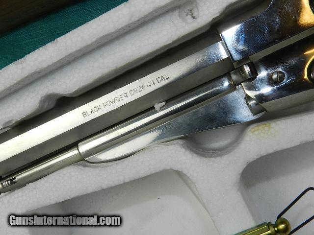 Description: Very good working Remington STAINLESS STEEL model 1858 .44 cal. revolver with all original finish showing no wear. This gun appears to be unfired as the nipples look new . Excellent rifled bore is very clean, and the walnut grips have no wear. Functions very well, and locks up tight. Comes with a box and insert and six extra stainless nipples and a brass capper. Looking down into the cylinder it looks like it hasn't been fired. We don’t have asite .I prefer money orders or a check. Item ships when funds come in. If you can only pay with a card let me know. I’m sorry I don’t list my phone number, did that for 30 days, never again.. I can’t talk on the phone all day…who will ship the guns? I’m just one person, and it’s very busy here! I do a brisk volume! I hope you like my wide selection of unusual guns, knives and gun parts. Shipping price determined by zip code. I try to keep the prices affordable, which means I make less money than most dealers. You won’t get altitude sickness with my prices! I consistently have the best selection of older guns If you attempt to buy, you must still contact us for details, buying doesn't end the sale, it just sends an email telling us you want to buy this gun. A phone call won’t secure a sale! Not home many times, the first buyer by email buys the gun !Thissite does not close down a sale when you do a BUY! I can get six buy it nows in an hour, first buyer to email gets the guns, others are in second place! Best to send another email . Sometimes not home to get calls. Some guns are required shipment to a gun dealer near you for a transfer to you when it arrives. With the widest selection of older guns at great prices, We don’t have a store, and sell on the internet only. SOLD |