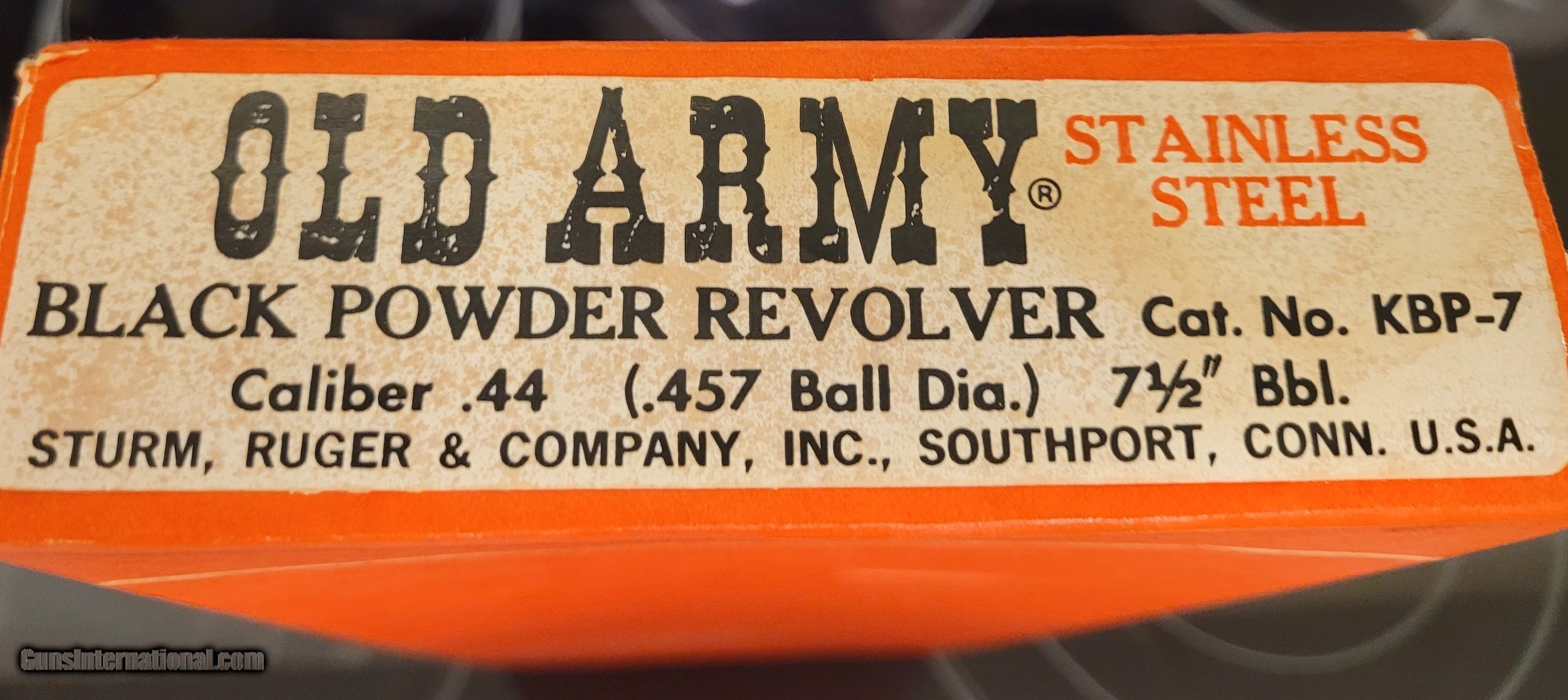 RUGER OLD ARMY, 44 CAL. MUZZLE LOADER, STAINLESS, 7 1/2” BARREL NEW UNFIRED IN BOX 100% COND. COMES WITH OWNERS MANUAL ETC.