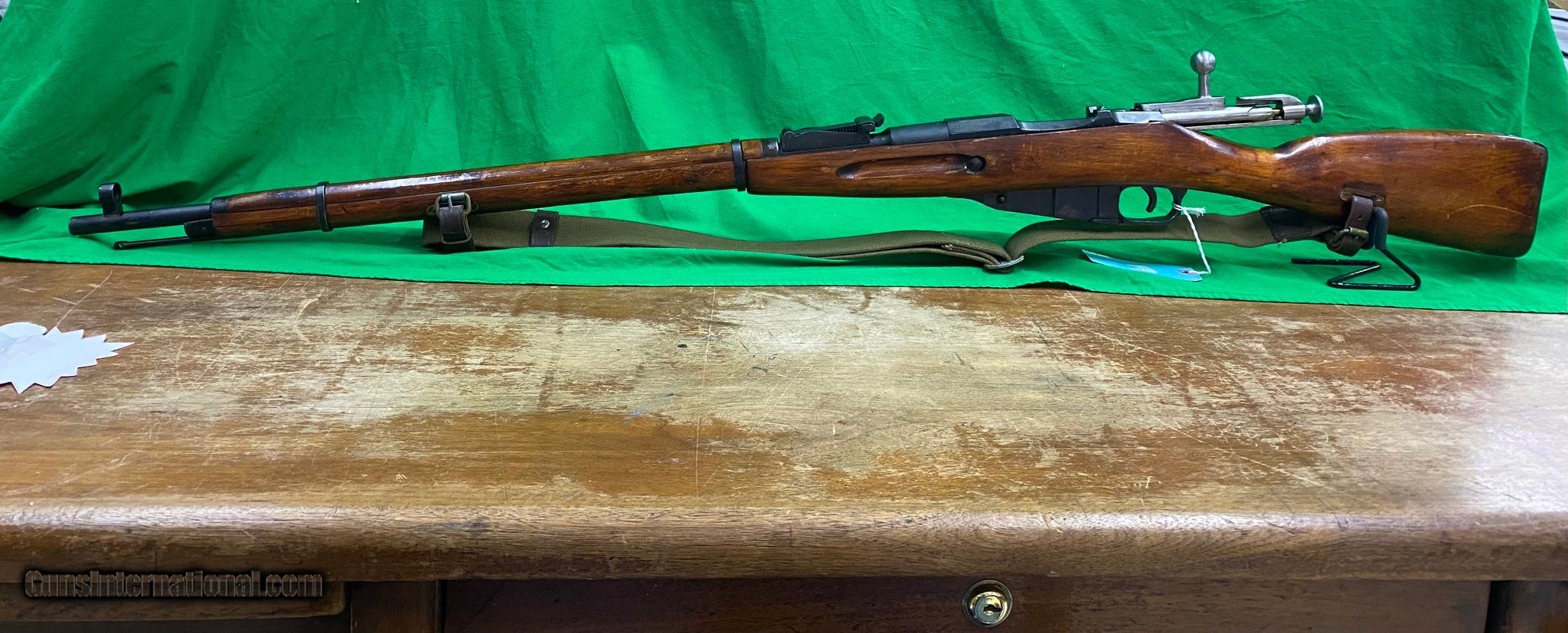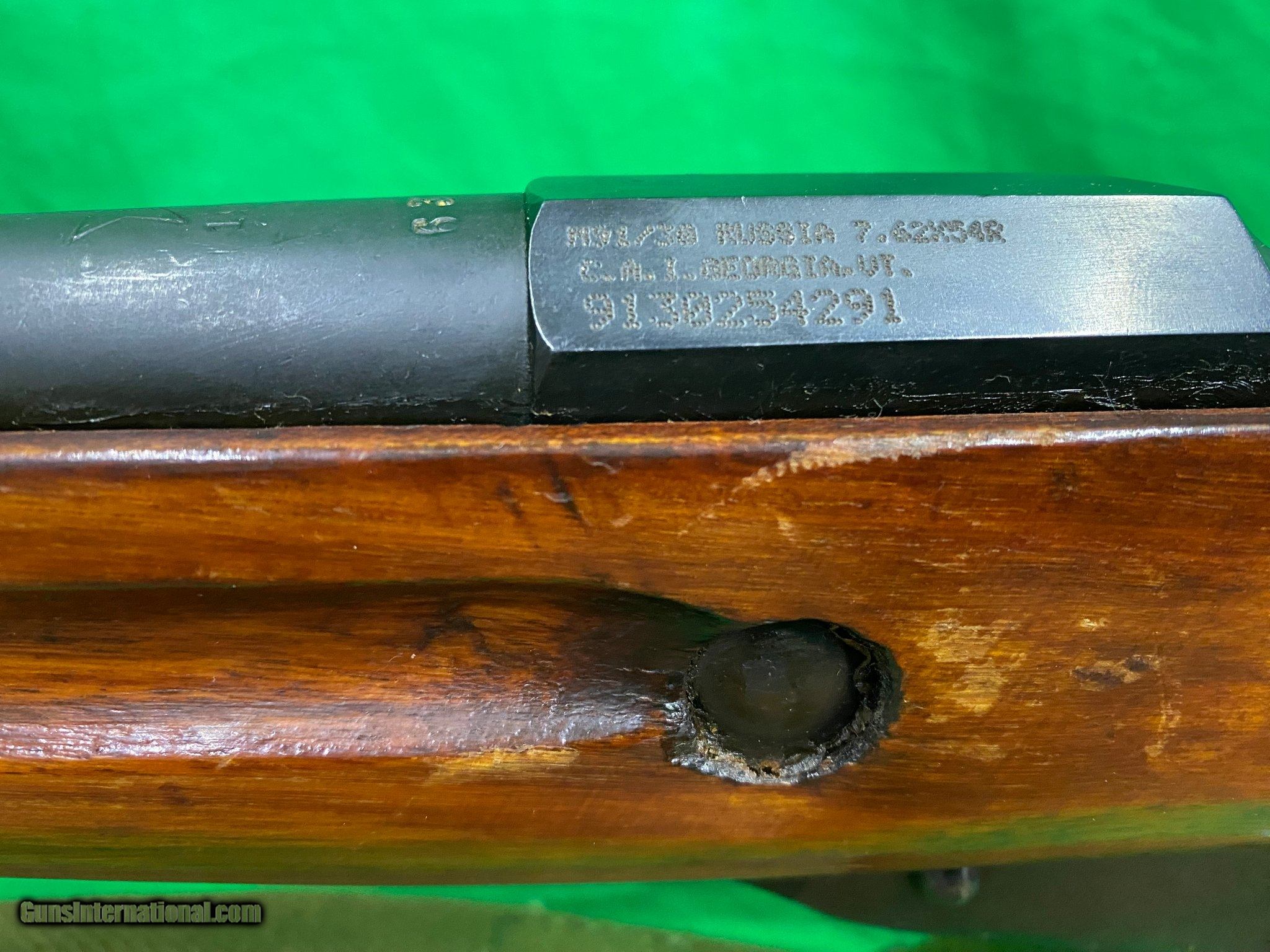 Description: Guns Listing ID: 1415592 Mosin Nagant 1936 date stamp and star with arrow inside has matching number on barrel, bolt, and plate. Has hallmarks in wood and stock with sling. SOLD Manufacturer: MOSIN-NAGANT Model: CAI M91/30 Caliber Info: 7.62X54MMR Condition: Used - Non-Certified Barrels: 29 BARREL Finish: WOOD |