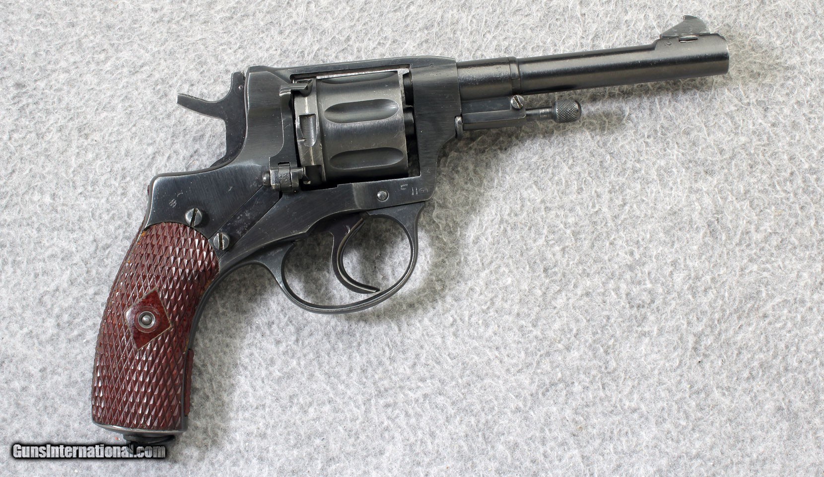 Description: This Nagant M1895 was manufactured in the Tula Arsenal in 1931. The M1895 were used by the Russian Military until after the end of World War Two and was replaced by the Makarov Semi-Auto pistol in 1952. This unique seven shot revolver would be a good additi9n to any collection 7.62x38R Metal Condition: "Very good with wear on the sharp edges, scratches and turn line on the cylinder Bore Condition: Good Barrels: 4 1/2 inch barrel Triggers: Double action Weight: 30 Oz. Sights: Square notch rear sight with blade front Item Location: Lehi, UT Price: $599.99 Contact Seller |