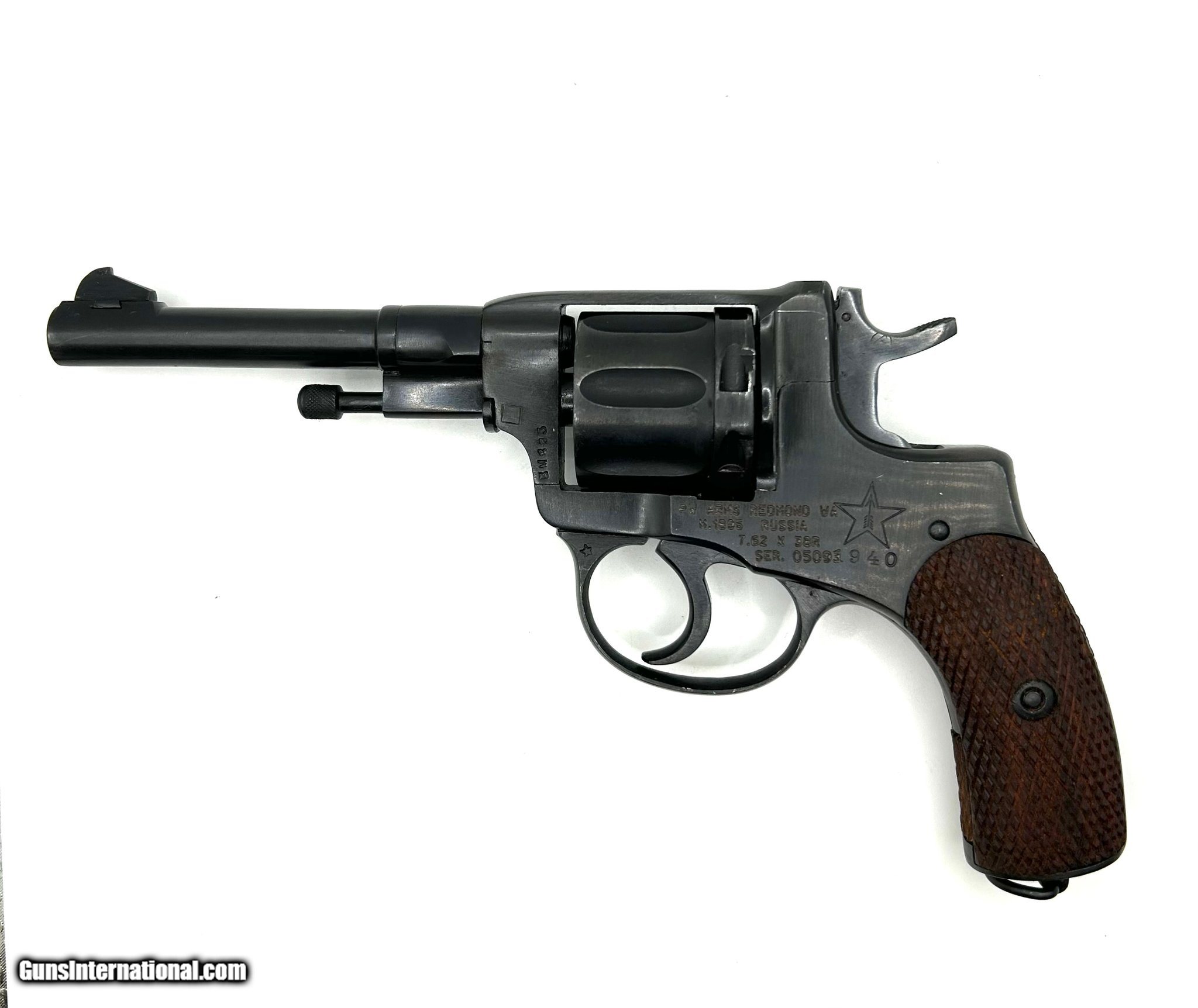 Description: Guns Listing ID: 530545 The Nagant M1895 is a single-action and double-action revolver, known for its unique gas-seal system and its ability to be suppressed. It was designed and produced by Léon Nagant for the Russian Empire. The Nagant M1895 was chambered for a proprietary cartridge, 7.62×38mmR. SOLD Manufacturer: RUSSIAN SERVICE PISTOLS AND RIFLES Model: 1895 Caliber Info: 7.62X38MMR Condition: Used - Non-Certified Barrels: 4.5 BARREL Action: REVOLVER Finish: wood grips/blued steel |