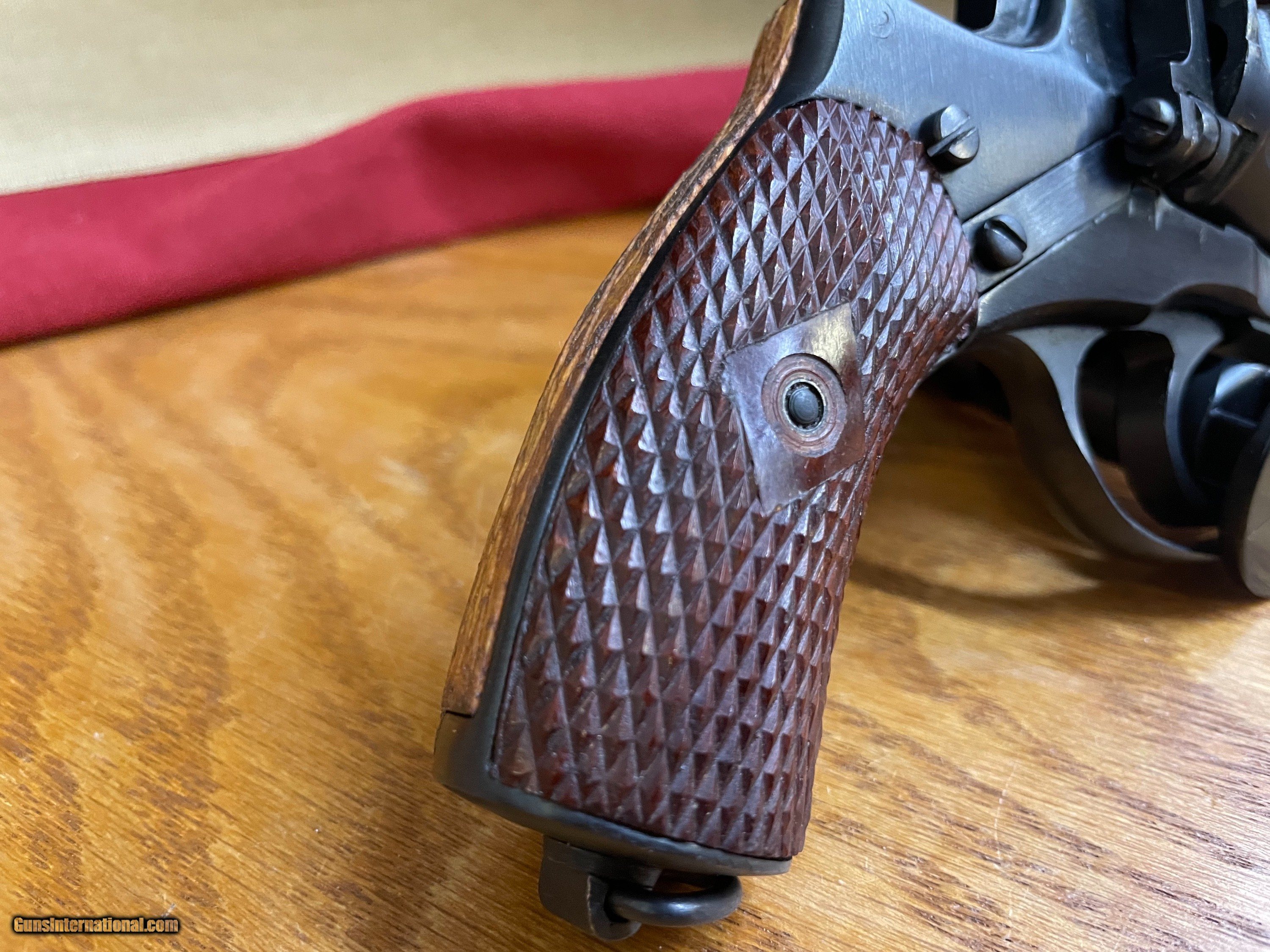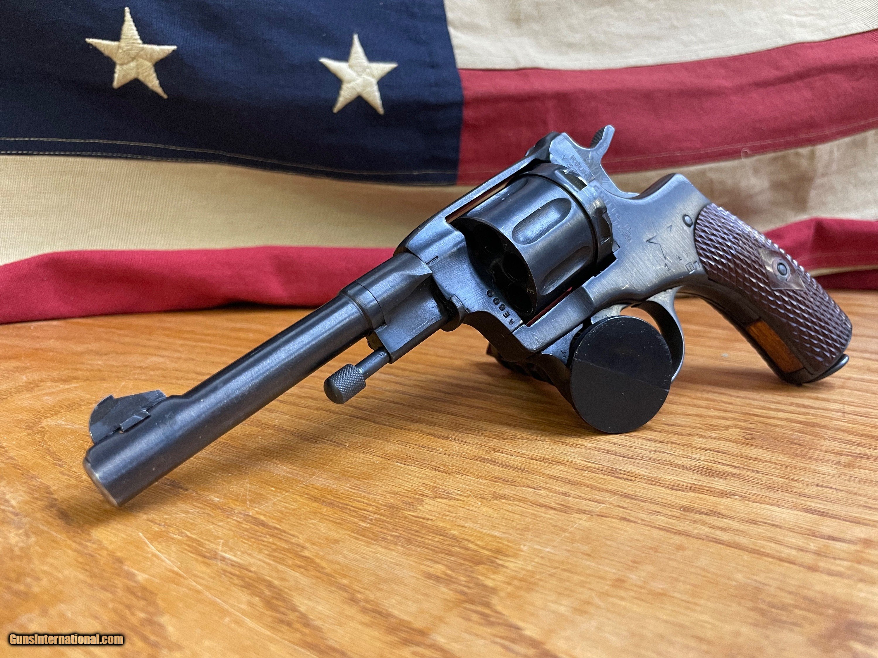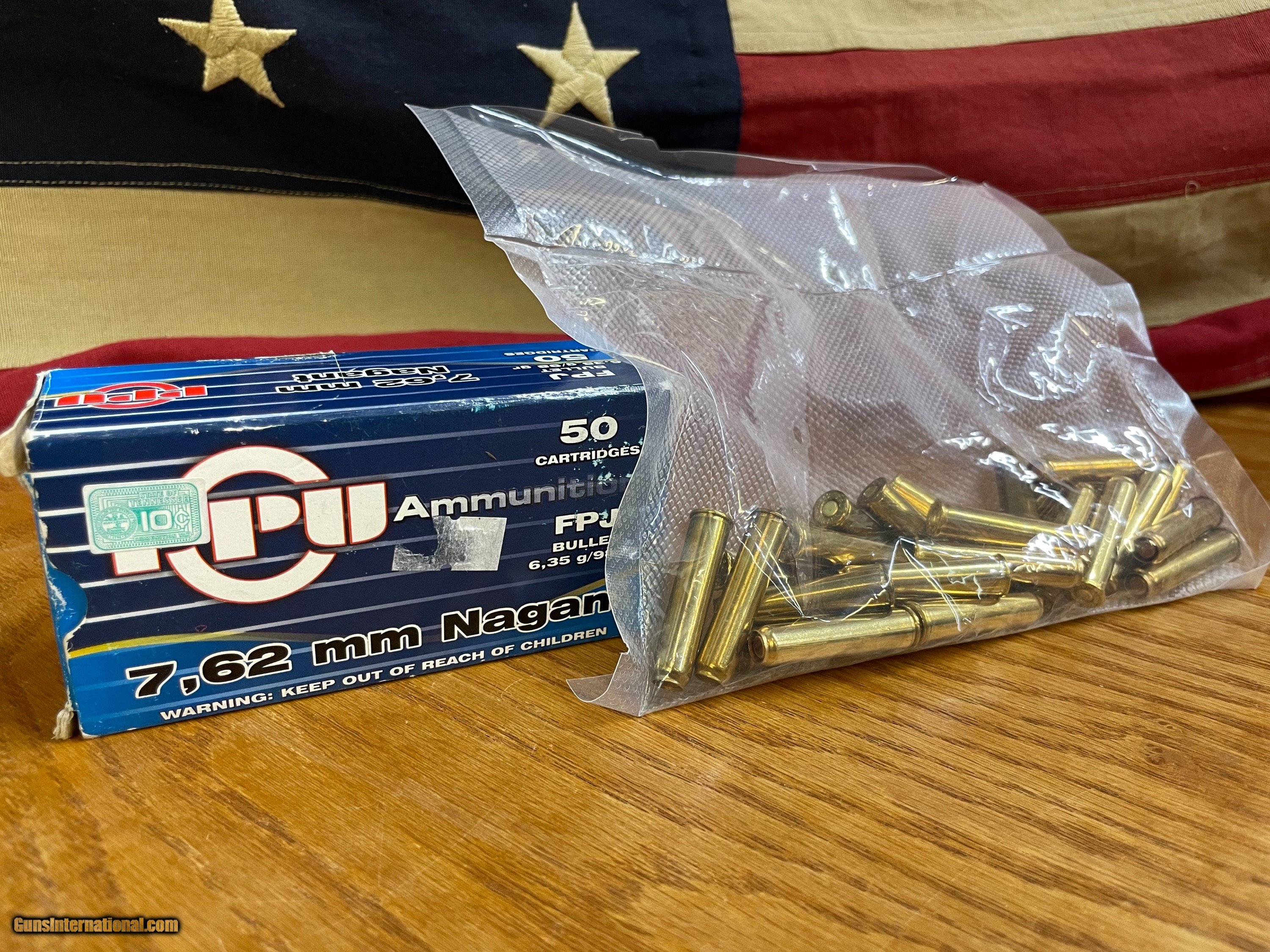 Description: Tula 1895 Nagant 7.62x38 Nagant USED Made in 1940 Approximately 70 rounds of ammo available with gun sold separately . Shipping fees separately as well . 2 leather holsters included . The 1895 Nagant Revolver is a seven-shot, gas-seal revolver designed and produced by Belgian industrialist Léon Nagant for the Russian Empire. The Nagant M1895 was chambered for the 7.62x38R cartridge and featured an unusual “gas-seal” system, in which the cylinder moved forward when the gun was cocked, to close the gap between the cylinder and the barrel, providing a boost to the muzzle velocity of the fired projectile and allowing the weapon to be suppressed