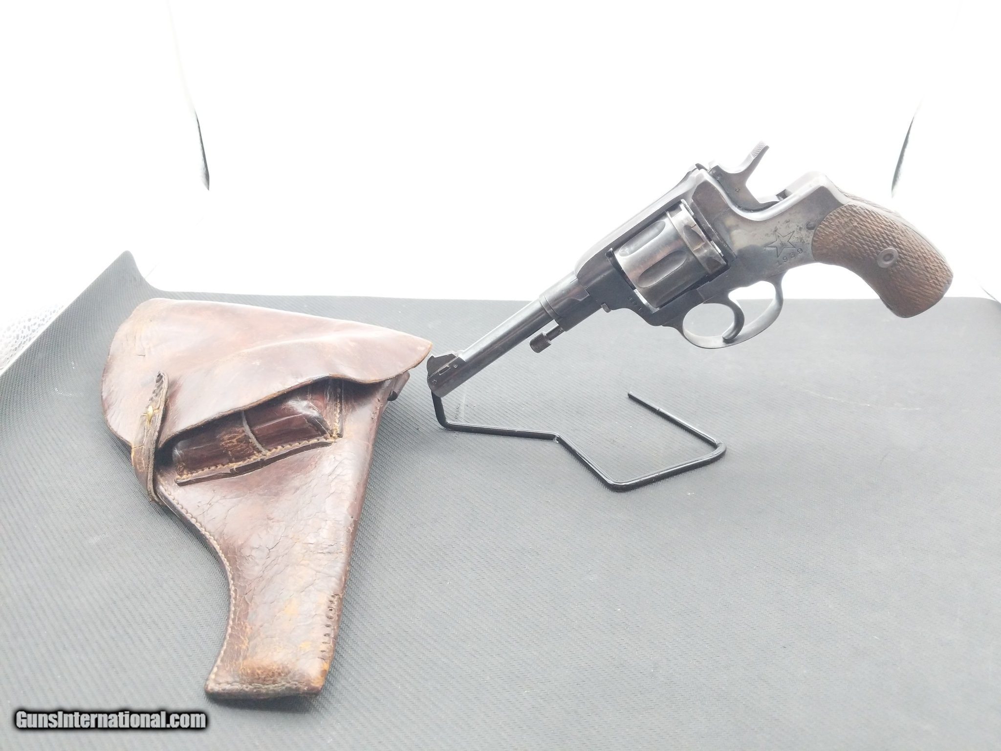 Description: Guns Listing ID: 590867 Classic Tula Arms Nagant M1895 — 7-shot revolver, chambered in 7.62×38R, with matching leather holster. WW2 bring back with no import stamps. Holster survived the Soviet leather recycling and has an original field repair (see pictures). A piece of history: rugged, all-steel construction and the Nagant’s distinctive gas-seal cylinder make this a standout for collectors and historical shooters alike. Compact 7-shot capacity, double-action/single-action trigger, and a period leather holster included — great as a display piece or for range use. Manufacturer: TULA Model: Nagant 1895 Caliber Info: 7.62X38MMR Condition: Used - Non-Certified Barrels: 4.5" BARREL Action: REVOLVER Finish: black with wood grip Price: $999.99 Contact Seller |