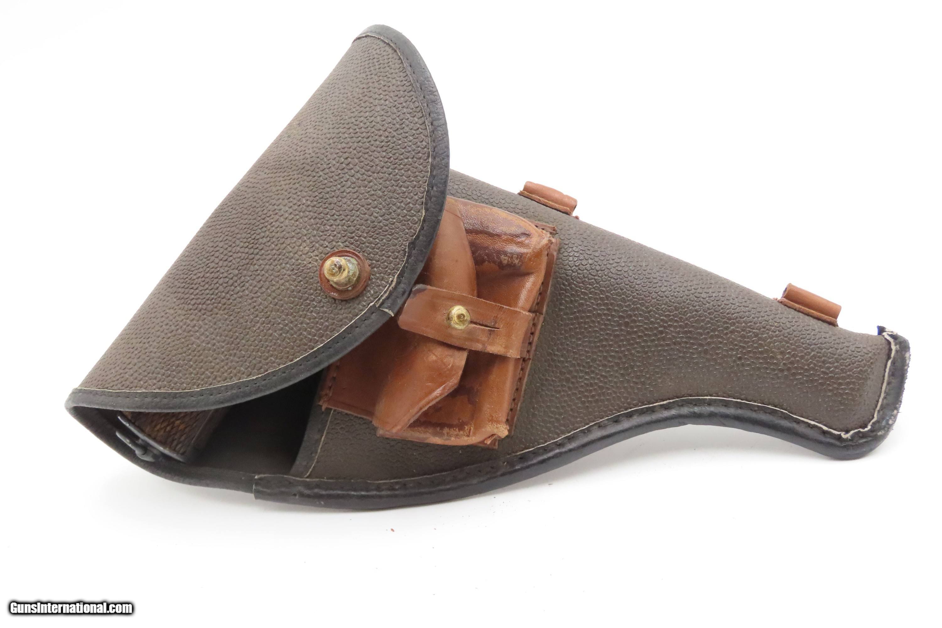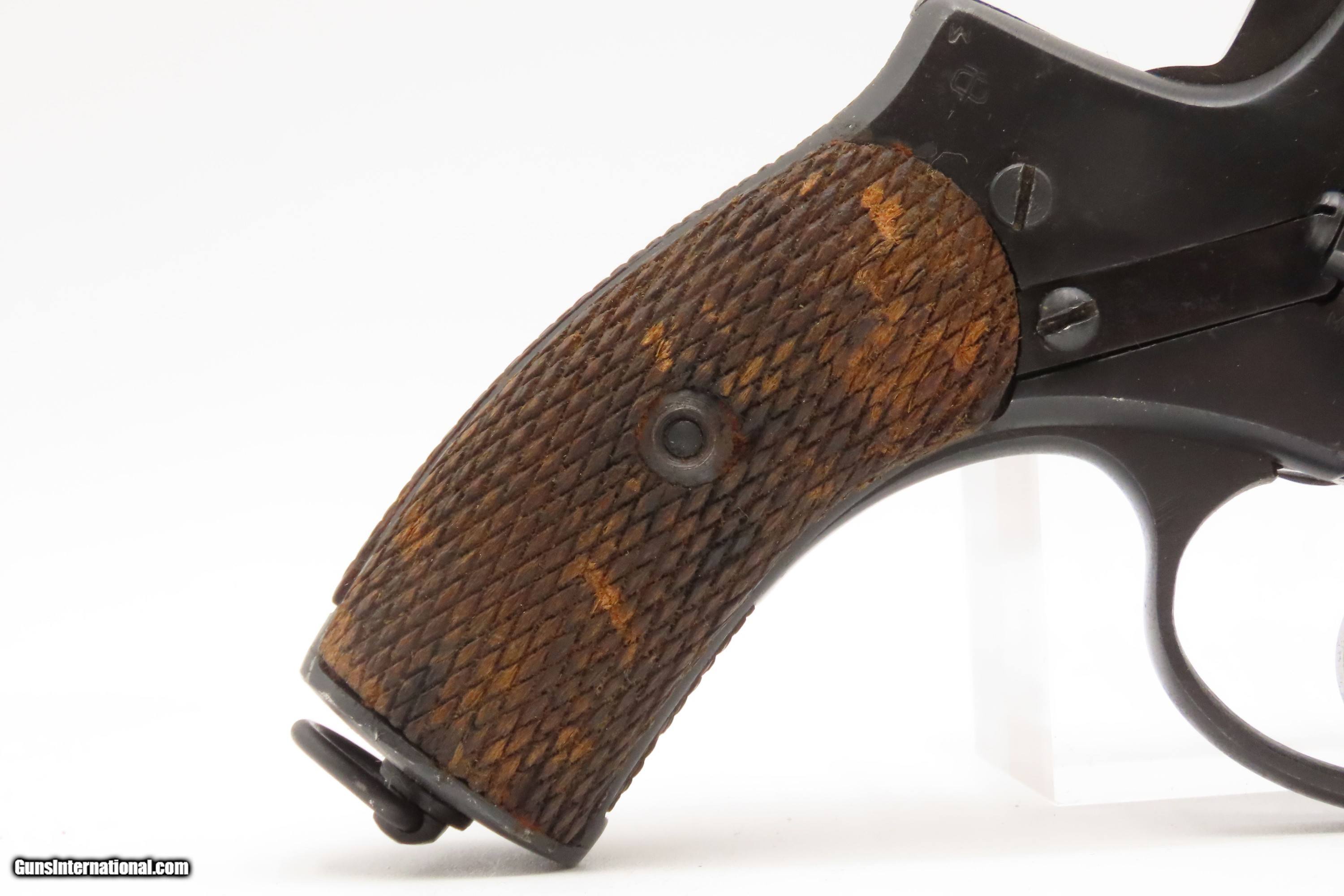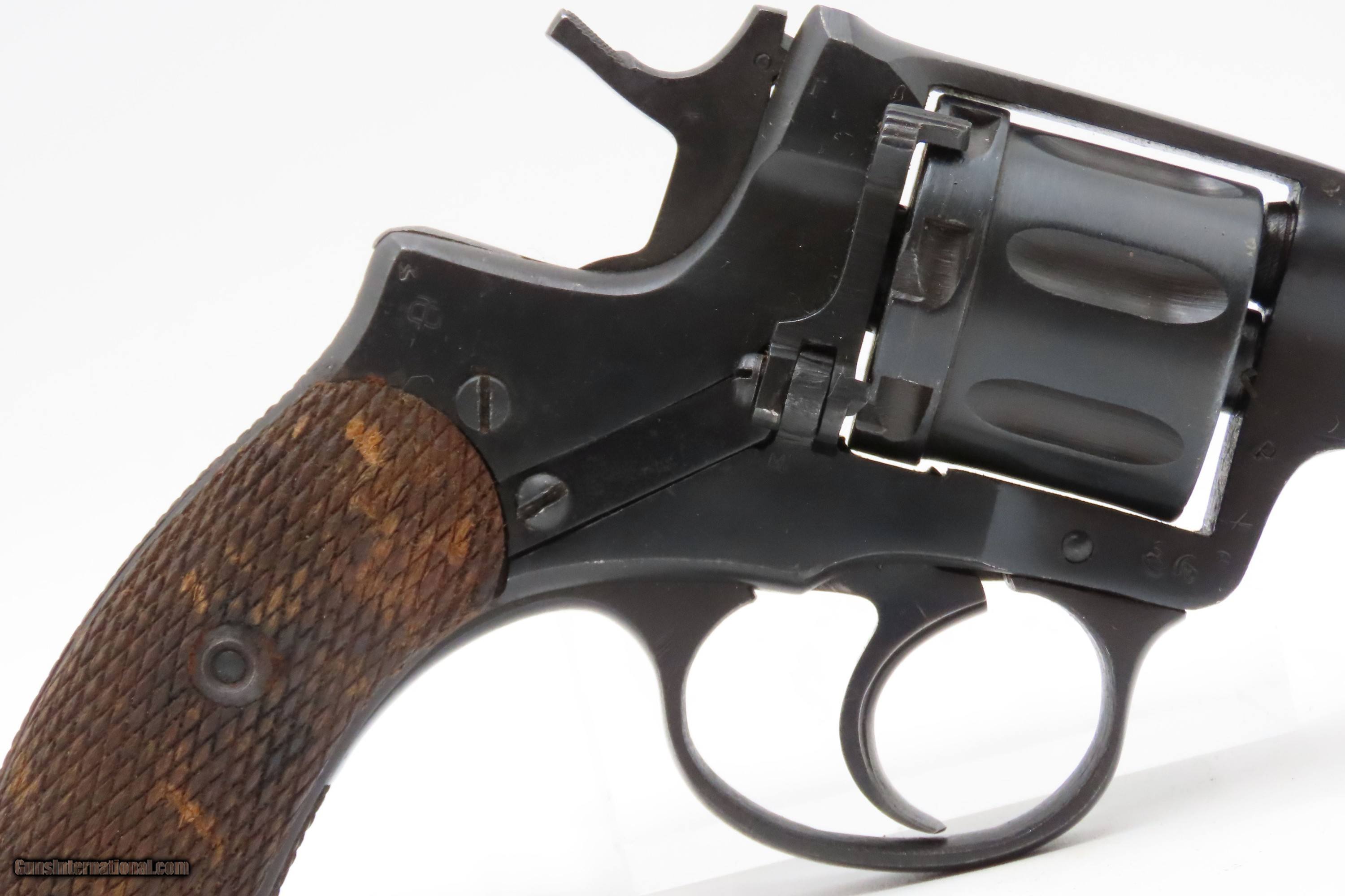 Description: WW II Soviet NAGANT M1895 TULA Arsenal Revolver EASTERN FRONT with HOLSTER WORLD WAR II Russian Revolver Made in 1945 Here we present a Soviet Russian Nagant Model 1895 Revolver made at the Tula Arsenal in Russia, circa 1945. The Nagant was designed by Léon Nagant, whose brother Émile had also taken part in designing the Mosin–Nagant rifle. The Nagant M1895 was adopted as the standard issue sidearm for the Imperial Russian Army and police officers, where it replaced earlier Smith & Wesson models such as the Model 3. Production began in Liège, Belgium, though Russia purchased the manufacturing rights in 1898, and moved production to the Tula Arsenal, and was soon producing 20,000 examples per year. This was the primary sidearm of the Soviet Union during the Second World War. This one bears the Tula arsenal mark and a date of 1945. This is a seven shot revolver that was produced in two versions, the first being a double-action version for officers, and a cheaper single-action version for the lower ranks. Seven Nagant revolvers were used by communist revolutionaries to kill the Russian imperial family and their servants in July 1918. After the Russian Revolution, only the double-action version was made. Nagant revolvers were used by the NKVD and Red Army units until the end of World War II, with a total of 2,000,000 produced. It is chambered for 7.62x38mmR and features the “gas seal” system. This involves the cylinder moving forward when the gun is cocked to create a seal between the barrel. This provided a boost to the velocity of the projectile by eliminating cylinder gap. As mentioned, Léon Nagant is to be credited with this unusual system. He was quite the inventor and gun maker. The M1895 was made in both single and double action, though the double action design eventually became the default. The M1895 Nagant was reliable and was used by the Soviet Union military all the way up to about 1952, when it was replaced by the Makarov pistol. The overall condition is good. This example has been refinished. Excellent action. Shiny bright, sharply rifled bore. Both grips are fine with sharp checkering. Markings are sharp. Import marked frame. “1945” dated. The holster is in good shape. Own the original! This firearm is classified as a Curio & Relic. Barrel is 4-1/2 inches. Caliber: 7.62x38mmR Nagant Overall condition as seen in photos. Very Fast. Very Safe. FREE SHIPPING. Will need to be sent to your local FFL or C&R licensee. This firearm is classified as a Curio & Relic. ancestryguns $1800 #250416 SOLD Curio/Relic: Yes |