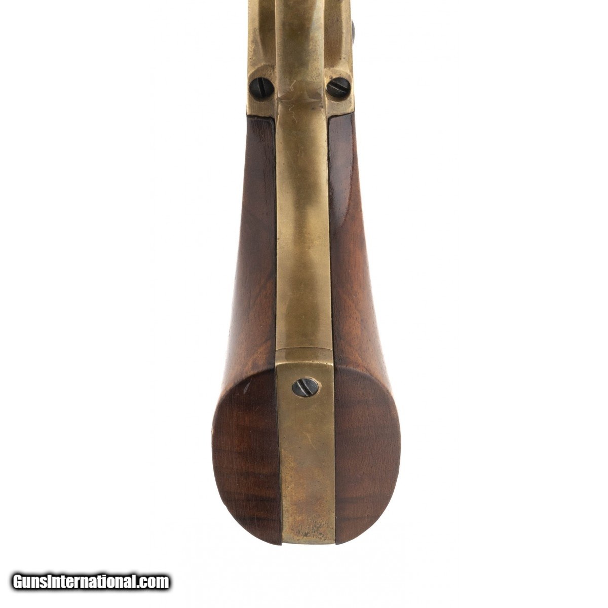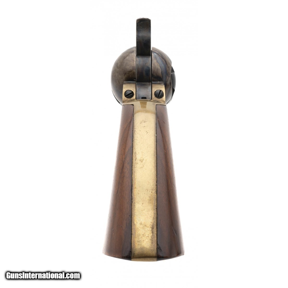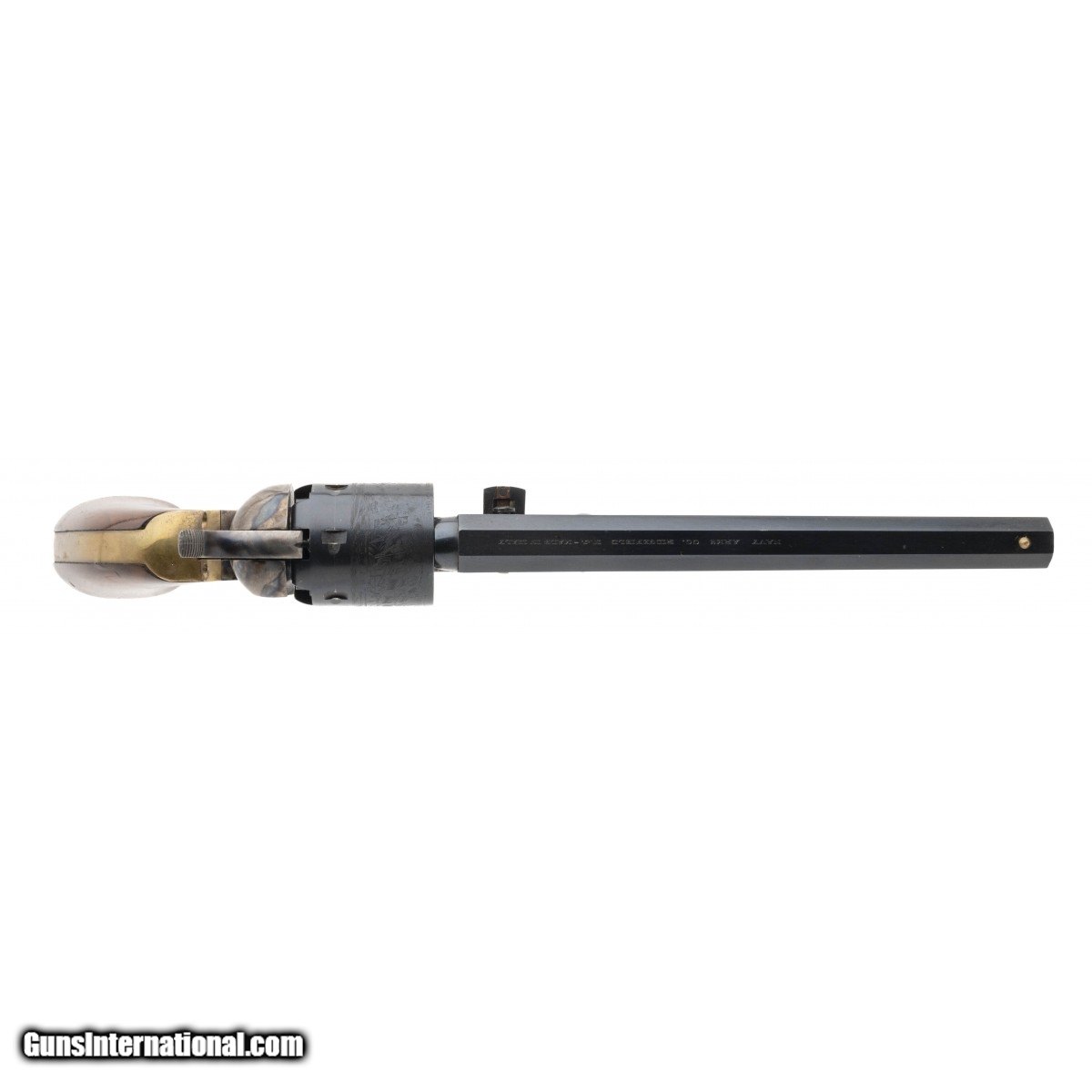 Description: " SN:10241. Modern production .36 cal with a 7.5"" barrel. Bore is excellent. Black powder 1851 Navy replica with engraved cylinder, Case colors, and wood grips. Overall condition is excellent. SOLD |