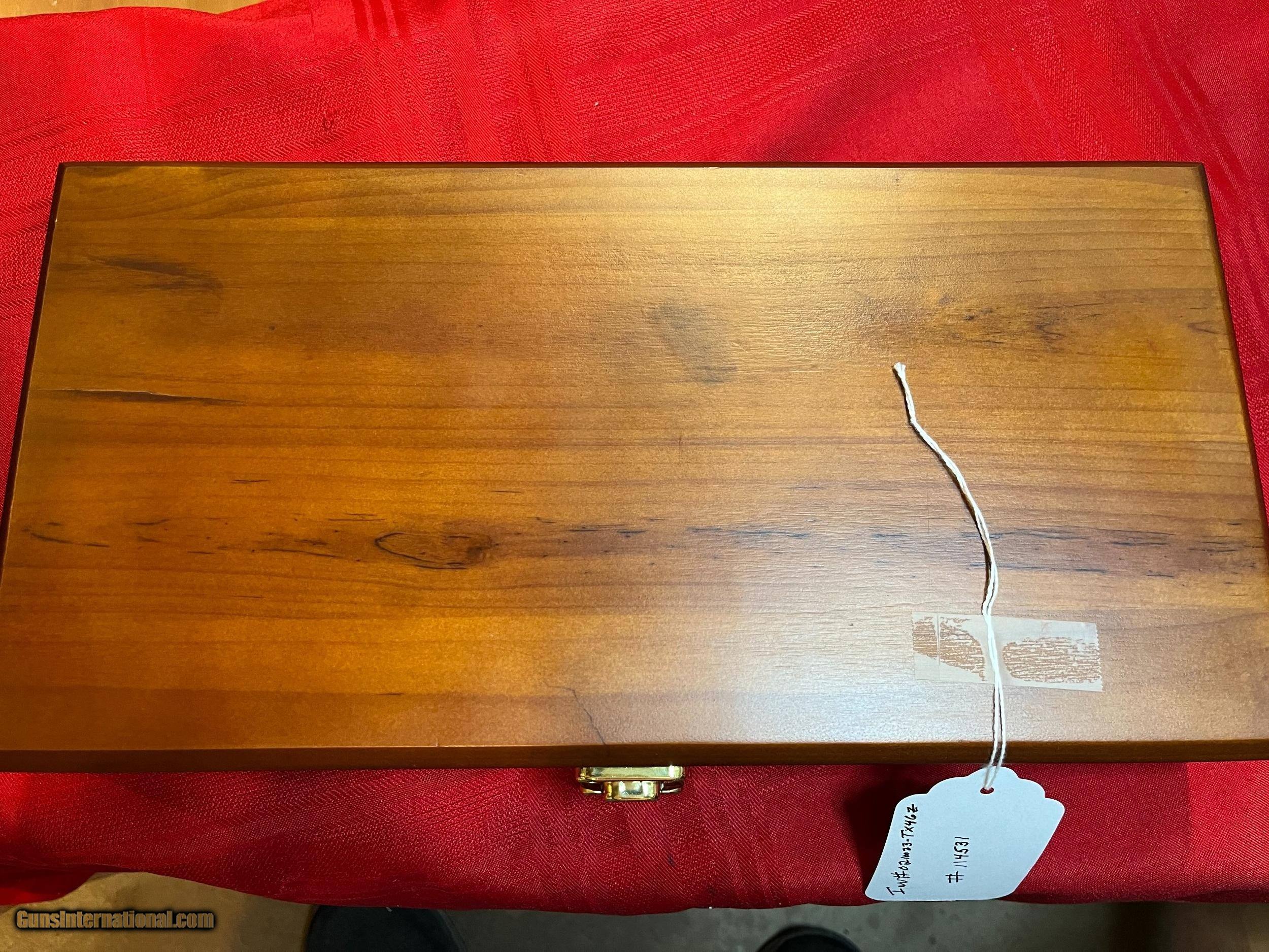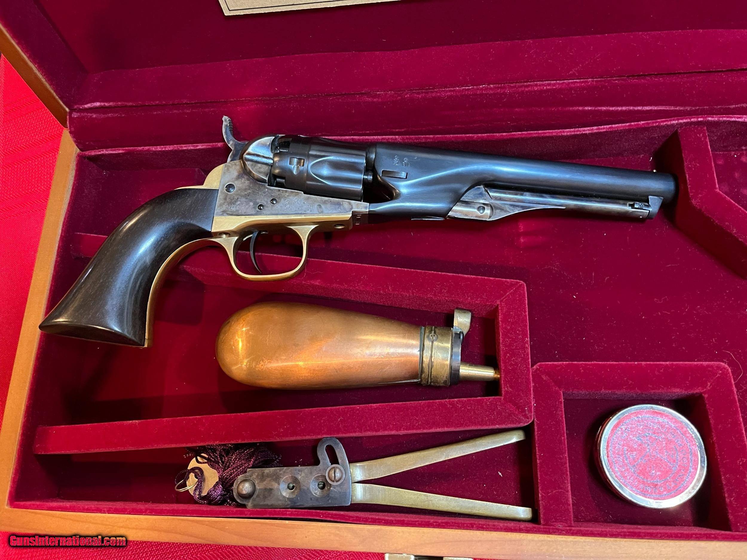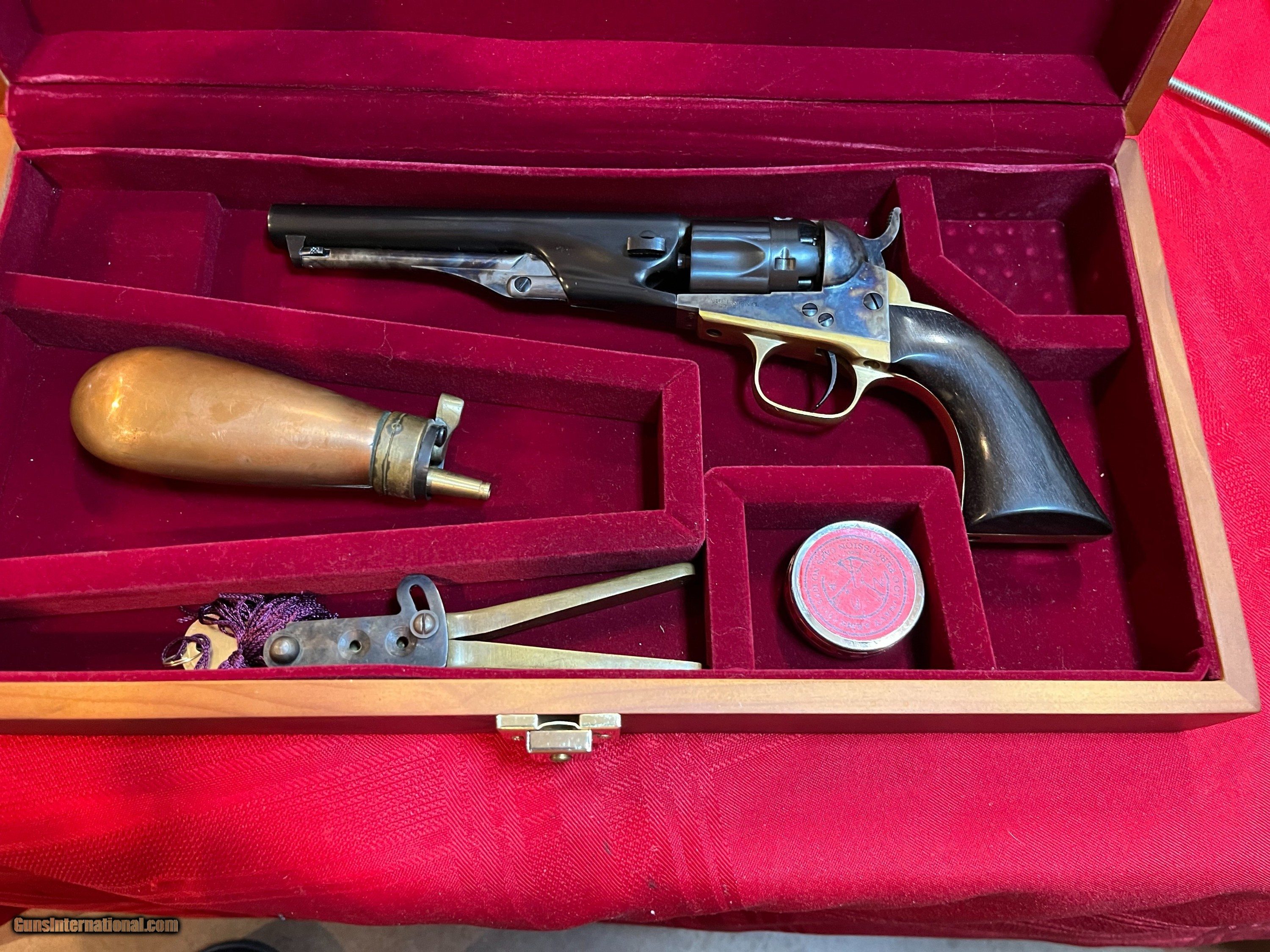 Description: Made for Navy Arms by Pietta. Colt 1862 New Police. 36 Cal. 5 1/2" barrel. Ebony grips. Unfired. Presentation box. SOLD Antique: Yes Handgun Caliber: .36 |