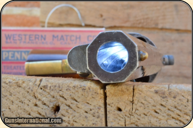 Description: This gun has no Italian proof marks and is not marked blackpowder only. The only marks are "NAVY ARMS CO" on the left side of the frame and on the barrel top flat, on the right side of the barrel "MADE IN ITALY" and the letters "GU" in script. The cylinder is marked 50 and the Serial No. is 1582. These guns began production in 1958 to be ready for the Centennial of the Civil War. They were produced by Gregorelli and Uberti. They are the earliest Navy Arms made. In the early days of the Navy Arms / Uberti connection, Gregorelli actually produced the metal parts for the revolvers and Uberti assembled them. This is a copy of a "Civilian Model". None of the attachments for the shoulder stock are on this revolver. There are no safety pins on the breech of the cylinder and the hammer face does not have the notch for the pins. The hammer does sport a non-traditional square notch for a rear sight, very well done and visible to my old eyes. The .36 caliber bore appears unfired. The cylinder is not engraved but smooth. Very early production. With finishes of about 98%. These are very scarce and near impossible to find. 57 years old. These revolvers are extremely collectible. This is one of the first Uberti made replicas that Val Forgett had imported. Great find and it's worth preserving this very collectible piece. PAYMENT Cash, postal money order, cashiers check, personal & business checks. May order at riverjucntion on-line with credit card. SOLD |