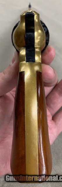 Description: Looks like this revolver, an early Navy Arms Import made by Pietta, spent most of its life in a dresser drawer. Revolver remains in just about perfect condition, brass a nice mustard color (never polished), etc, etc. Would be pretty hard to improve upon. No ffl required to purchase but buyer must be 21 and live in a non-communist leaning jurisdiction. Shipping/insurance adds $25.00 to the cost and we accept credit cards for purchase with no fee. SOLD Handgun Caliber: .44 |