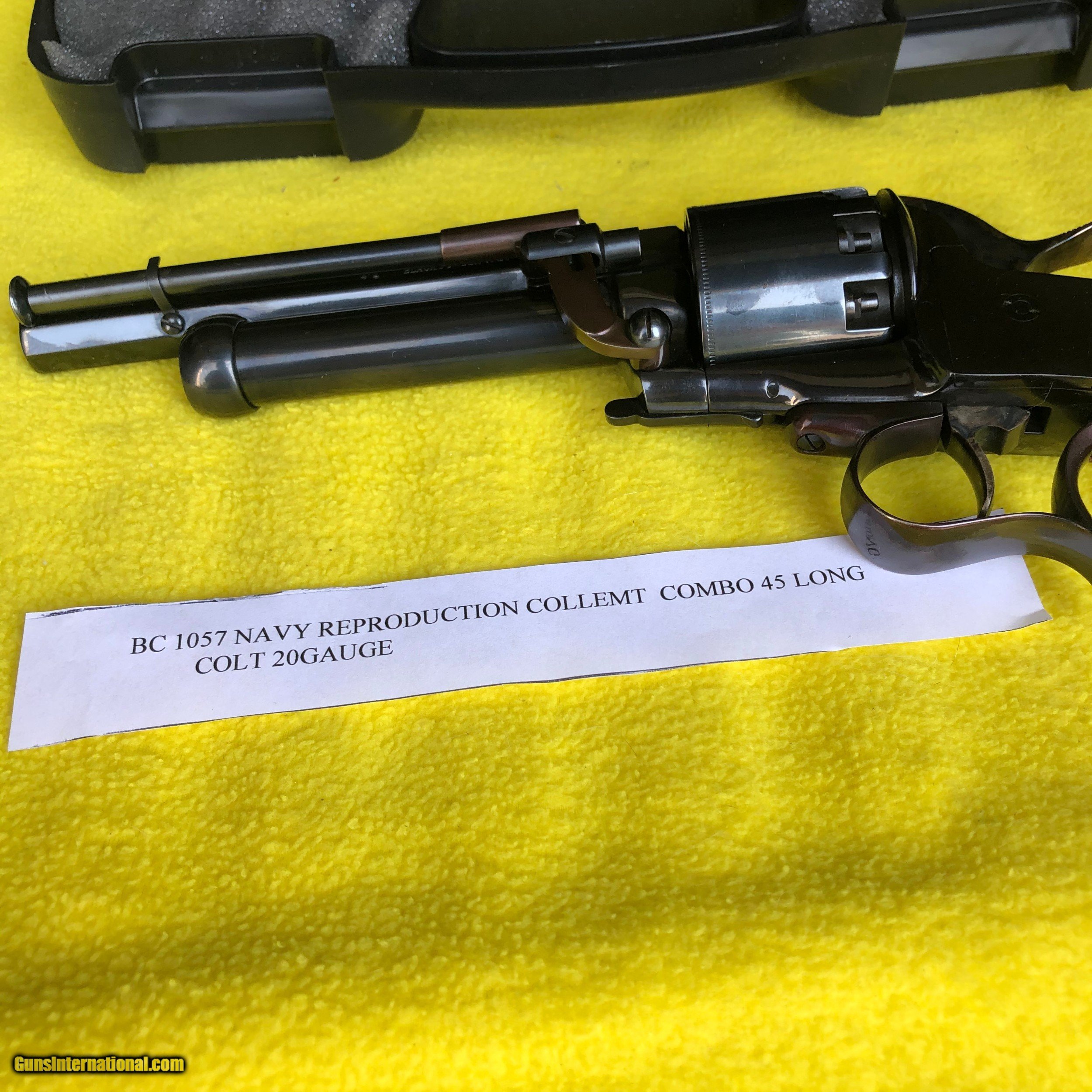 Description: Reproduction collamet combo 45 long colt and 20 gauge shot gun shell New without paper work or box SOLD Manufacturer: Old navy Model: collemate Serial Number: 757 Condition: 100% Metal Condition: 100% Bore Condition: 100% Case: hard case |