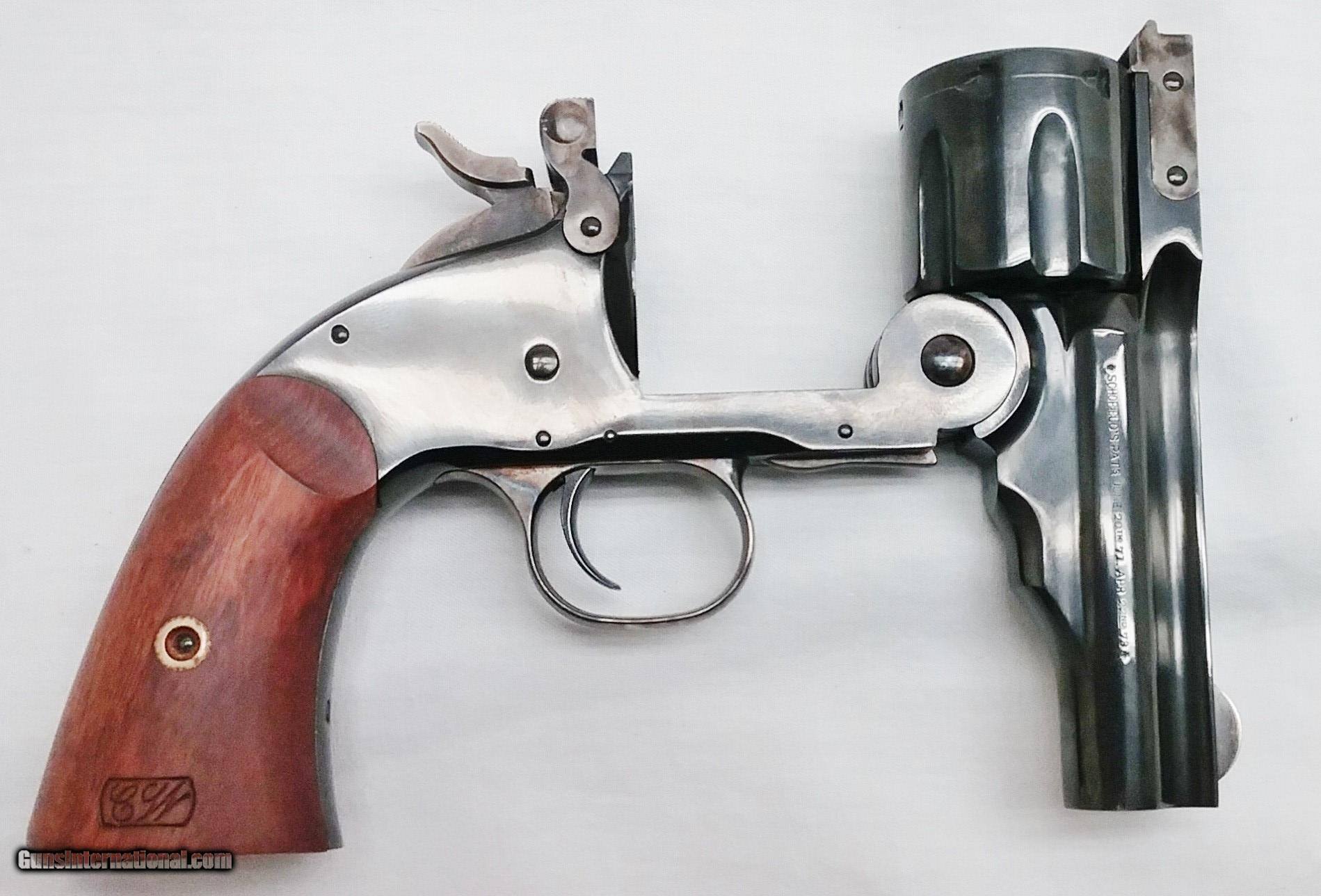 Description: This .45LC Navy Arms Schofield has a 3-1/2” blued tapered barrel with fixed sights. The bore is very good. The Walnut grips featuring cartouches are in very good condition. This revolver is in very good condition with the exception of drag marks on the cylinder. Overall length is 9-1/2”, weight is 2 lbs, 6 oz. Our stock number is A935. Will ship to any FFL anywhere in the United States. Buyer pays freight and insurance. SOLD Caliber Info: .45 Colt Bore: Rifled Chambers: 6 Condition: Very Good Metal Condition: Very Good Wood Condition: Very Good Bore Condition: Very Good Barrels: One Barrel Type: Tapered Action: Single Action Triggers: One Finish: Blued Weight: 2 lbs, 6 oz Sights: Fixed Item Location: OR |