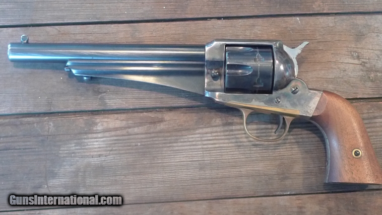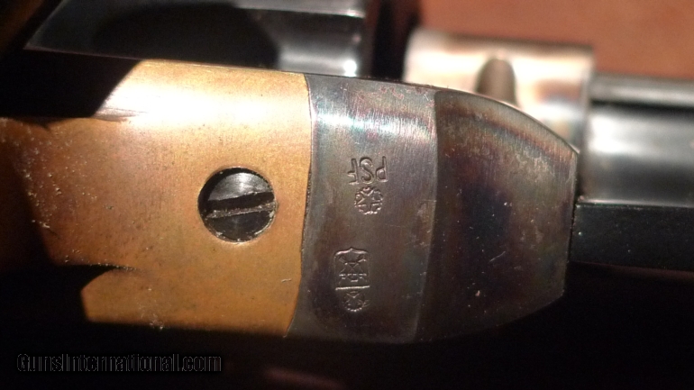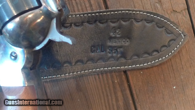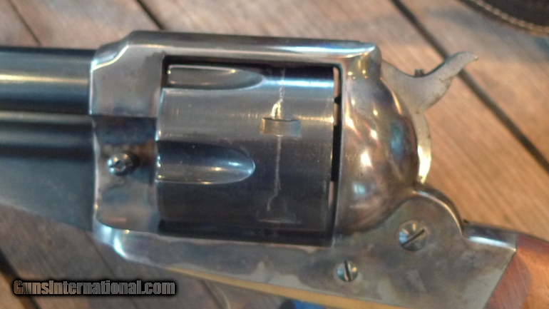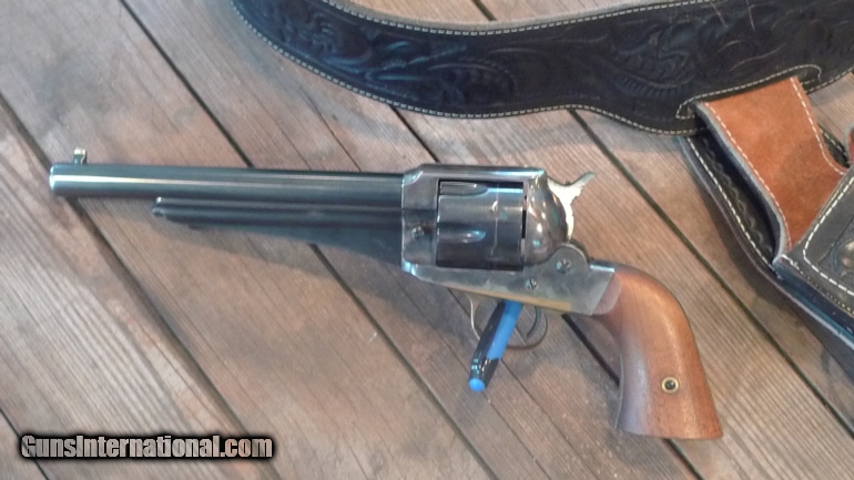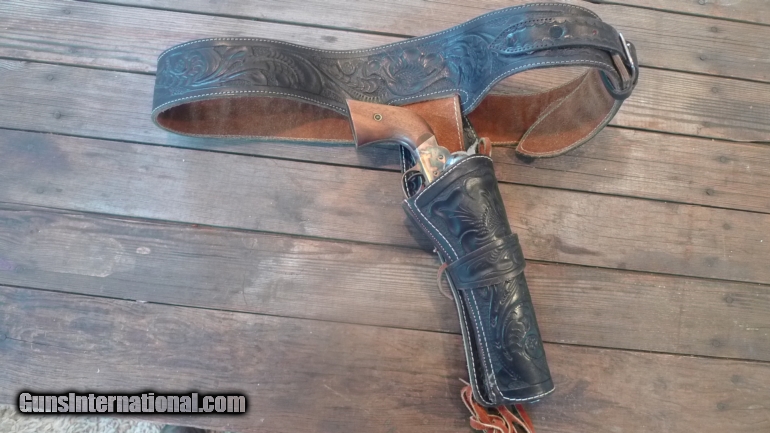 Description: Remington 1875 outlaw replica w/ 7-1/2" -as imported from Uberti around 1970 .( about 100 years after the fact. It was built when Quality was best, and craftsmanship was EVERYTHING ! this pistol has been used lightly over the years , and it shows. The finish is not new anymore but , in all fairness, it was artificially rubbed and buffed to look old when the pistol was new. The result is a a pistol that looks like it was actually built in 1875 and has about 95% and has about 95% of it's origional finish. the barrel showl extremely light scratches which the owner had applied to the pistol when it was new to " AGE" it. there is a turn ring around the cylinder that was created natuarely over the past 40+/- years. The action is smooth as glass, the grips are perfect. The trigger may have been worked when new or else it has worn in to perfection ! Mechanicly the revolver is absolutly perfect, visually it looks somewhat aged...as it should IMHO. It is priced about 60% OF msrp and about 50% of actual street price for a new replica 1875 outlaw ,if you can wait10-12 months or so for one . Included with the revolver is a hand tooled Single Buscarado rig , made in Mexico sized 42 ( this would work for a pard with a 38" pants belt size holding up his britches. this can easily be altered by removing two rivets and adjusting the position of the belt holes strap to suit....within reason. if you don't want the holster...we can talk. Shipping to your FFL is $25.00 PS: in spite of what my profile says i do not live in NY...I live in the peoples republic of New jersey SOLD |