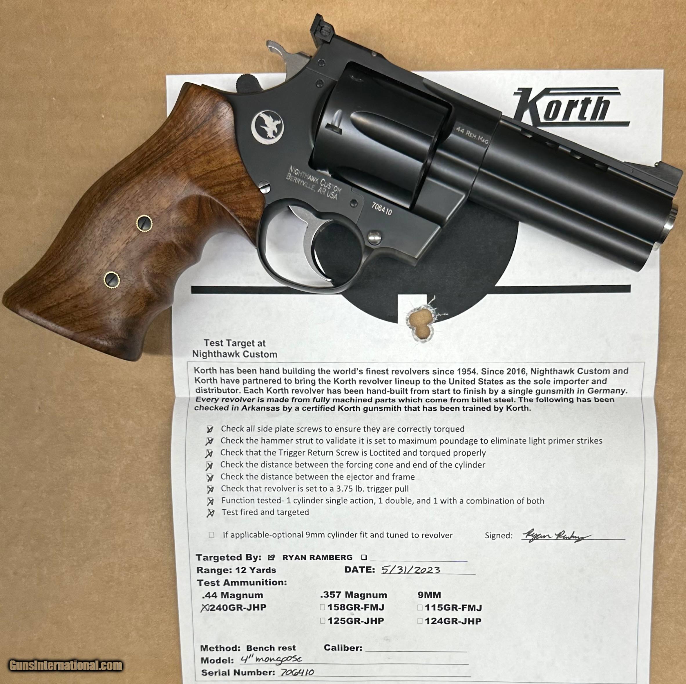 Description: Nighthawk Custom Korth Mongoose 4" Barrel 44 Mag Revolver 1091 - Factory New SOLD |
