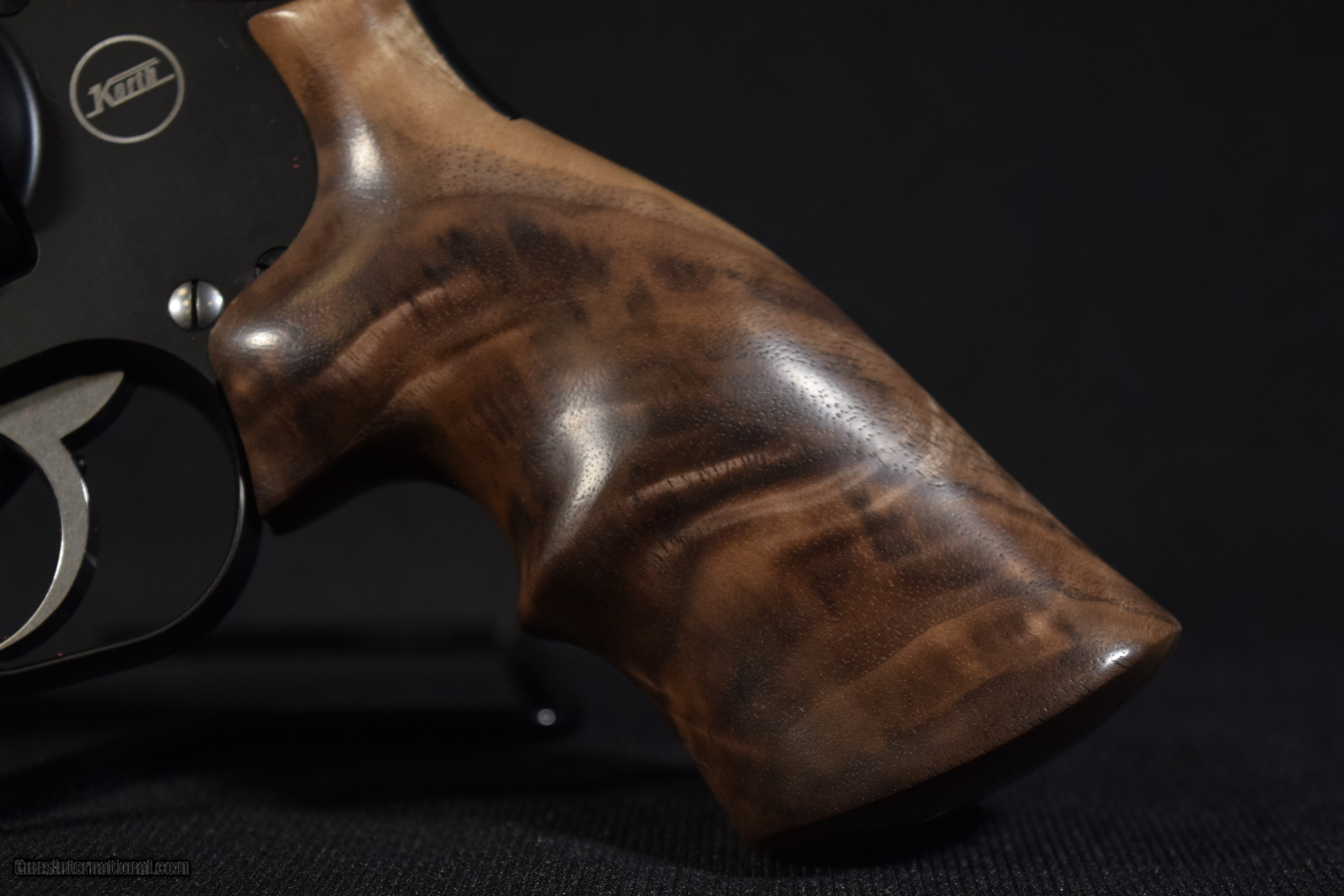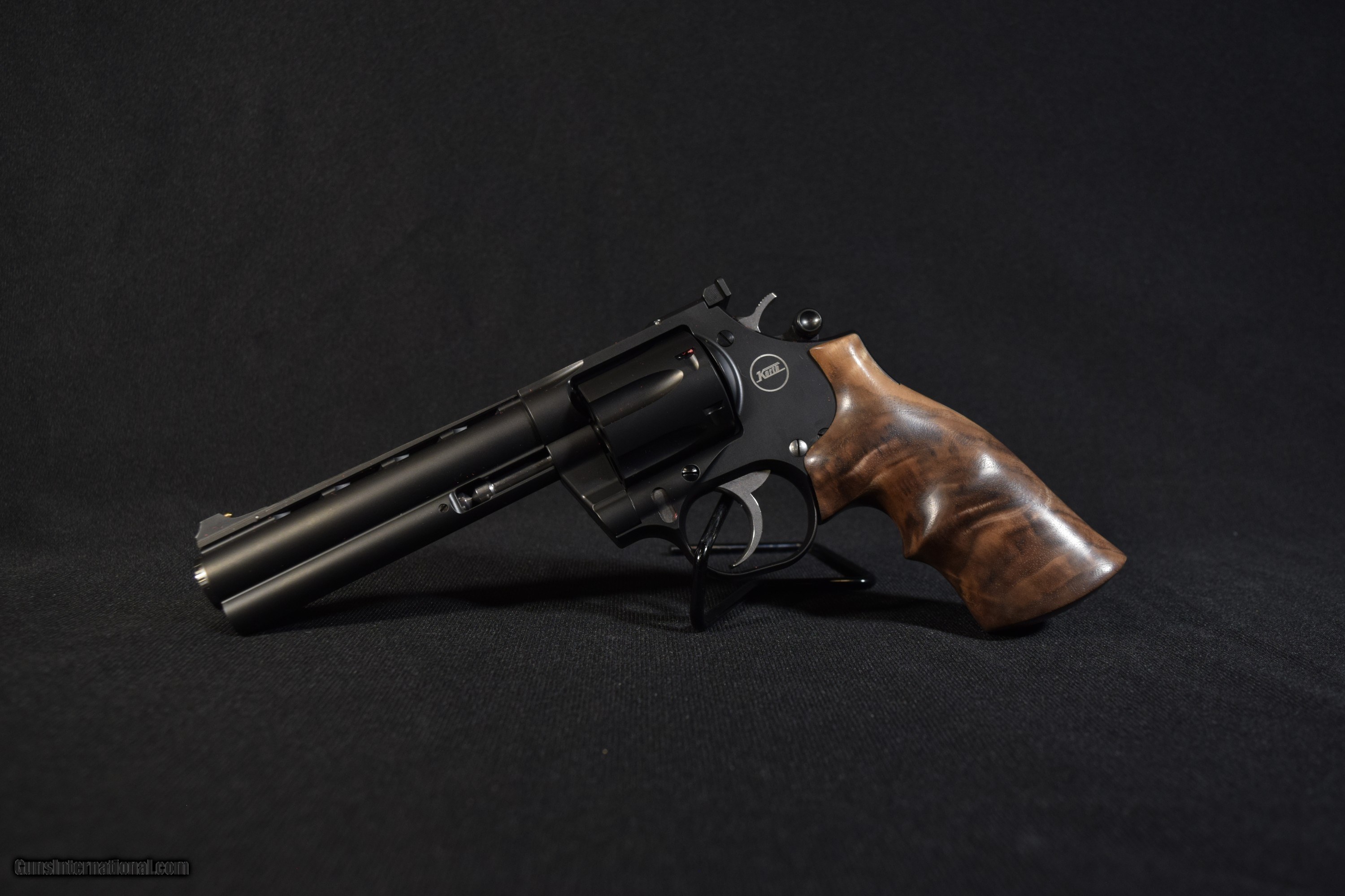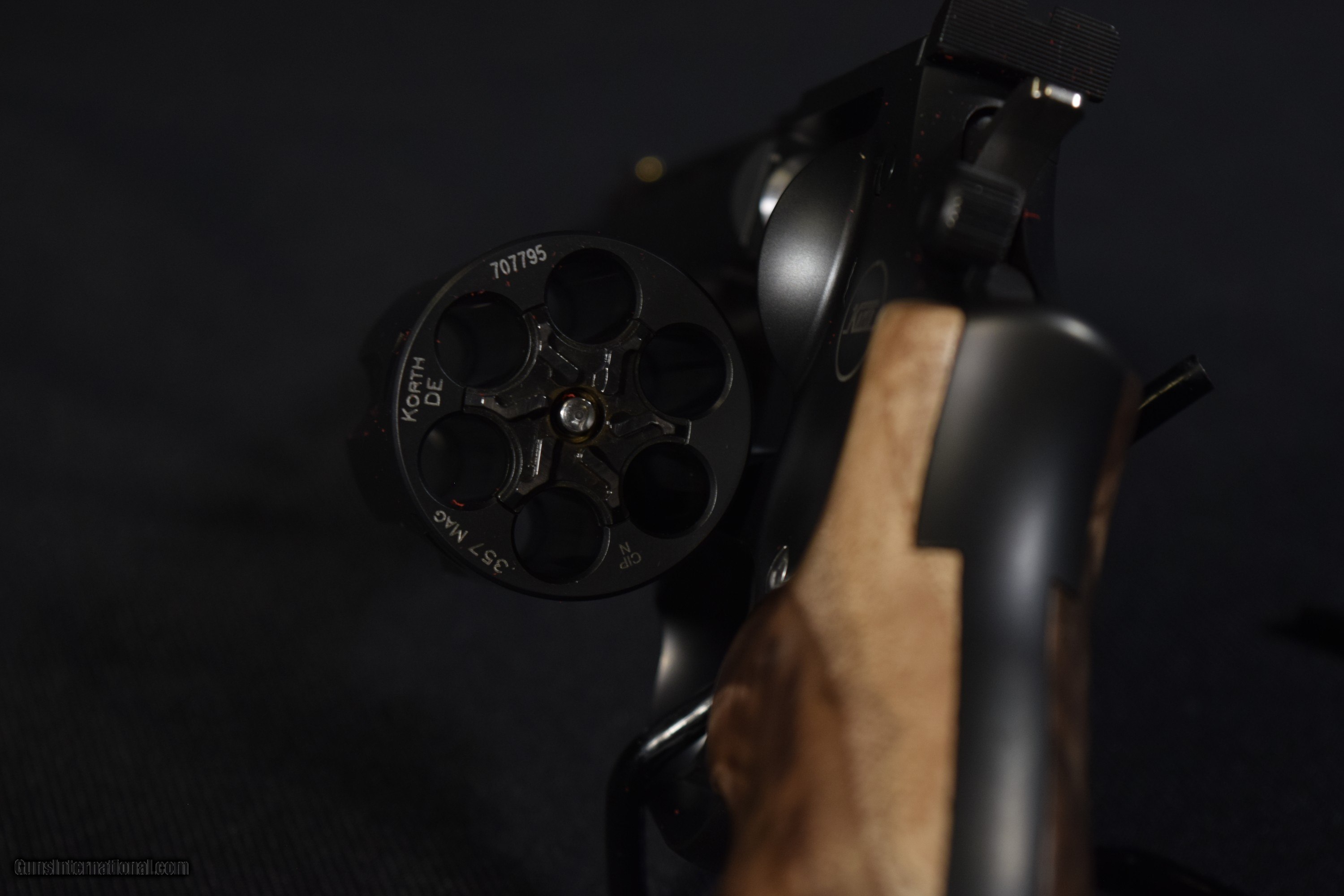 Description: The revolver's design pays homage to the craftsmanship of older revolvers, where each piece was hand-built and treated as functional art. In the case of the Korth Mongoose, the frame and all components are fully machined from high-quality billet steel. The trigger face is polished to a high shine, and the roller trigger system, renowned for its smooth action, offers a distinct shooting experience even for seasoned shooters. Additional features of the Korth Mongoose include a ventilated rib, a black Diamond-Like Carbon (DLC) finish, and a front sight adorned with a 14k gold bead. This combination of classic aesthetics, advanced mechanics, and interchangeable cylinders sets the Korth Mongoose apart from other revolvers on the market, offering a level of versatility and performance that appeals to firearm enthusiasts and collectors alike.