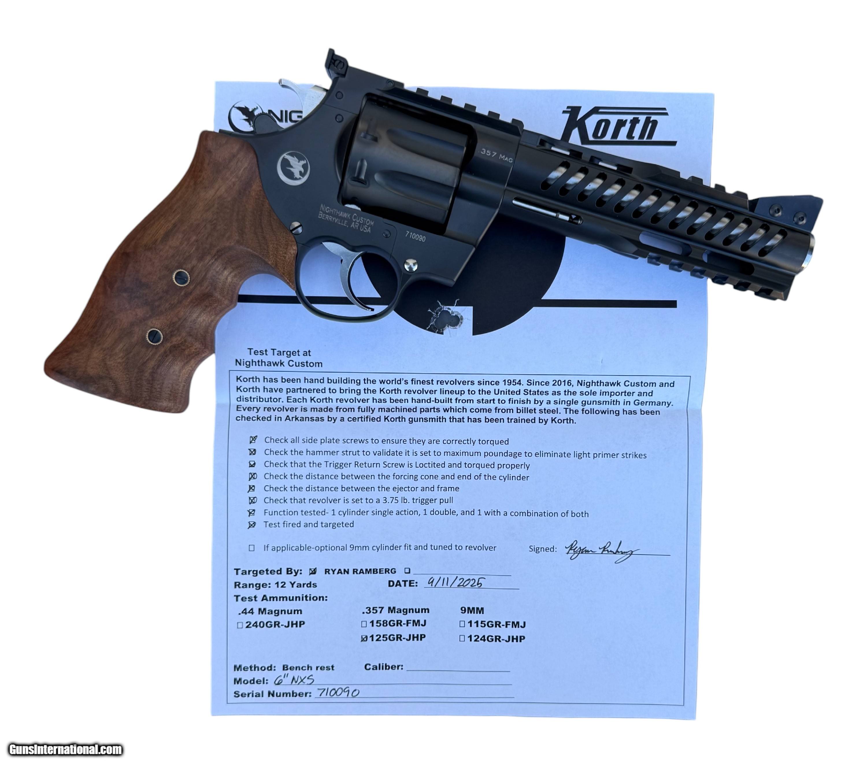 Nighthawk Korth NXS 357 Mag 8 Shot 6" Barrel Turkish Walnut Grips 0469