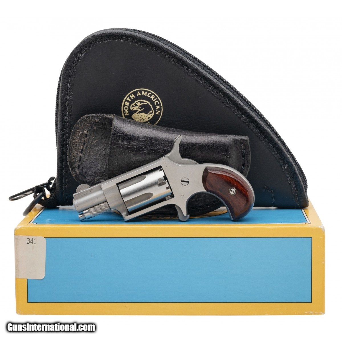 SN:L038989. Modern production, .22LR, with a 1"" barrel. Bore is excellent. Mini single action pocket revolver. Has all original stainless finish. Wood grips are excellent. Comes with original box and holster. Overall in excellent condition.