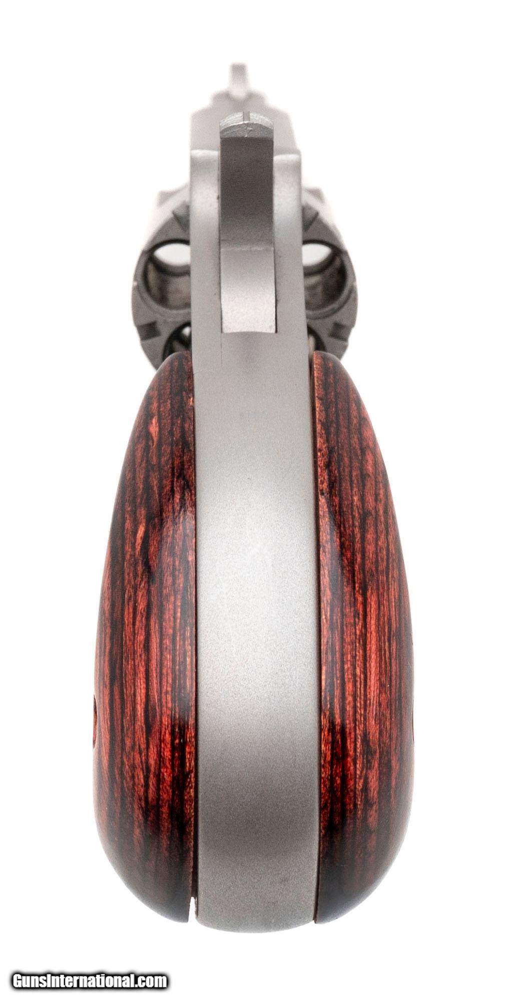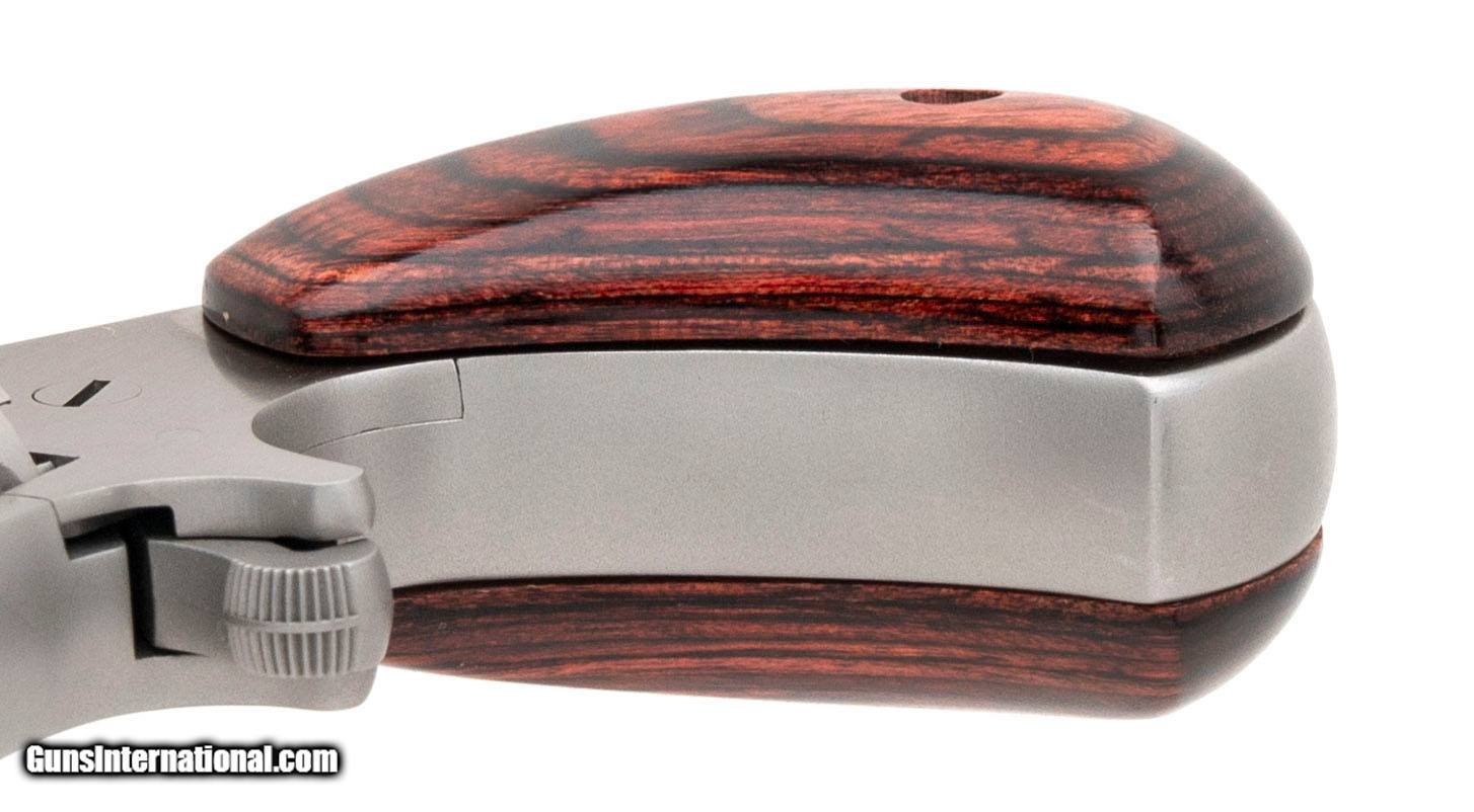 Description: "SN: E217558. Modern production, .22 Magnum with a 1.125"" barrel. Bore is very good. Stainless steel pocket revolver with laminate wood grips. Overall condition is very good. SOLD |