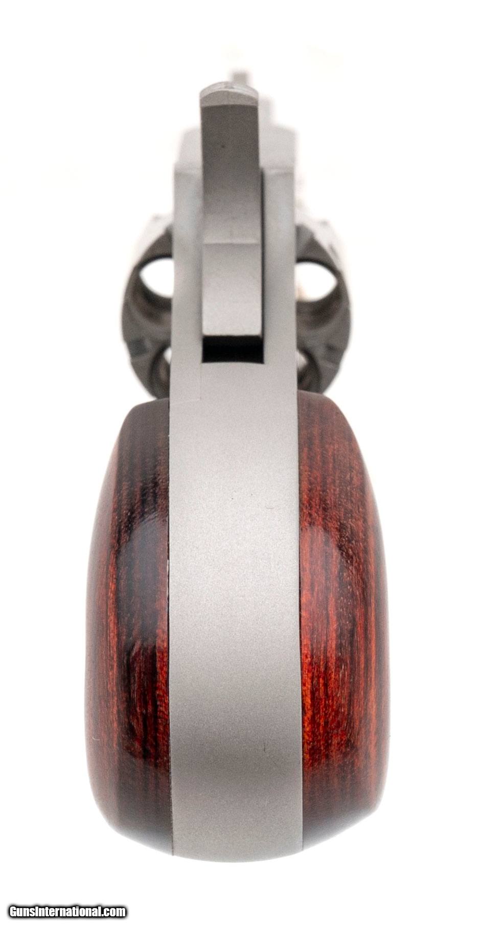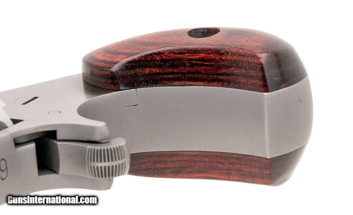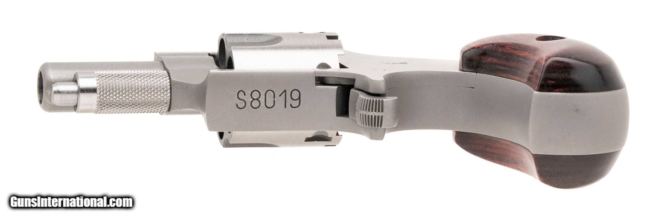 Description: "SN: S8019. Modern production, .22 Short with a 1.125"" barrel. stainless pocket revolver with wood grips. Overall condition is very good. Comes with box and lock box w/2 keys. SOLD |
