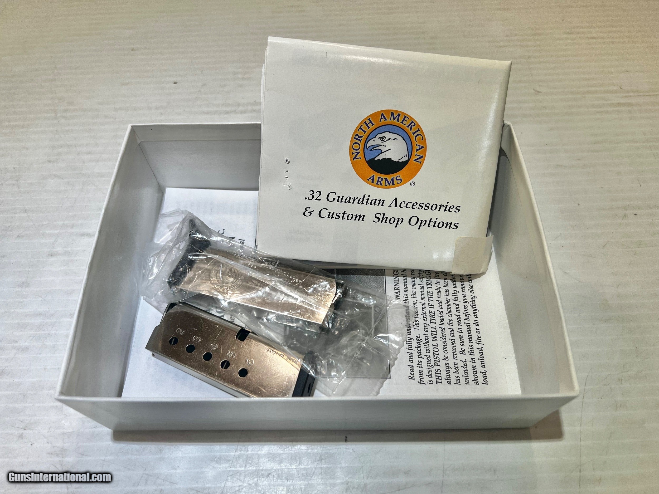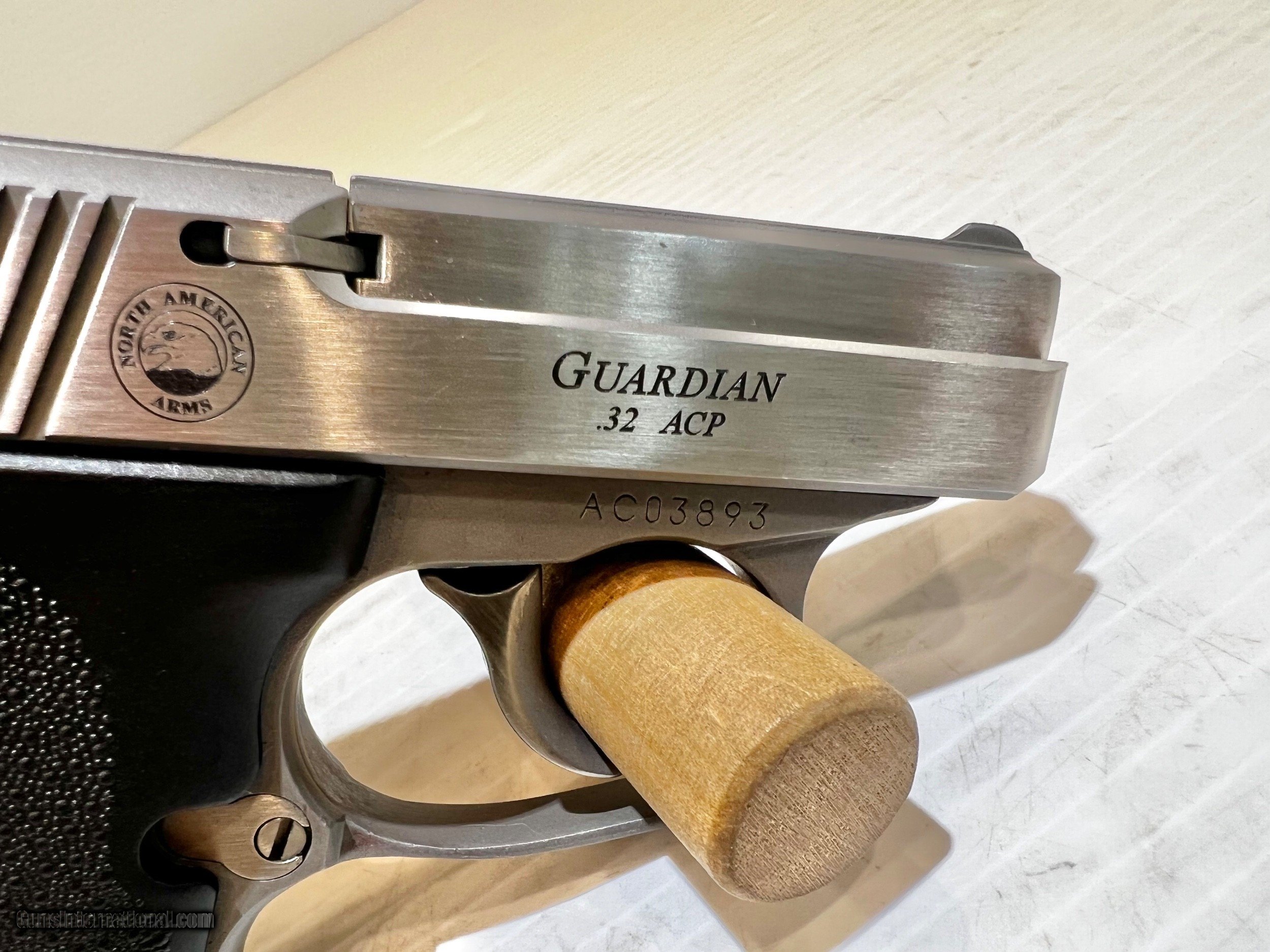 Description: Like New North American Arms Guardian .32 ACP Semi-Auto Pistol, 2.25" Barrel Black Synthetic Grip, Stainless Steel Barrel & Slide, With 2 6rd Mags, With Box. WE DO NOT SHIP INTERNATIONALLY $30 Shipping. Pictures are of the item listed. Must be shipped to an FFL holder. The item is on display at our shop but will be taken off the shelf once the startingis met. Please feel free to contact us directly. Three day inspection from date items arrives at your FFL. Payment may be personal or cashiers check, money order or credit card "3% surcharge for credit card". QUESTIONS? CALL/TEXT STEVE AT 580.327.7372 SOLD Handgun Caliber: .32 ACP (7.65x17mm Browning SR) Serial Number: AC03893 Barrel Length: 2.25 |