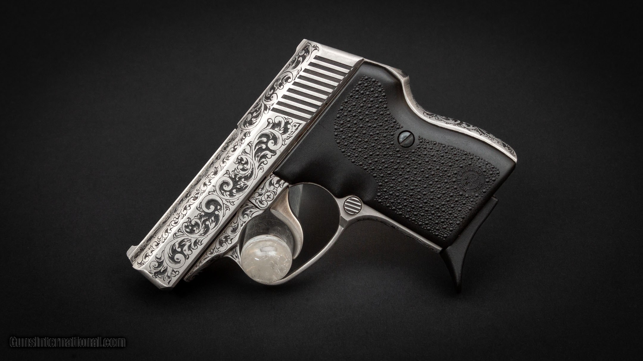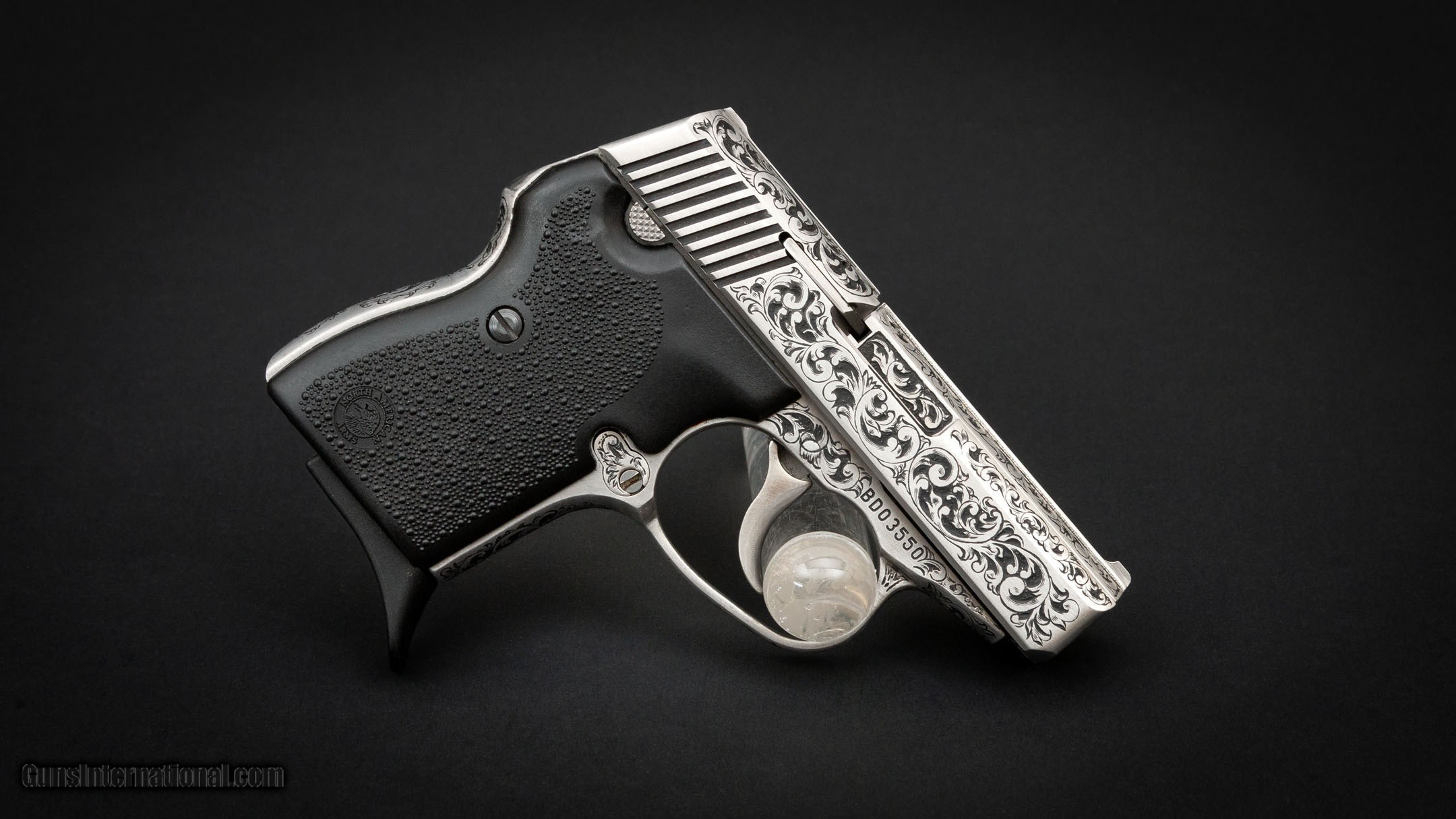 Description: Added to our pre-owned collection is this North American Arms Guardian in .380 ACP. The semi-auto concealed carry pistol in engraved by Ralph W. Ingle. and measures only 4.81″ in length. Includes two magazines and hardshell case. Contact us for more information and additional photographs. SOLD Handgun Caliber: .380 ACP (9x17mm Browning Short) Manufacturer: North American Arms Model: Guardian Serial Number: BD03550 Barrel Length: 2-1/2 Action: Semi-Automatic Weight: 20.4 oz. Extras: Two magazines, hardshell case. Item Location: NY Finger Lakes Region |