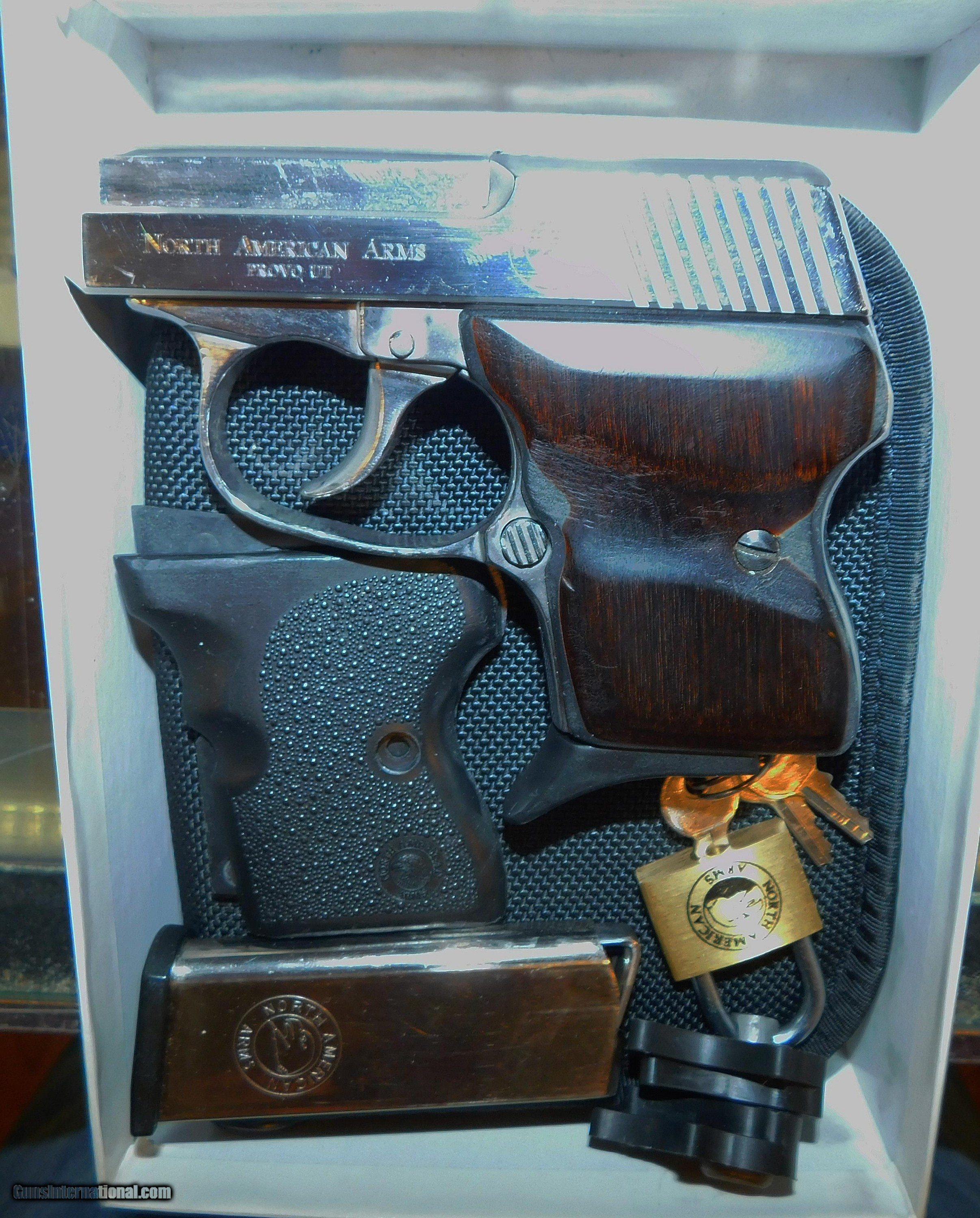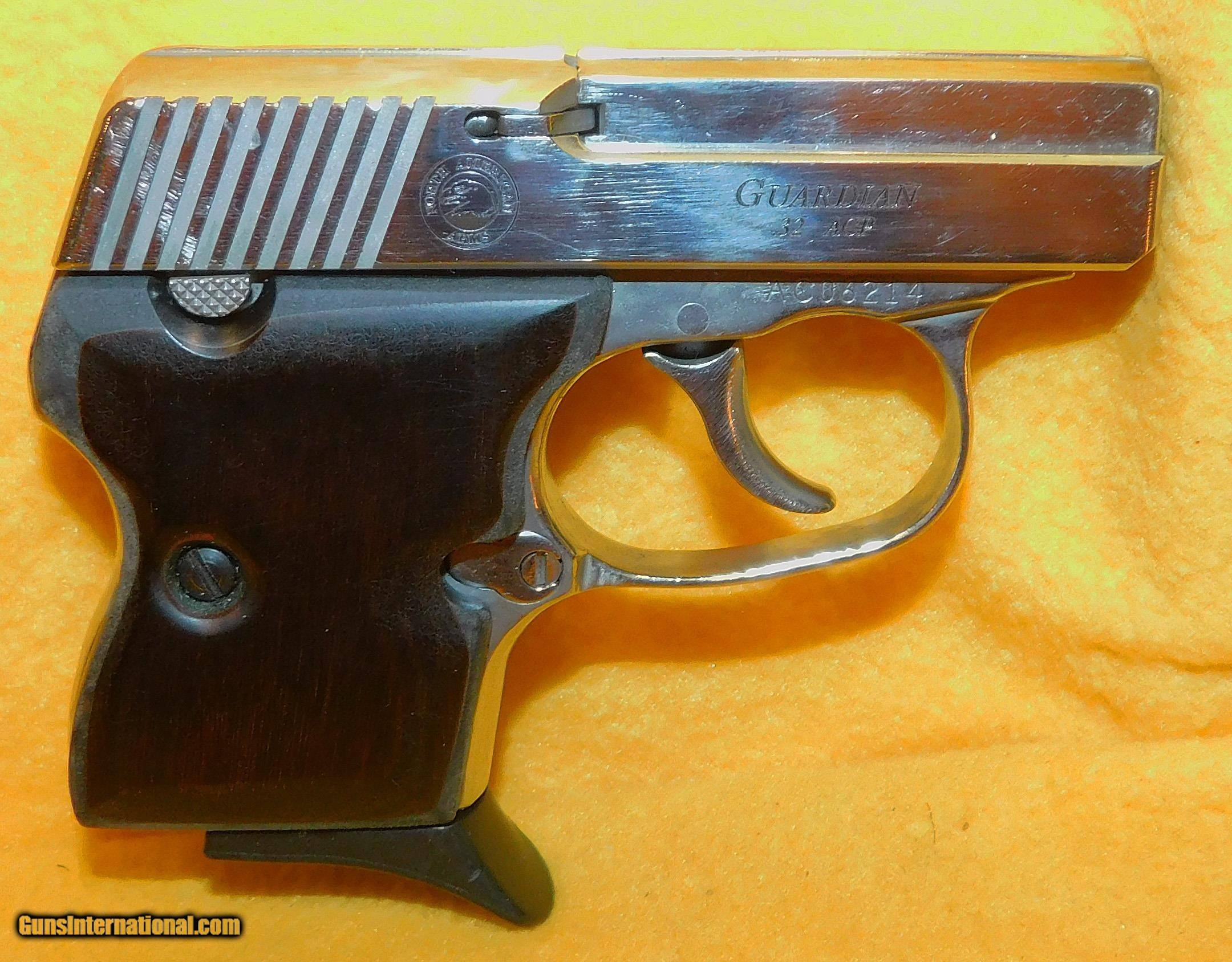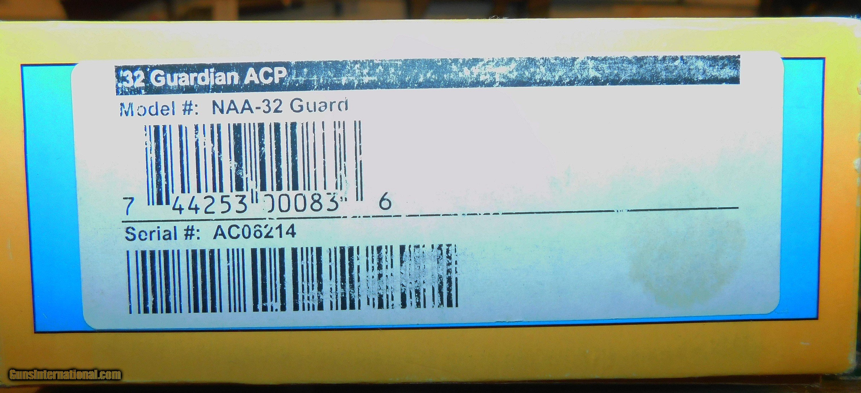 Description: NAA GUARDIAN IN .32 ACP CAL., WITH 2 .25" BARREL. COLOR STAINLESS STEEL. CONDITION 90%?. SERIAL NUMBER AC06214. NAA MODEL GUARDIAN IN .32 ACP CALIBER, MIRROR BORE, WOOD GRIPS EXCELLENT, WITH FACTORY GRIPS EXCELLENT ALSO,, FRONT AND REAR SIGHT HAVE BEEN REMOVED, COMES WITH TWO FACTORY MAGAZINES, ORIGINAL BOX, 90%? OVERALL CONDITION, OUR STOCK # D6479 SOLD |