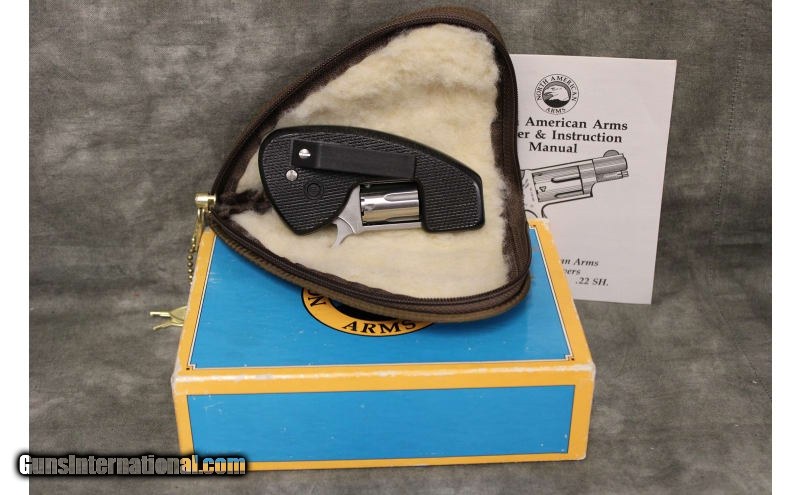 Description: North American Arms Mini Revolver in 22 LR that folds into a pocket holster with a clip for your pocket or belt. Comes with the original box, owners manual and a soft carry case. Firearm is in very good to excellent condition. .22 Long Rifle SOLD Metal Condition: Very Good Bore Condition: Bright Barrels: 1 1/8 Item Location: Auburn Hills, MI |