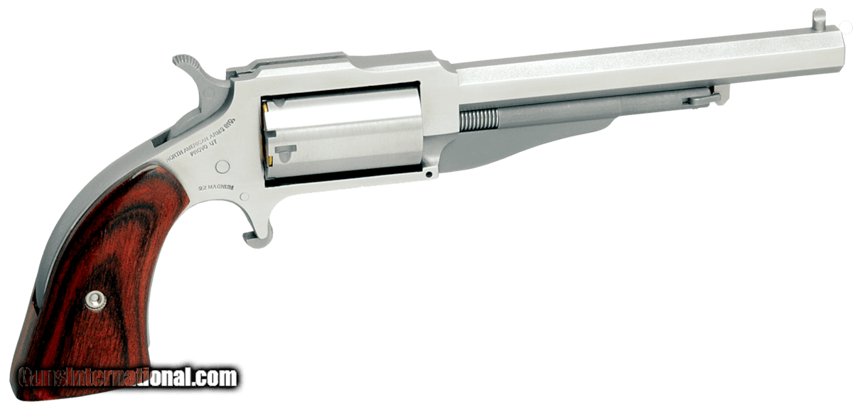 Description: Guns Listing ID: 52466 The North American Arms Earl is a five-shot single-action mini revolver named after the gunsmith who designed it. It features a faux loading lever lending a resemblance to an 1860s styled percussion revolver. It is chambered in 22 LR22 Mag with a 3 or 4 heavy octagon barrel. Other features of the Earl include a top strap channel stainless finish wood grips and bead front sights. Details Named after the NAA gunsmith who originally developed the product with its faux loading lever (which secures the cylinder pin) The Earl resembles a 150 year old percussion revolver then common in the Old West. With iss heavy octagonal barrel top strap channel and bead front sight . The EARL could become your favorite plinker ( pray for the snake rodent or tin can that dares cross your path SOLD Manufacturer: NORTH AMERICAN ARMS Model: 1860 Caliber Info: .22 LR Condition: new Barrels: 4 BARREL |