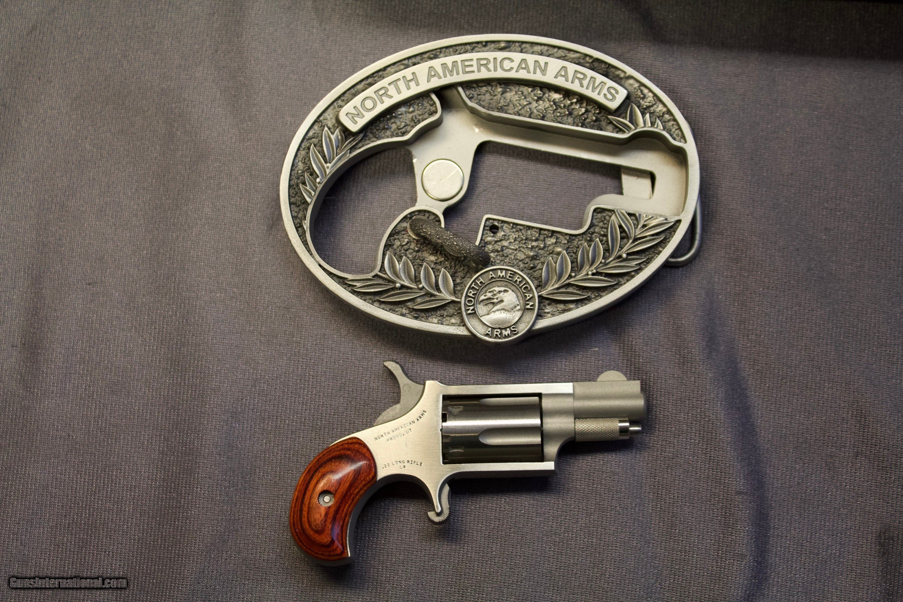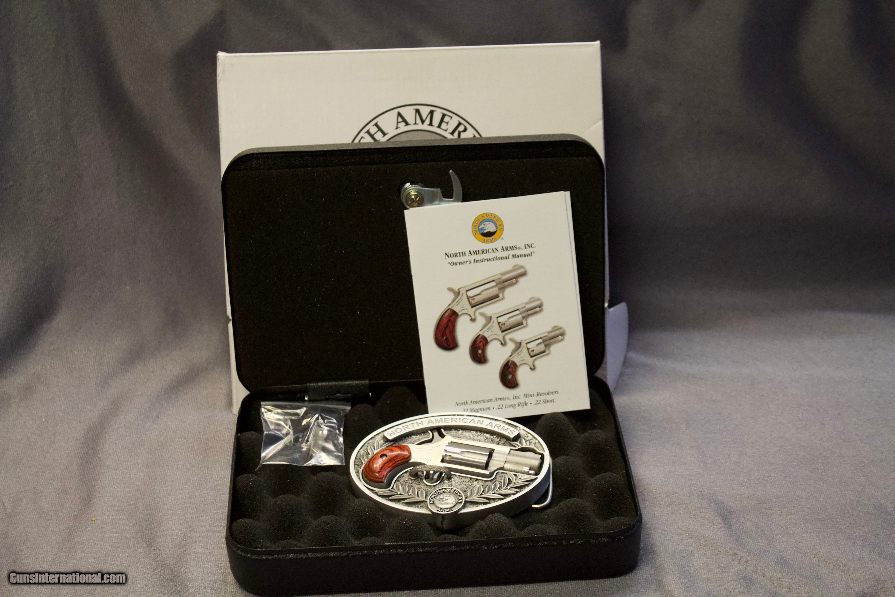 Description: Listed is a NAA belt buckle .22lr Revolver Item is in excellent condition New, un-fired Comes with original boxes and paperwork SOLD Handgun Caliber: .22 Long Rifle Manufacturer: North American Arms Model: 22LR-BBO Barrel Length: 1 1/8 Condition: New Metal Condition: Excellent Action: Single |