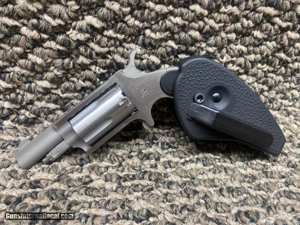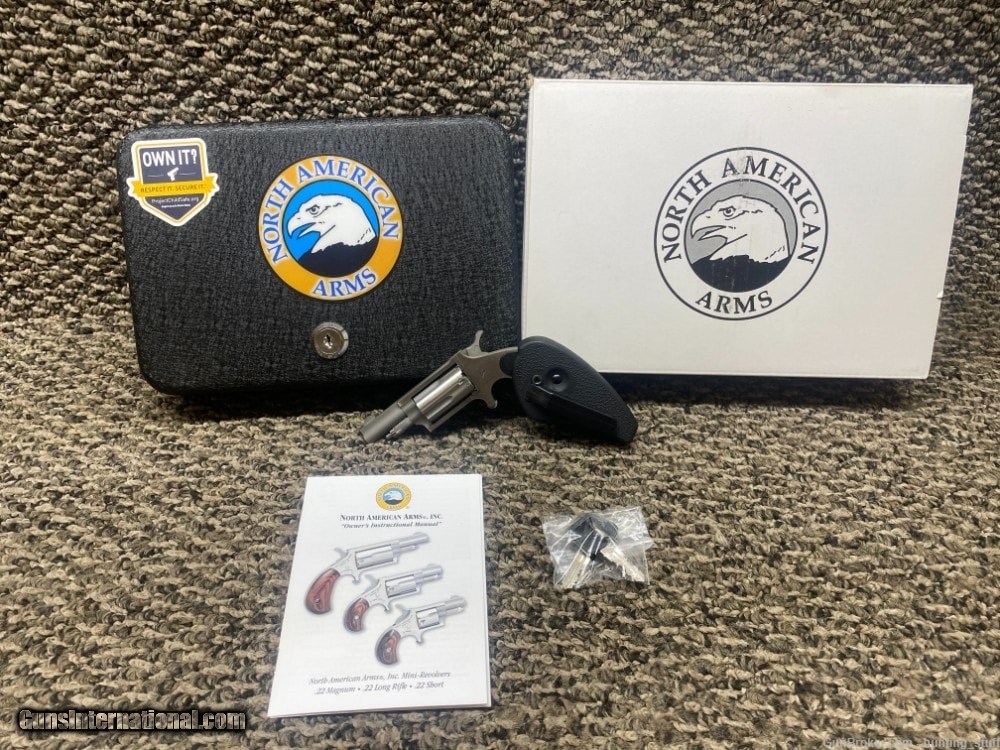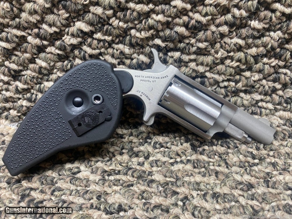 Description: Guns Listing ID: 1129018 This listing is for a USED North American Arms NAA-22M-HG 22 WMR SS Finish Holster Grip 1.6\" BBL 5 Rnd. This is a used gun, it has been fired and will have residue present. This NAA Mini Revolver is chambered in 22 Magnum, and it will hold 5 rounds in the cylinder. This revolver comes with a 1.6 inch barrel. It comes equipped with a fixed front sight, and a fixed rear sight. There are a few scratches on the frame around the grip. The action appears to be in good condition, the finish appears to be in good condition, and the bore appears to be in good condition. This revolver comes with an owner’s manual, a hard case, two hard case keys, and the cardboard box. This would be a great addition to your collection. ** DISCLAIMER** THIS FIREARM HAS NOT BEEN TEST FIRED*** SOLD Manufacturer: NORTH AMERICAN ARMS Model: 22M HOLSTER GRIP Caliber Info: .22 WMR Condition: Used - Non-Certified Barrels: 2 BARREL |