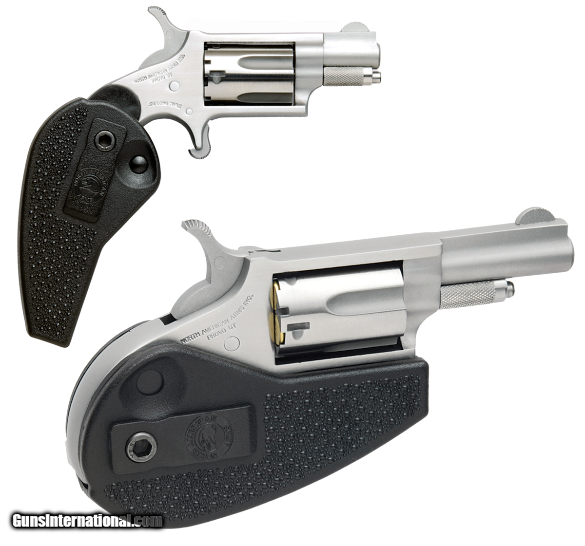 Description: Guns Listing ID: 52476 The North American Arms 22 Magnum is a five-shot mini revolver chambered in 22 Mag. It features a stainless finish and fixed half-moon sights while the half-way notch cylinder helps guard against accidental discharge. Dependable compact and lightweight the 22 Magnum makes a suitable revolver for self-defense. Details The .22 Magnum Mini-Revolver can be ordered with a Holster Grip. The Holster Grip is made of High Impact plastic and has a belt clip on the back side. The grip locks open like a lock blade knife and can be closed by pressing a button. SOLD Manufacturer: NORTH AMERICAN ARMS Model: 22M HOLSTER GRIP Caliber Info: .22 LR/.22 WMR Condition: new Barrels: 2 BARREL |