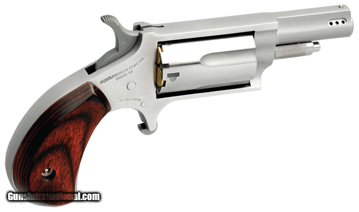 Description: Guns Listing ID: 1107 The North American Arms 22 Magnum is a five-shot mini revolver chambered in 22 Mag. It features a stainless finish and fixed half-moon sights while the half-way notch cylinder helps guard against accidental discharge. Dependable compact and lightweight the 22 Magnum makes a suitable revolver for self-defense. Details As with every NAA Mini-Revolver the hammer need not rest on an empty chamber. Using the original half-way notch cylinder the hammer may rest safely and securely without chance of accidental discharge. Our .22 Magnum can be used with all popular .22 Magnum ammunition including .22 Magnum shot shells (called Snake Shot by some manufacturers). North American Arms offers a .22 Conversion Cylinder for our .22 Magnum Mini-Revolver. The Conversion Cylinder is a special longer .22 Long Rifle cylinder that will fit in your .22 Magnum Mini-Revolver. SOLD Manufacturer: NORTH AMERICAN ARMS Model: 22M PORTED Caliber Info: .22 WMR Condition: new Barrels: 1.63 BARREL |