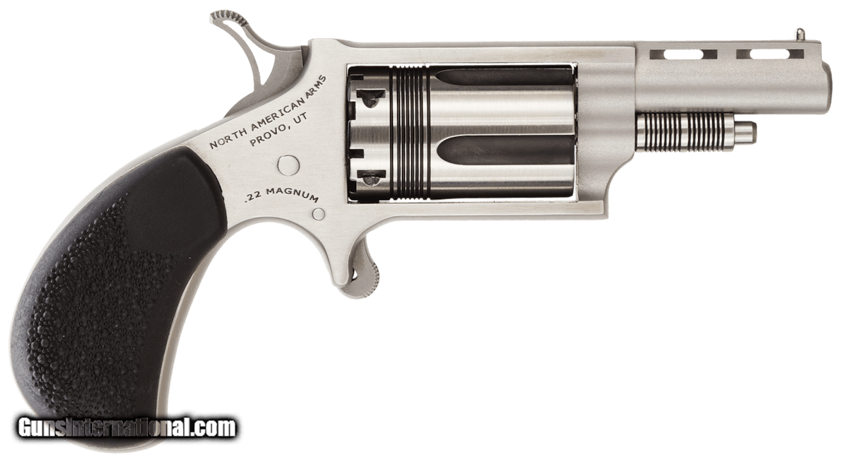 Description: Guns Listing ID: 1041 The North American Arms 22 Magnum is a five-shot mini revolver chambered in 22 Mag. It features a stainless finish and fixed half-moon sights while the half-way notch cylinder helps guard against accidental discharge. Dependable compact and lightweight the 22 Magnum makes a suitable revolver for self-defense. Details As with every NAA Mini-Revolver the hammer need not rest on an empty chamber. Using the original half-way notch cylinder the hammer may rest safely and securely without chance of accidental discharge. Our .22 Magnum can be used with all popular .22 Magnum ammunition including .22 Magnum shot shells (called Snake Shot by some manufacturers). North American Arms offers a .22 Conversion Cylinder for our .22 Magnum Mini-Revolver. The Conversion Cylinder is a special longer .22 Long Rifle cylinder that will fit in your .22 Magnum Mini-Revolver. SOLD Manufacturer: NORTH AMERICAN ARMS Model: 22M WASP Caliber Info: .22 WMR Condition: new Barrels: 2 BARREL |