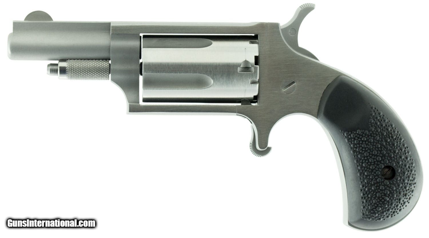 Description: Guns Listing ID: 1348 The North American Arms .22 Magnum is a five-shot mini revolver chambered in .22 Mag. It features a stainless finish and fixed half-moon sights while the half-way notch cylinder helps guard against accidental discharge. Dependable compact and lightweight the 22 Magnum makes a suitable revolver for self-defense. Details NAA NAA22MGRC 22 Magnum Rubber Grip Single .22 Winchester Magnum Rimfire (WMR) 1.625 5 Black Rubber Stainless SOLD Manufacturer: NORTH AMERICAN ARMS Model: 22M Caliber Info: .22 WMR Condition: new Barrels: 2" barrel |