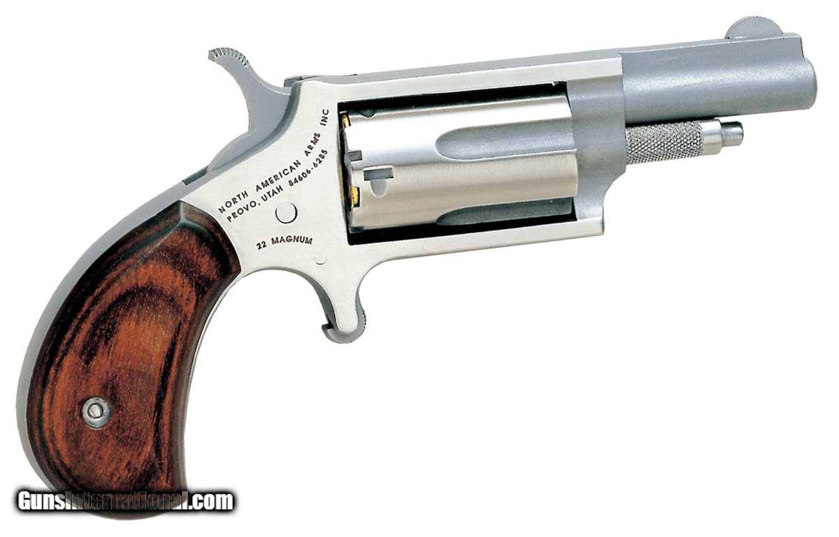 Description: Guns Listing ID: 52473 The North American Arms 22 Magnum is a five-shot mini revolver chambered in 22 Mag. It features a stainless finish and fixed half-moon sights while the half-way notch cylinder helps guard against accidental discharge. Dependable compact and lightweight the 22 Magnum makes a suitable revolver for self-defense. Details Our .22 Magnum Mini-Revolver is the ultimate in up front personal close-in protection. Its small easy to conceal and safe to carry. Whether you carry it for hiking and camping or for self-defense this gun delivers when you need it most. SOLD Manufacturer: NORTH AMERICAN ARMS Model: 22M Caliber Info: .22 WMR Condition: new Barrels: 2 BARREL |