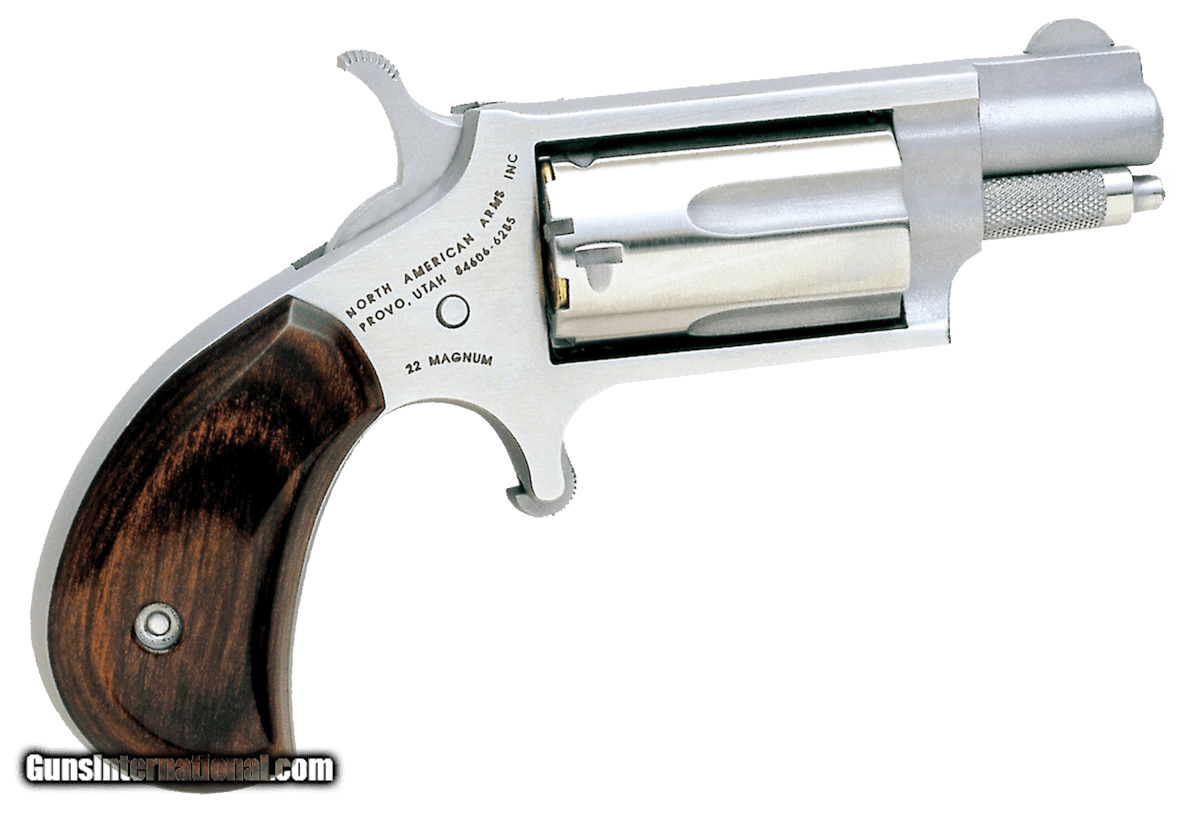 Description: Guns Listing ID: 52481 The North American Arms 22 Magnum is a five-shot mini revolver chambered in 22 Mag. It features a stainless finish and fixed half-moon sights while the half-way notch cylinder helps guard against accidental discharge. Dependable compact and lightweight the 22 Magnum makes a suitable revolver for self-defense. Details Our .22 Magnum Mini-Revolver is the ultimate in up front personal close-in protection. Its small easy to conceal and safe to carry. Whether you carry it for hiking and camping or for self-defense this gun delivers when you need it most. SOLD Manufacturer: NORTH AMERICAN ARMS Model: 22M Caliber Info: .22 WMR Condition: new Barrels: 1.13 BARREL |