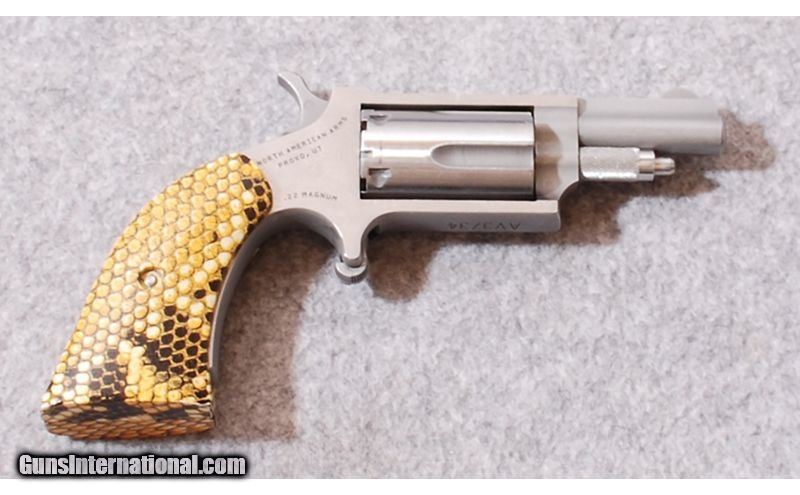 Description: NAA makes very high quality yet small, concealable, revolvers that are perfect for deep concealment, or to keep handy to deal with pesky varmints. .22 MAG SOLD Chambers: .22 Magnum Metal Condition: Slight handling marks Wood Condition: Slight handling marks Bore Condition: "Shiny, no rust or pitting Barrels: 1 5/8" Barrel Triggers: Single-Action Spur Weight: 20 Oz. Sights: Fixed Item Location: Rapid City, SD |