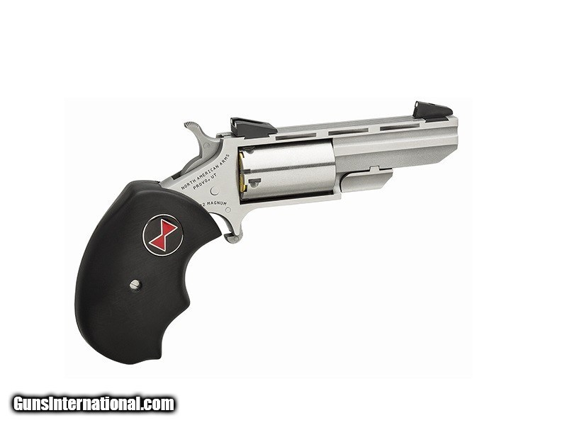 Description: NEW IN STOCK North American Black Widow Revolver BWM, 22 Magnum (WMR), 2", Black Rubber Grip, Stainless Finish, 5 Rd, Fixed Sights