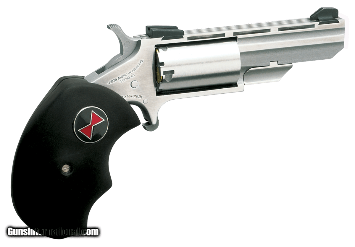 Description: Guns Listing ID: 52492 An evolution of the companys highly popular 22 Mag frame series the North American Arms Black Window is a five-shot single-action revolver chambered in 22 WMR. With stability and accuracy at its core this revolver features a frame crafted of stainless steel a 2 heavy vent barrel bull cylinder and oversized textured rubber grips. The Black Widow is available with either low profile fixed sights or elevation adjustable sights. Details NAA BWL Magnum Black Widow Single 22 Long Rifle 2 5 Black Rubber Stainless SOLD Manufacturer: NORTH AMERICAN ARMS Model: BLACK WIDOW Caliber Info: .22 LR Condition: new Barrels: 2 BARREL |