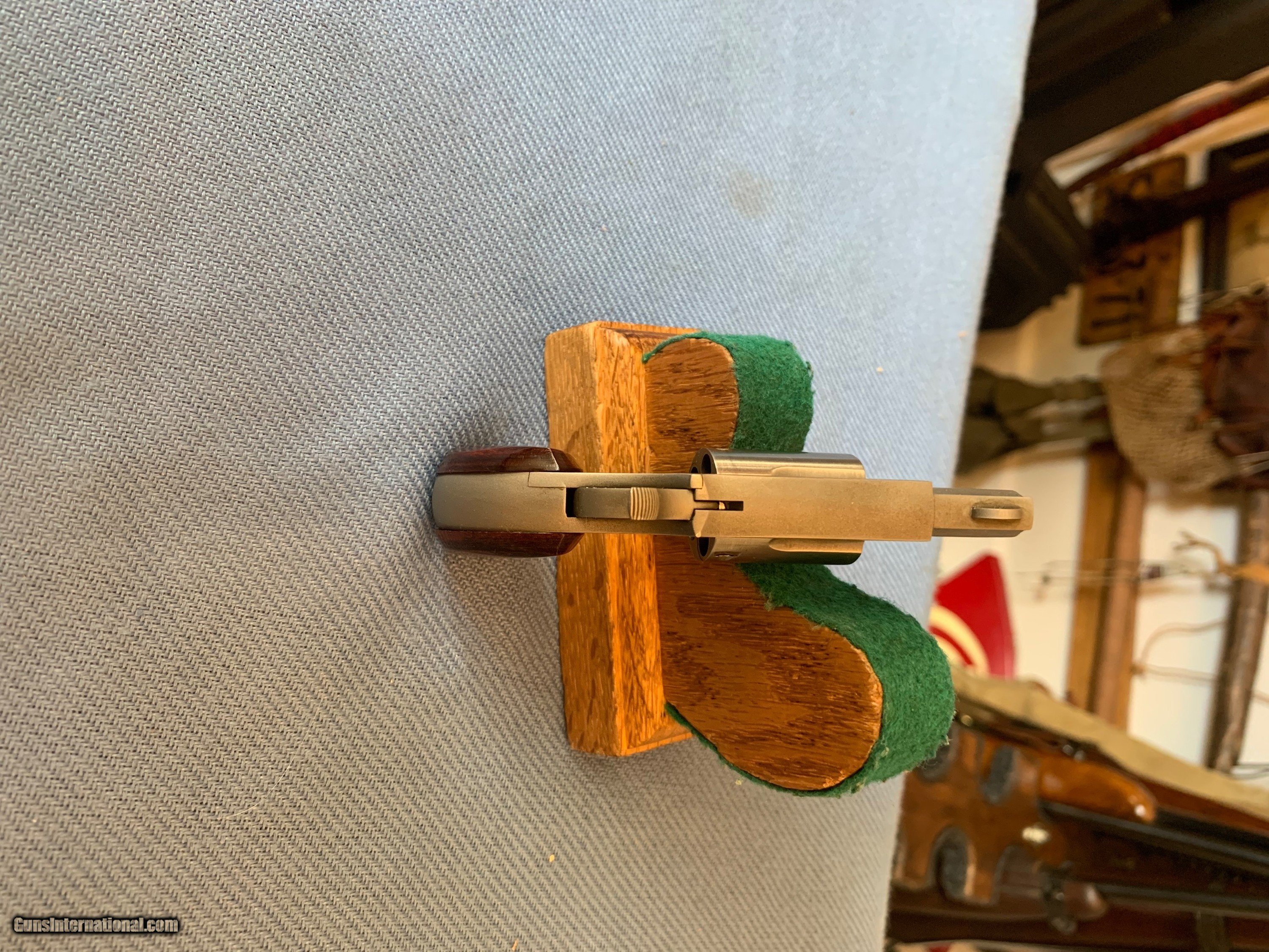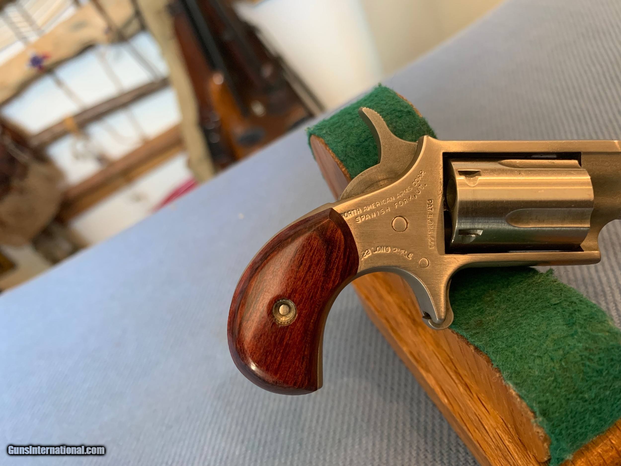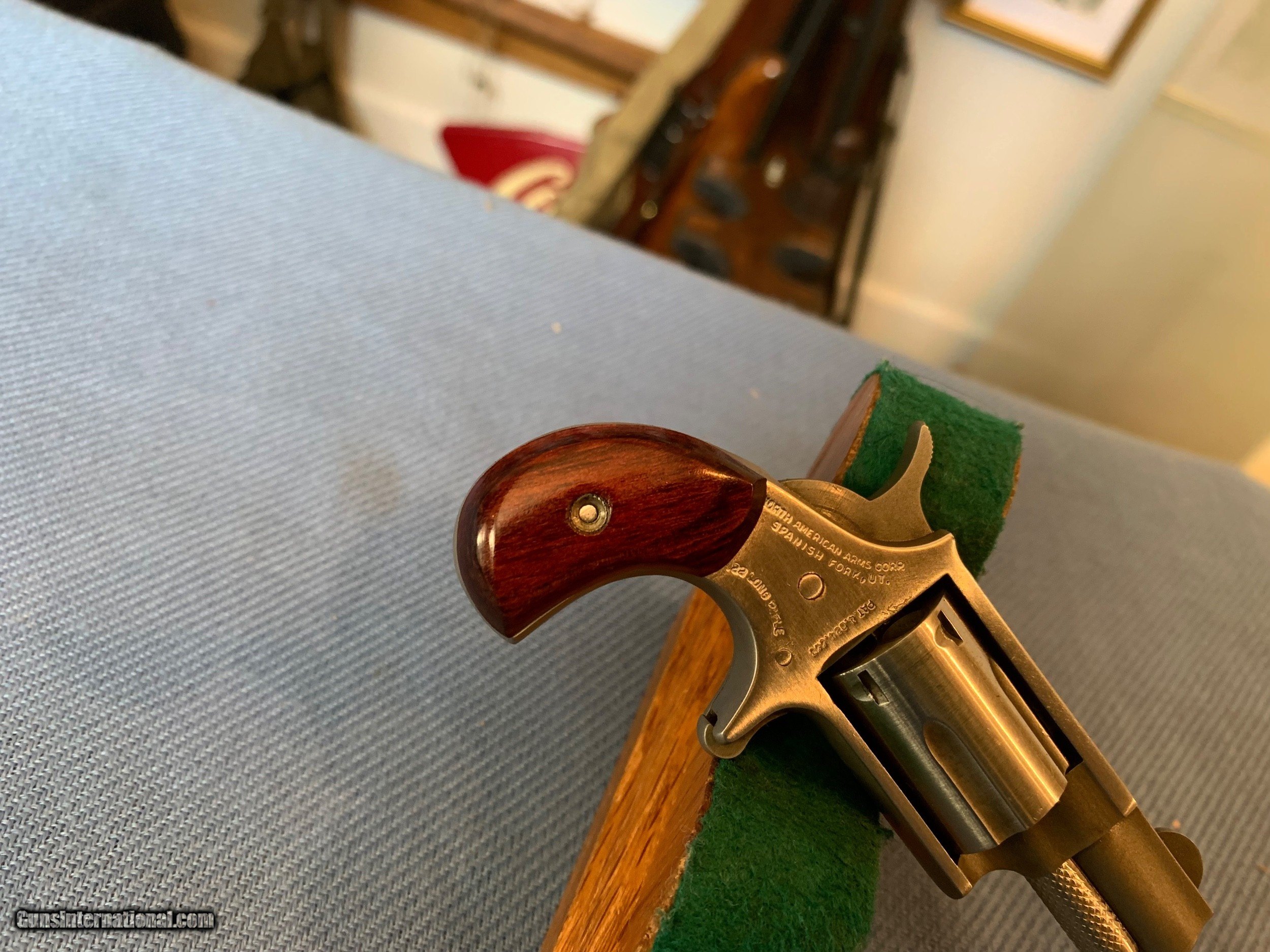Description: Here's a Early North American made in Spanish Forge , Utah . Rare Smallest 22 Long Rifle they made in. 1 " Barrel! Rare gun made for a Genuine Quality Turquoise in layer buckle ! Ease release to get revolver out Quickly! Serial number G48200 . Excellent example of a rare buckle gun North American in a 1" barrel in 22 long rifle! Gun is in excellent plus original condition! Bore and mechanics are in Excellent Plus Condition! Gun is in excellent working order. Buckle holster is in excellent plus condition! Super nice set ! Comes with a original North American Pistol case with logo ! Please review my photos and please email me with any questions? 3 day inspection as allways! Thank you for looking, Little Jo SOLD Handgun Caliber: .22 Long Rifle Manufacturer: North American-Spanish Forge , Utah Model: Buckle gun Serial Number: G48200 Barrel Length: 1” Condition: Mint |