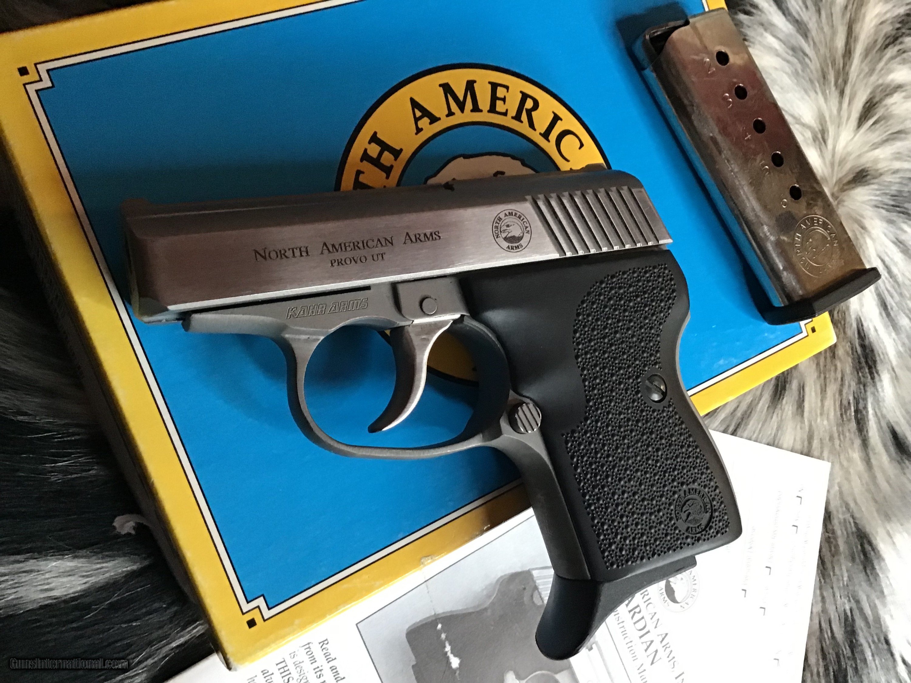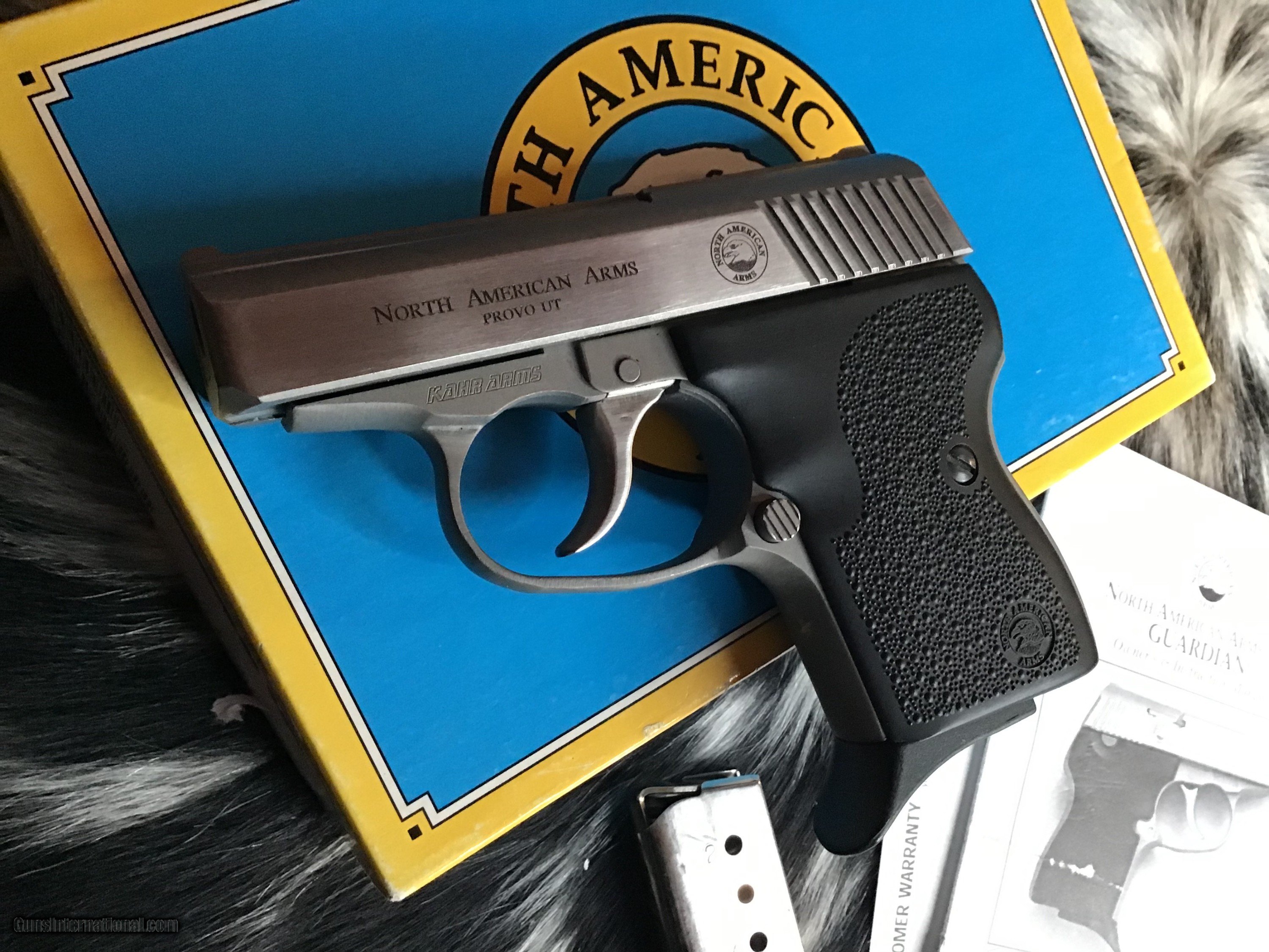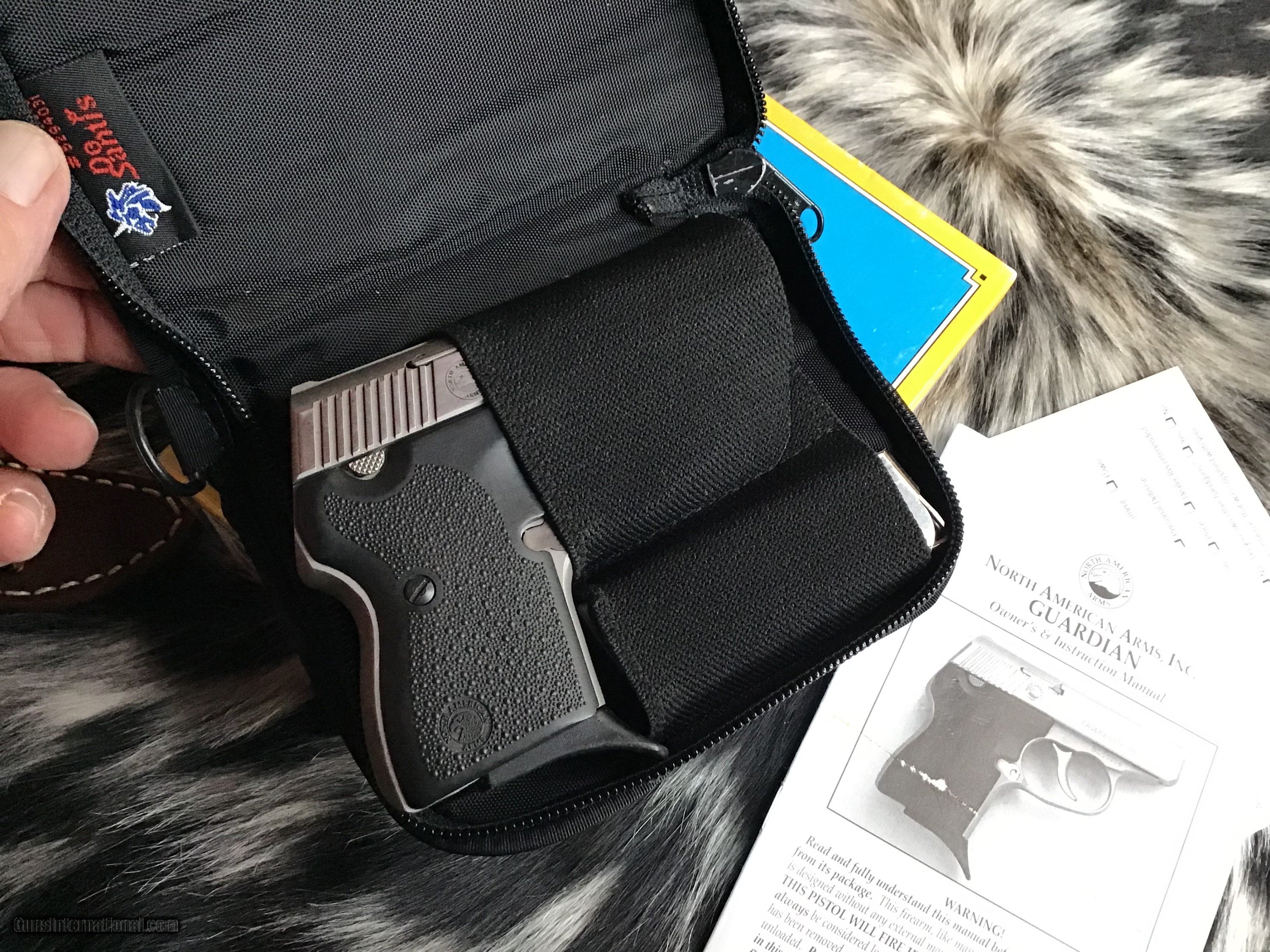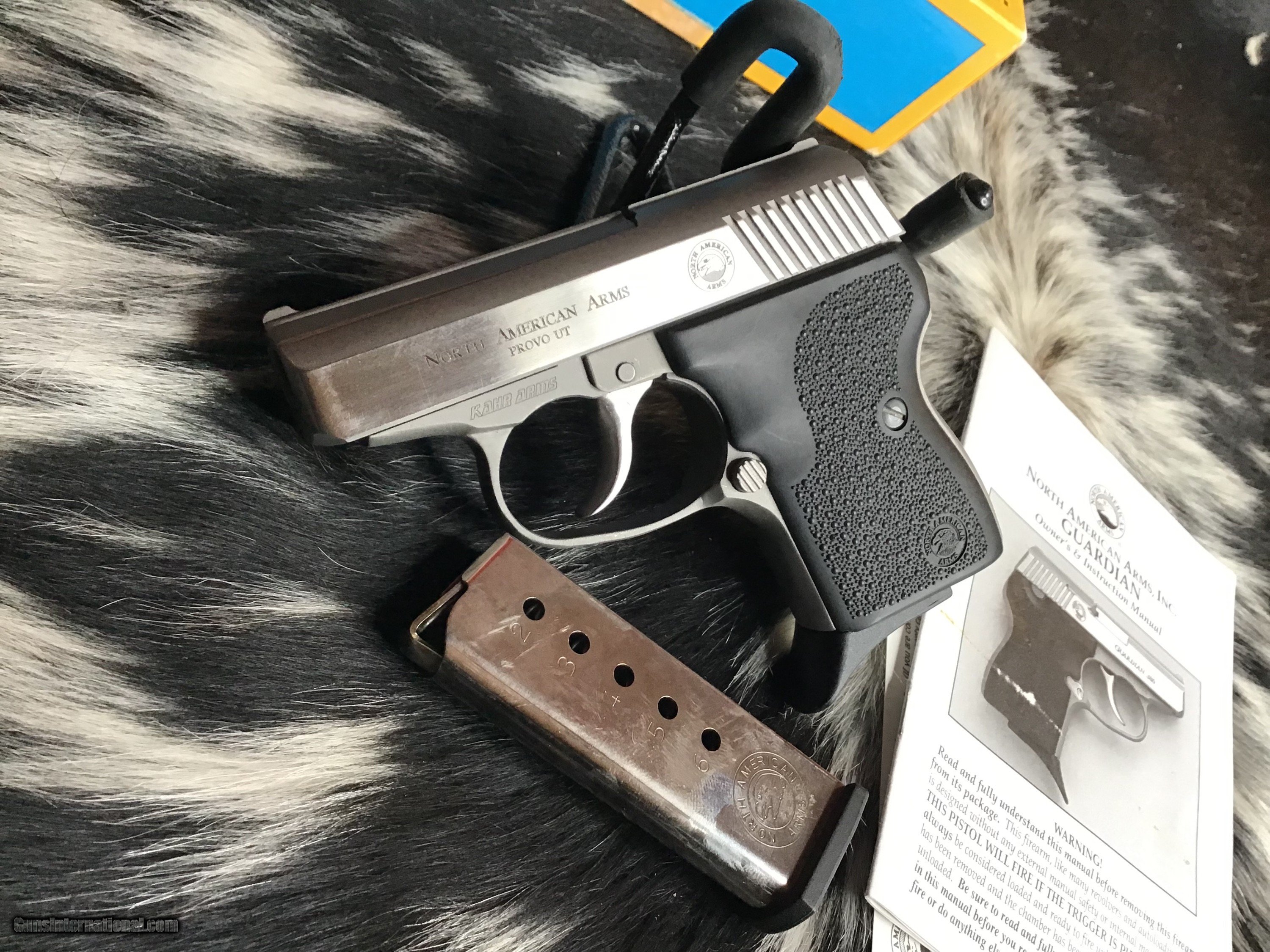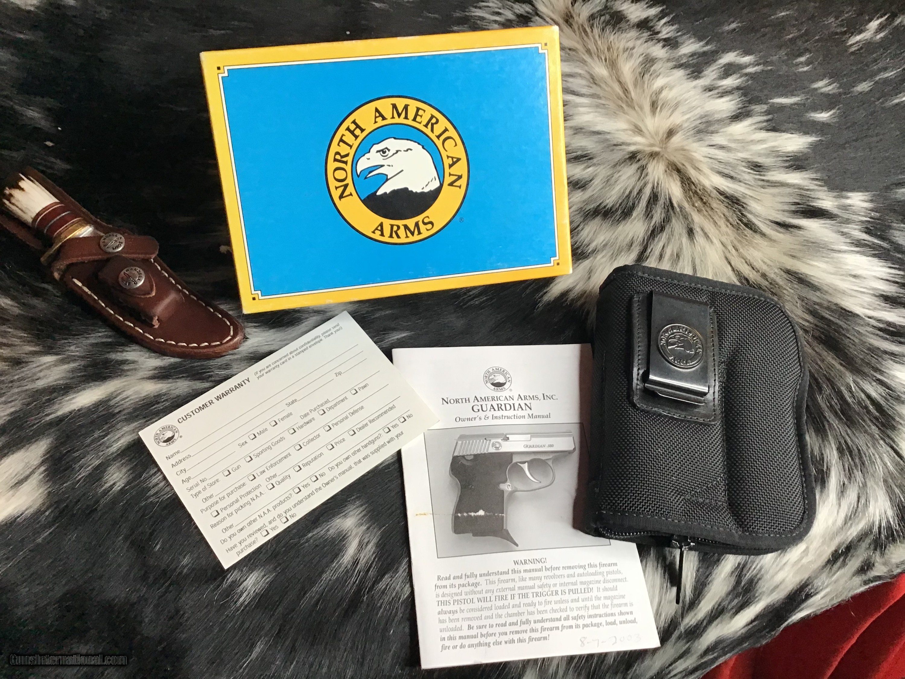 Description: LNIB North American Arms Guardian chambered in .32 NAA. Comes in numbered to the gun box W/Soft belt carry case and extra magazine and owners papers. Pistol appears to have been fired very little.. Perfect no snag pocket carry auto. Stainless steel construction for low maintenance. Add 3% if paying with credit card. Free shipping for all U.S. Veterans. God Bless America from a proud American, and a Viet Nam Vet , thankful for our freedoms.. paid for by the Blood ,Sweat and Tears of our brave men and women in uniform. Ten Below Firearms is a Veteran owned and operated business. We specialize in out of production models of high quality firearms. We love to ship! We ship to all states where legal, just give us a call! Handguns normally ship for $35 and Long guns for $50 and up for extra length long guns. That's 2-3 day USPS Priority shipping, Delivery conformation and with tracking number. Optional Postal insurance is additional $1.85 per $100 and highly recommended. We are OPEN BY APPOINTMENT ONLY FOR IN PERSON VISITS, We trade, sometimes. All payments sent via mail must be received within five days of date of purchase or item will be relisted for sale. **PROPS MAY BE USED FOR PHOTOS, PROPS ARE NOT INCLUDED WITH THE SALE OF THIS FIREARM** Thank you! Layaway:If needed we offer a 60 day layaway program. Terms, 1/3 of purchase price down within five days, 1/3 due in 30 days, and the final third to include card fees and shipping due at 60 days. FINAL with no refunds, no inspections, no returns. Layaway is not available on negotiated prices. SOLD Handgun Caliber: .32 NAA Manufacturer: North American Arms Model: Guardian Serial Number: DA00411 Barrel Length: 2 inch Condition: As New Metal Condition: Excellent Bore Condition: Excellent Action: Semi Auto Triggers: DA Finish: Stainless Sights: Fixed notch Extras: Soft case extra mag Case: Box Item Location: Mn |