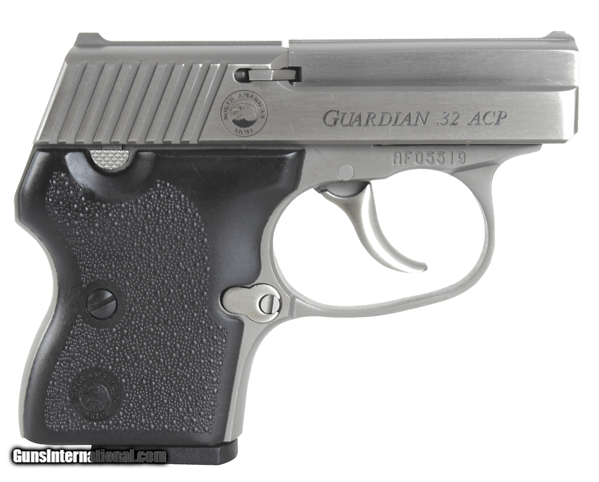Description: Guns Listing ID: 52489 The North American Arms Guardian is a double-action only semi-automatic handgun chambered in 380 ACP or 32 ACP with a 61 capacity. This pocket pistol offers the convenience of a small size alongside high quality and steadfast stopping power. Features include fixed front blade sights and a textured hard rubber grip. Compact and lightweight yet reliable the Guardian is a popular choice for concealed carry. Details Caliber .32 ACP - Capacity 6rds - Barrel 2.49 - Sights Fixed - Action DAO - Frame Stainless Steel - Slide Stainless Steel - Grips Black Polymer - Length 4.75 - Width .93 - Height 3.53 - Weight 13.5 oz SOLD Manufacturer: NORTH AMERICAN ARMS Model: GUARDIAN Caliber Info: 32 AUTO (7.65 BROWNING) Condition: new Barrels: 2.5 BARREL |
