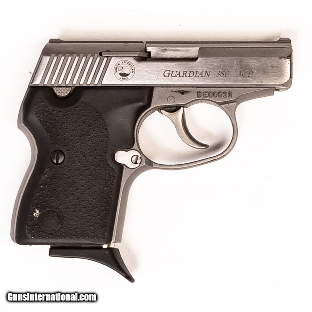 Description: Guns Listing ID: 475708 Compact and lightweight, yet reliable and effective, this North American Arms Guardian is a pocket pistol well-suited for concealed carry. It is made with a steel frame, textured grips, and user-friendly sights. The Guardian offers great stopping power in a small package that easily fits in your pocket, purse, or holster. This Guardian comes with two 6-round magazines and a pocket holster. SOLD Manufacturer: NORTH AMERICAN ARMS Model: GUARDIAN Caliber Info: .380 ACP Condition: Used - Certified Barrels: 2.5 BARREL Finish: STAINLESS |