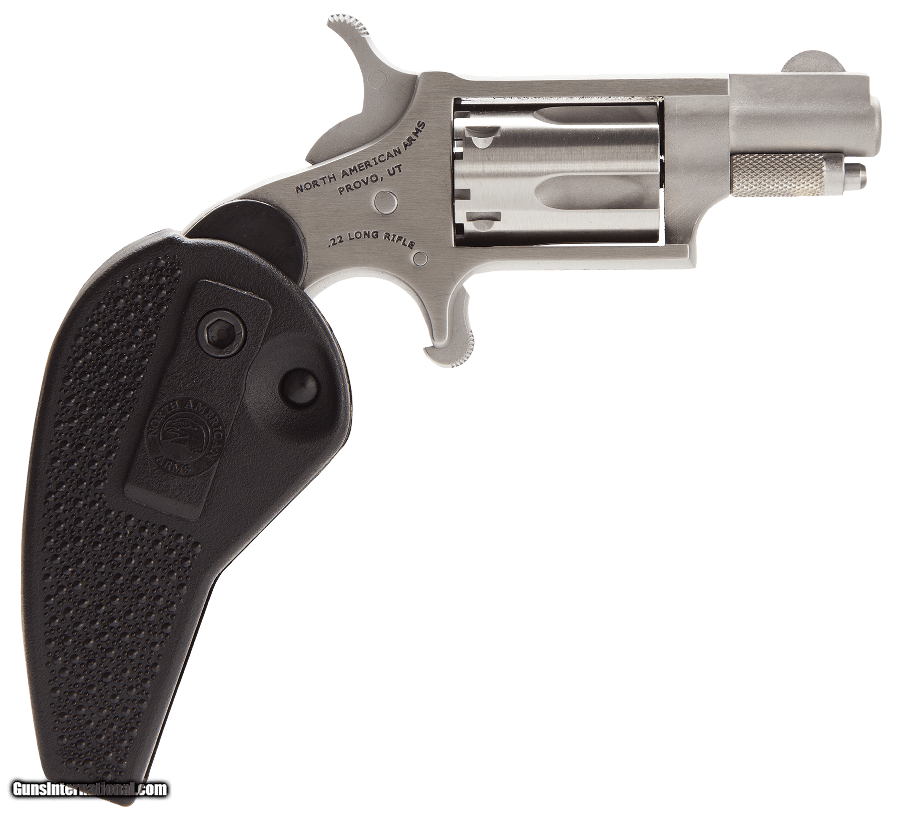 Description: Guns Listing ID: 52472 The North American Arms .22 Long Rifle is a 5-shot mini revolver chambered in 22LR. According to the company it is the most popular mini revolver ever made and standard by which other mini revolvers are judged. Features include a stainless finish and fixed half-moon sights while the half-way notch cylinder aids in avoiding accidental discharge. Versatile and compact the 22 Long Rifle makes a suitable revolver for concealed carry. The NAA .22 Long Rifle is also offered in our Holster Grip configuration which allows for convenient carrying and operation. The grip folds up to allow for easy concealment and carry and folds out into a locked grip for more convenient use and control. It is versatile for many applications and is the standard by which other Mini-Revolvers are judged. - Caliber .22 Long Rifle - Capacity 5 - Length 4\" - Height 2.38\" - Width 0.88 - Weight 4.6 oz. - Barrel Length 1.13\" - Sights Half-moon Sight - Action Single Action - Grips Holster Grip SOLD Manufacturer: NORTH AMERICAN ARMS Model: HOLSTER GRIP Caliber Info: .22 LR Condition: new Barrels: 1.13" barrel Finish: STAINLESS |